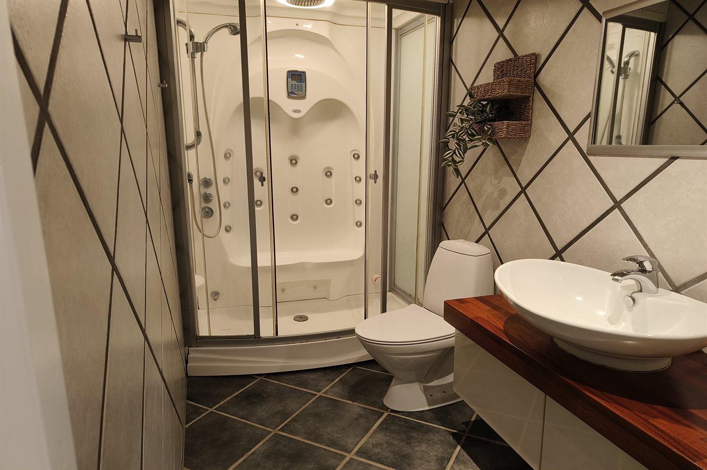 Es gibt 2 Badezimmer mit Duschnische und 2 Toiletten. Fußbodenheizung in 2 Badezimmern. Es steht eine Sauna zur Verfügung in der Sie sich so richtig entspannen können.