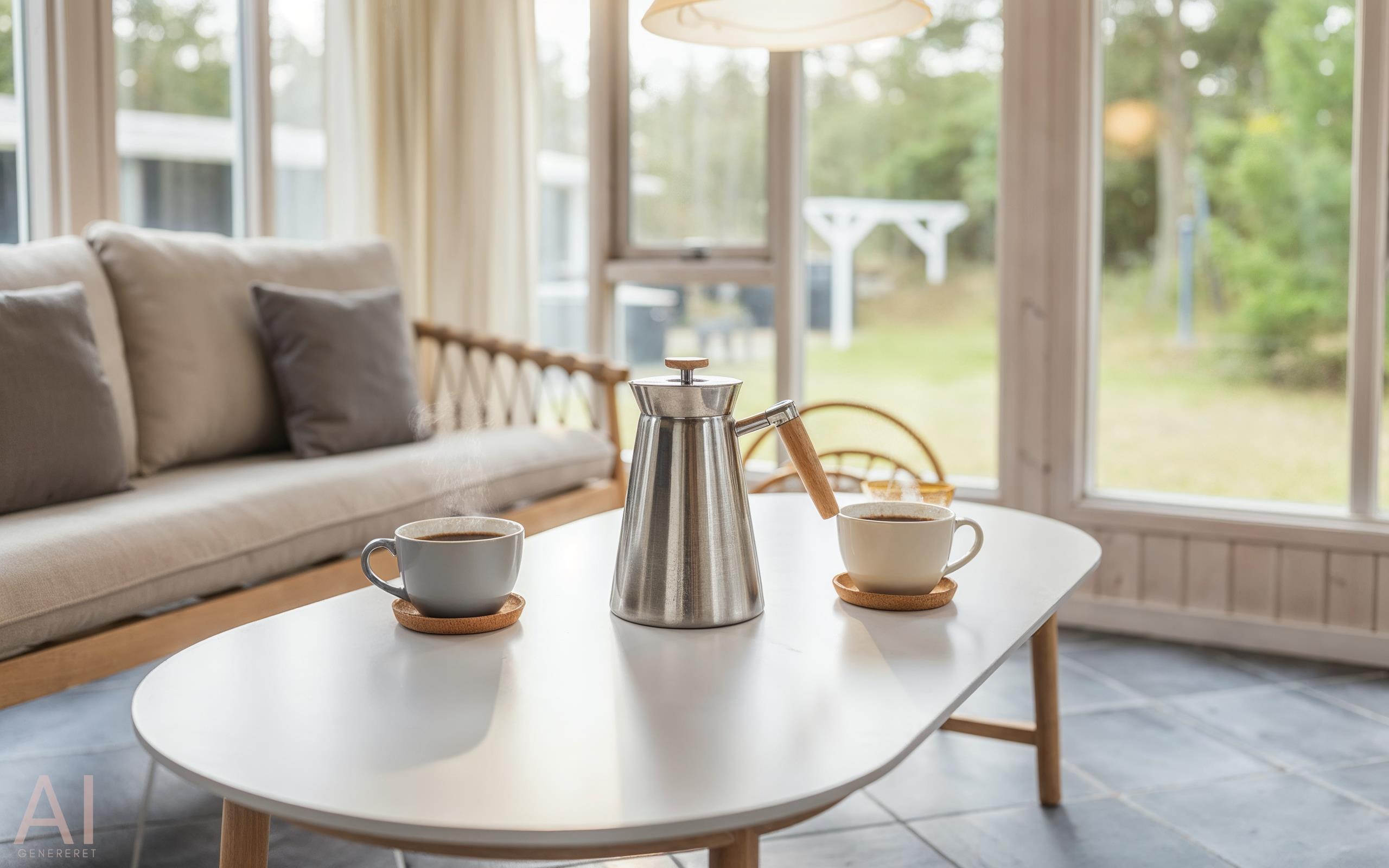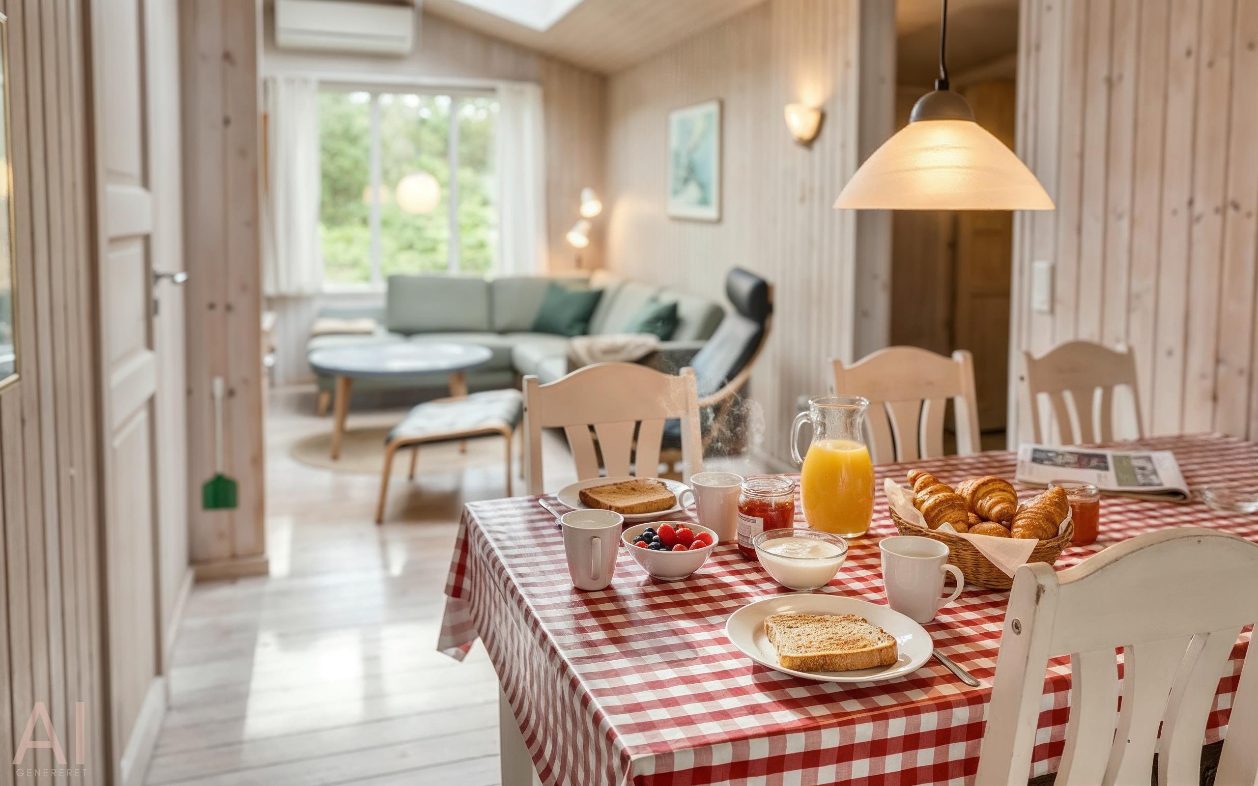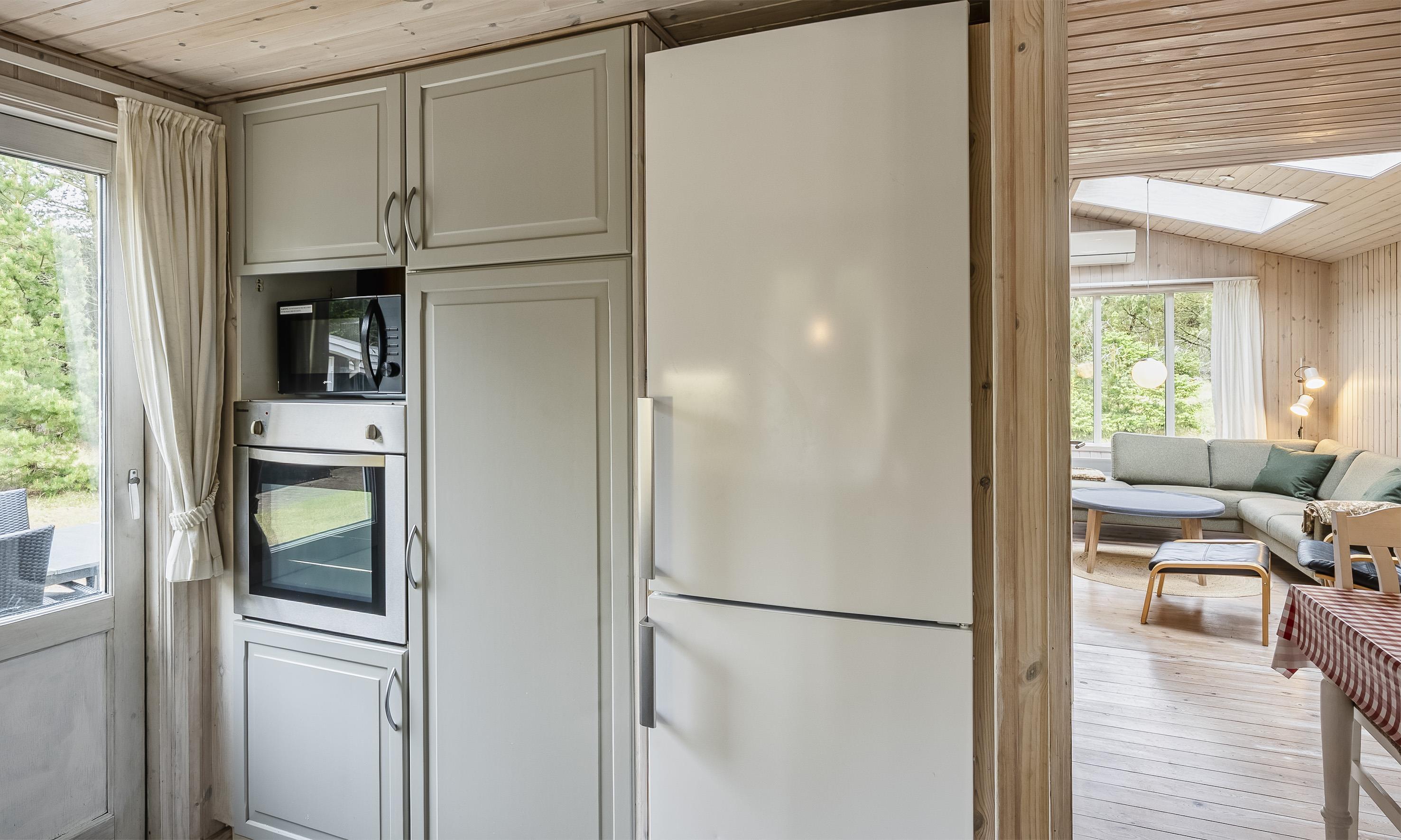 Hübsche eingerichtetes und freundliches Ferienhaus, mit Namen ”Solglimt” auf einem geschlossenen Waldgrundstück gelegen und für 6 Personen ausgestattet. Es liegt nur 1 Km vom Strand entfernt. Das Wohnzimmer ist mit gemütlichen Ledermöbeln und tollem Holzfußboden ausgestattet und durch das Oberlicht kommt zusätzlich viel Helligkeit in diesen Bereich. Das deutsche Fernsehprogramm empfangen Sie über eine Parabolantenne. Über eine Stufe nach unten kommen Sie dann in den gefliesten Wintergarten, wo auch der Kamin aufgestellt ist. Es befindet sich eine Warmepumpe im Ferienhaus. Mit dieser Warmepumpe haben sie die Möglichkeit die Stromkosten zu senken, denn die Warmepumpe ist energiesparend. Die offene Küche verfügt über einen Herd mit Cerankochfeld, einem Backofen in Arbeitshöhe, eine Geschirrspülmaschine, eine Mikrowelle und einer Kühl- und Gefrierkombination. Das Badezimmer ist mit einem WC, einem Handwaschbecken und einer Dusche ausgestattet. Es gibt drei Schlafzimmer im Ferienhaus: DB + DB + 2B. Das Ferienhaus verfügt über einen Internetanschluss (W-Lan). Die Sauna, die Waschmaschine und der Trockner befinden sich im Nebengebäude auf dem Grundstück. Das Ferienhaus verfügt über mehrere Terrassen, die eine krosse Holzterrasse ist zum Teil auch überdacht. Auf dem Grundstück befindet sich für die ”Kleinen Gäste” auch ein Spiel- und Klettergerüst mit Rutsche und Schaukel. Auch eine Sandkiste ist aufgestellt. Es sind keine Haustiere erlaubt, mit Ausnahme ein kleiner Hund mit max. Rauchen ist nicht erlaubt im Ferienhaus. Rückenhöhe von 30 cm. Der Hund darf nicht in die Möbeln oder Betten. Das Ferienhaus ist 1955 erbaut und in 2010 renoviert worden. Für dieses Ferienhaus entstehen Zusatzkosten für den Wasserverbrauch.
