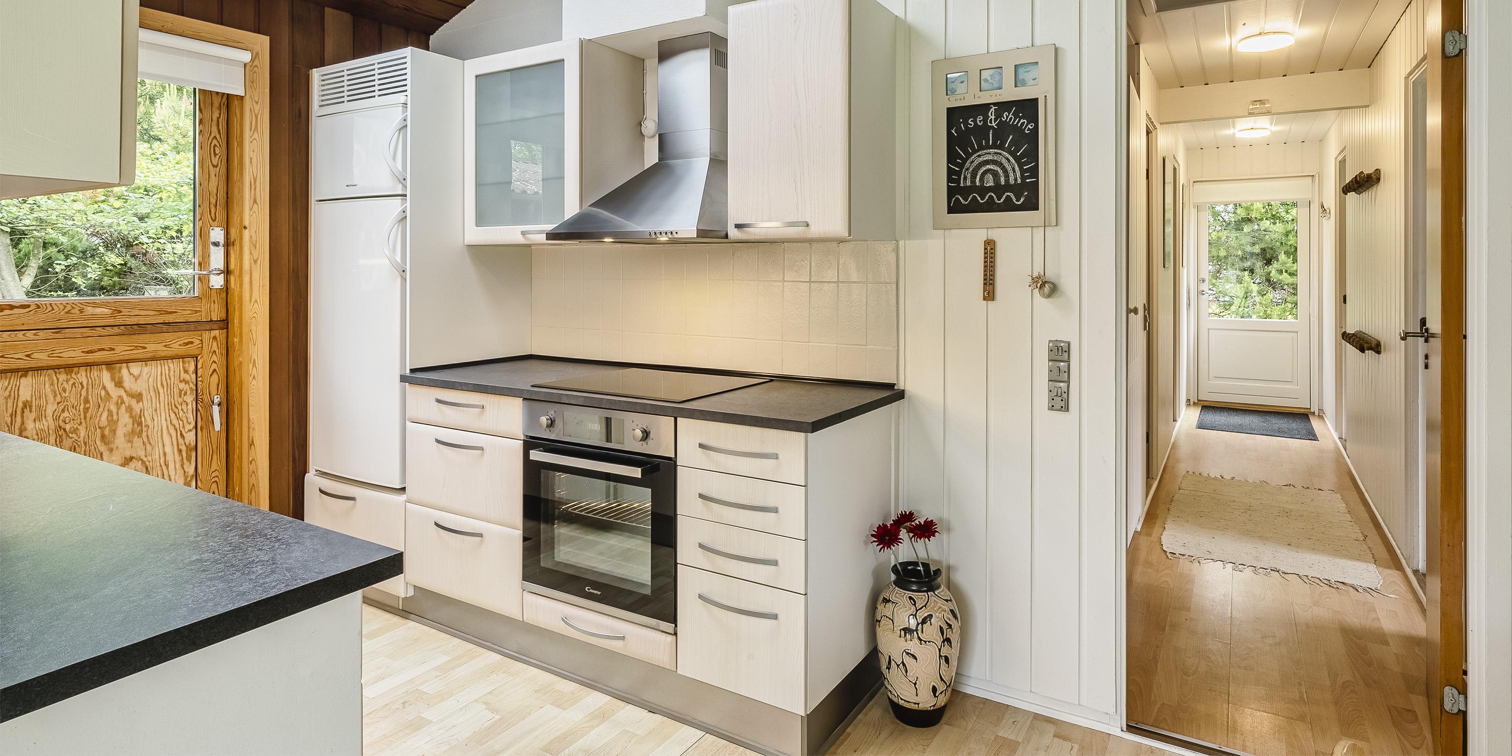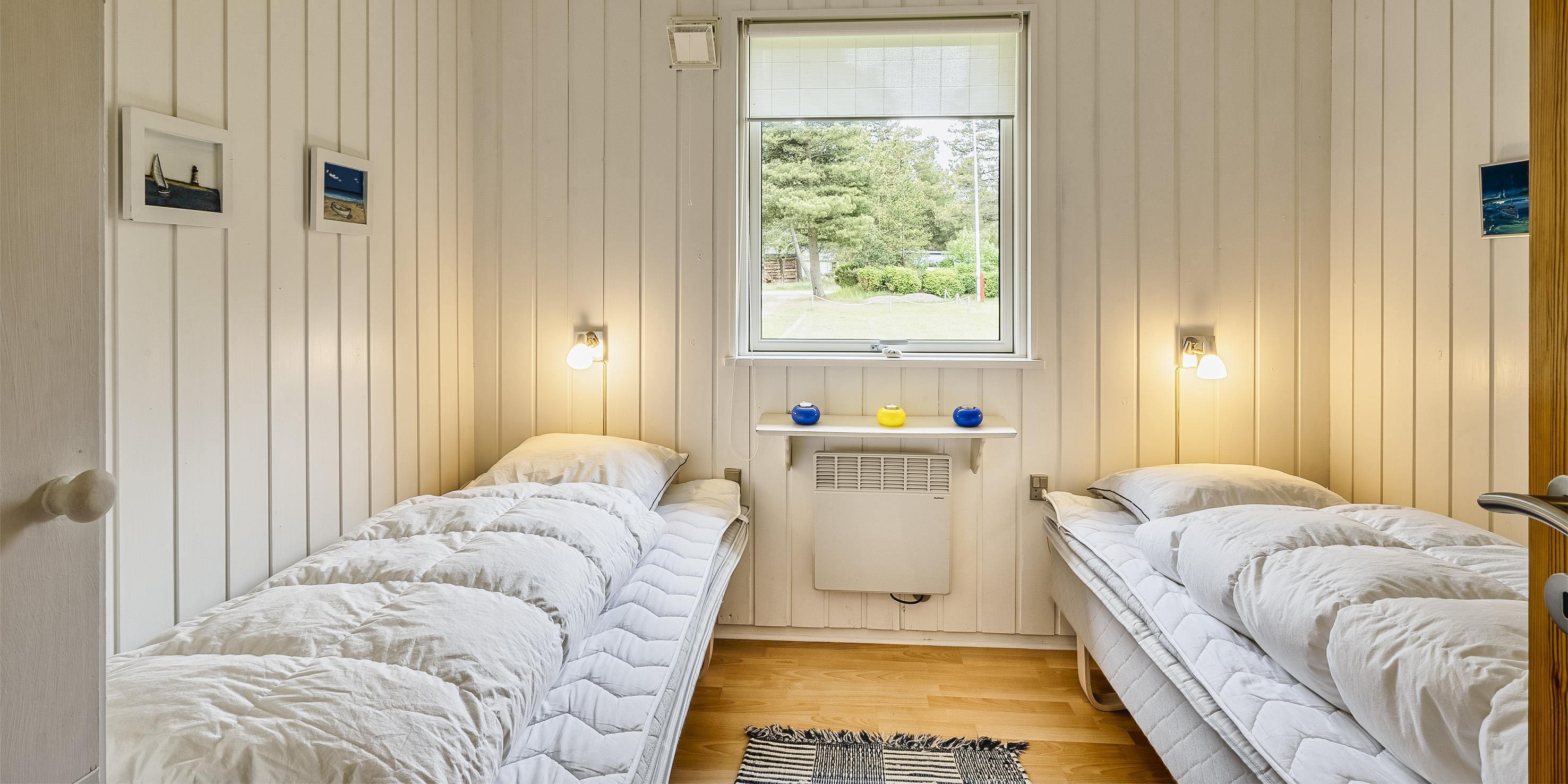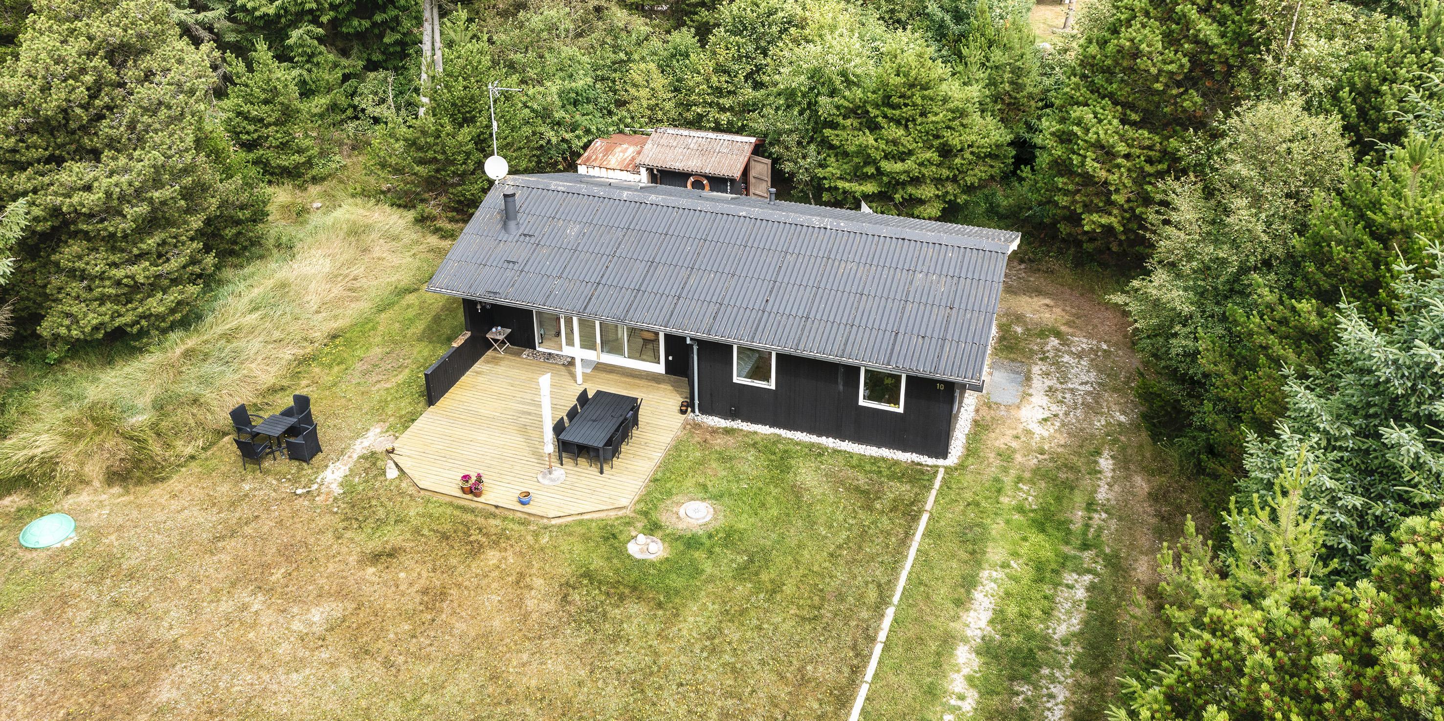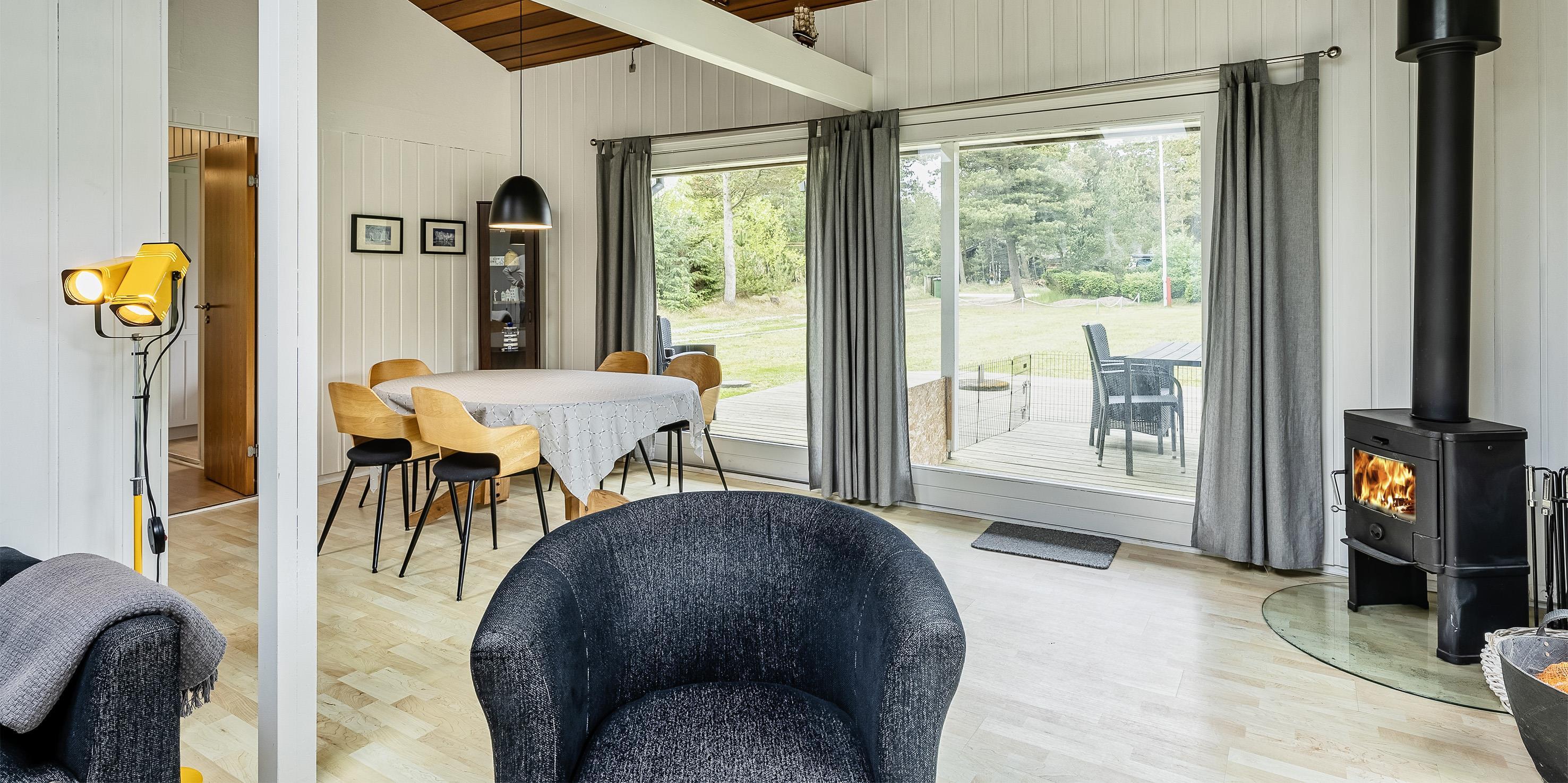 Nett eingerichtetes Ferienhaus auf einem großen grosszügigen Rasengrundstück gelegen. Das Ferienhaus ist für 6 Personen ausgestattet. Der Strand ist ca. 1,8 Km vom Ferienhaus entfernt. Der Wohn-, Ess- und Küchenbereich ist an den Wänden getäfelt und der Fußboden ist mit einem Laminat versehen. Auf der gemütlichen Rundsitzecke haben Sie einen direkten Blick auf den Kamin. Es befindet sich eine Warmepumpe im Ferienhaus. Mit dieser Warmepumpe haben sie die Möglichkeit die Stromkosten zu senken, denn die Warmepumpe ist energiesparend. Das deutsche Fernsehprogramm empfangen Sie über eine Parabolantenne. Im Wohnbereich ist auch ein offener Balken zu sehen. Desweiteren sind im Wohnbereich zwei Oberlichter und in der Küche ist ein Oberlicht im Dach eingebaut. Dadurch scheint viel Licht in diese Bereiche. Gegenüber dem Küchenbereich ist die Essgruppe platziert. In der Küche befindet sich ein Herd mit Cerankochfeld, ein Backofen, eine Geschirrspülmaschine, eine Mikrowelle und eine Kühl- und Gefrierkombination. Das neu renovierte Badezimmer ist mit einem WC, einem Handwaschbecken und einer Dusche ausgestattet. Die Waschmaschine ist hier im Badezimmer untergebracht. Insgesamt stehen den Bewohnern des Hauses drei Schlafzimmer zur Verfügung: DB + 2B + 2B. Alle Schlafzimmer sind mit je zwei Einzelbetten ausgestattet. Eine Terrasse am Ferienhaus gibt Ihnen die Möglichkeit Ihren Kaffee im Trockenen zu geniessen, da ein Teil der Terrasse überdacht ist. Das Ferienhaus verfügt über einen Internetanschluss (W-Lan). Auf dem Grundstück befindet sich ein Schaukelstativ und eine Sandkiste für die Kleinen Gäste sowie ein Schelter (Übernachtungshütte) für "hygge" oder Übernachtung. Es sind max. 1 Haustiere erlaubt. Rauchen ist nicht erlaubt. Das Ferienhaus ist in 1979 erbaut worden.