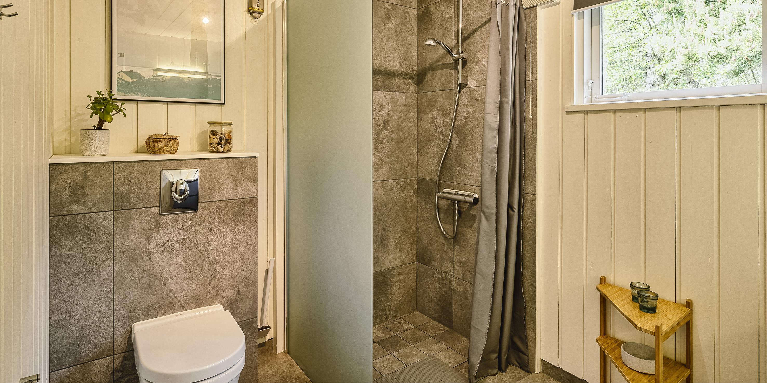 Badezimmer mit Toilette, Dusche und Waschbecken