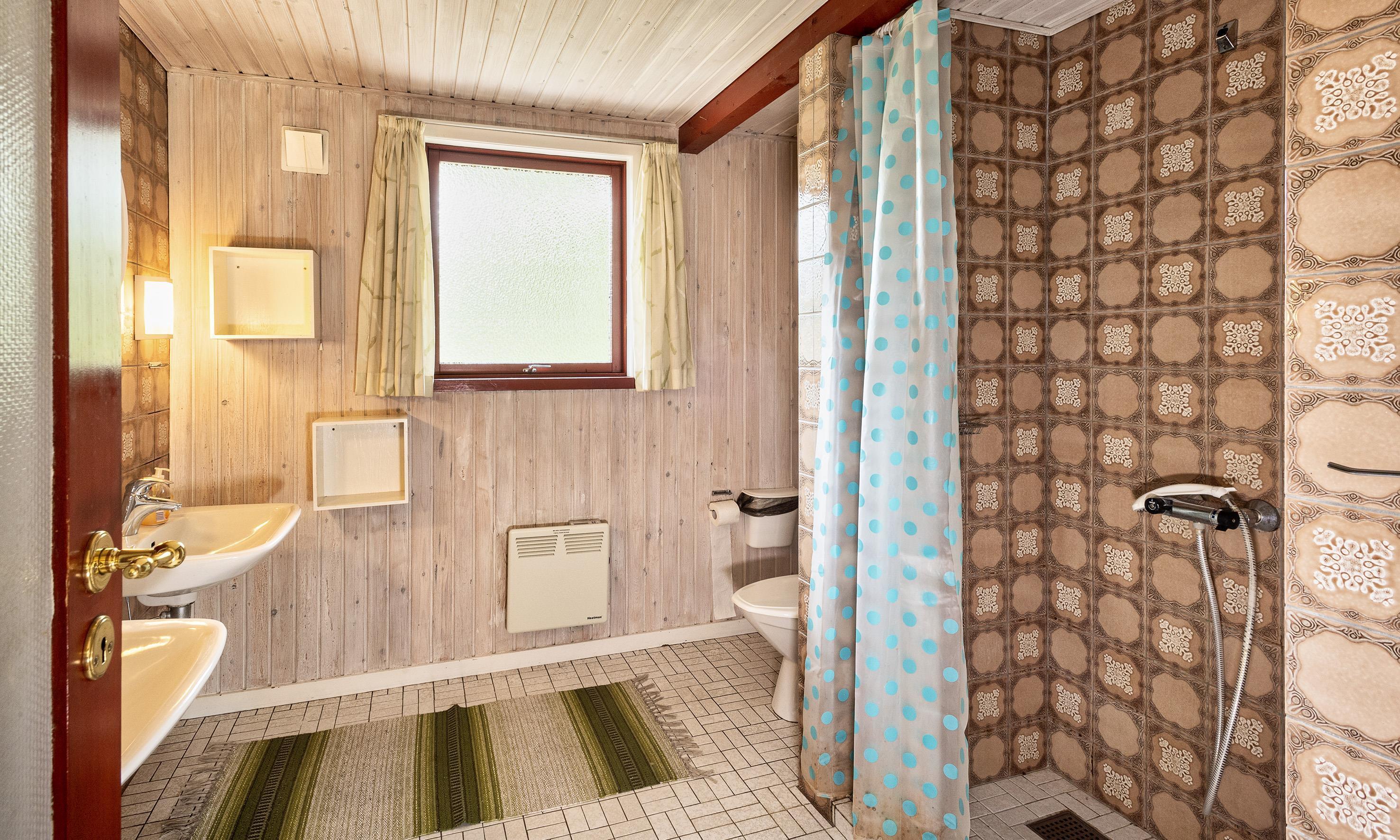 Großes Ferienhaus über 2 Etagen mit Namen ”Rødtop” auf einem schönen Naturgrundstück gelegen. Das Haus ist für 8 Personen ausgestattet und rund 1,5 Km vom Strand entfernt. Im Erdgeschoss befindet sich ein Wohnzimmer mit Essbereich, die Küche und zwei Schlafzimmer. Das Wohnzimmer ist mit dem Essbereich offen gehalten und in der Mitte der Räumlichkeit steht der Kamin und Wärmepumpe. Das deutsche Fernsehprogramm ist über eine Parabolantenne zu empfangen. Die Küche ist nur mit einer Wand zum Wohn- und Essbereich getrennt und verfügt über einen Herd mit Cerankochfeld, einem Backofen, einer Geschirrspülmaschine, einer Mikrowelle und einem Kühlschrank. Das Badezimmer hat ein WC, zwei Handwaschbecken und eine Dusche. Die Waschmaschine ist hier auch untergebracht. Ein Schlafzimmer verfügt über zwei Einzelbetten und das Andere ist mit einem Etagenbett ausgestattet. Über eine Wendeltreppe gelangen Sie dann in das obere Geschoss. Dort sind Sie dann gleich in dem zweiten Wohnbereich. Auch hier steht ein Fernsehgerät mit deutschen Fernsehprogrammen zur Verfügung. Ein kleiner Balkon ist vom Wohnbereich aus begehbar. Es gibt im Obergeschoss zwei Schlafzimmer. Das Eine ist mit einem Doppelbett ausgestattet und das Andere mit zwei Einzelbetten. Gefrierfach. Das Ferienhaus verfügt über einen Internetanschluss (W-Lan). Auf dem Naturgrundstück steht ein Schaukelstativ für die Kleinen Gäste zur Verfügung. Am Ferienhaus befinden sich zwei Terrassenbereiche und laden zum relaxen ein. Eine Garage steht für Ihr Fahrzeug zur Verfügung. Das Ferienhaus ist in 1976 erbaut worden. Es sind max. 2 Hunde erlaubt. Das Rauchen ist nicht gestattet. Ein älteres Ehepaar kann das Ferienhaus auch nur in der untersten Etage bewohnen, da sich hier alles befindet, auch ein Schlafzimmer. Vier schlafzimmer: 2B + 2B + 2B + DB