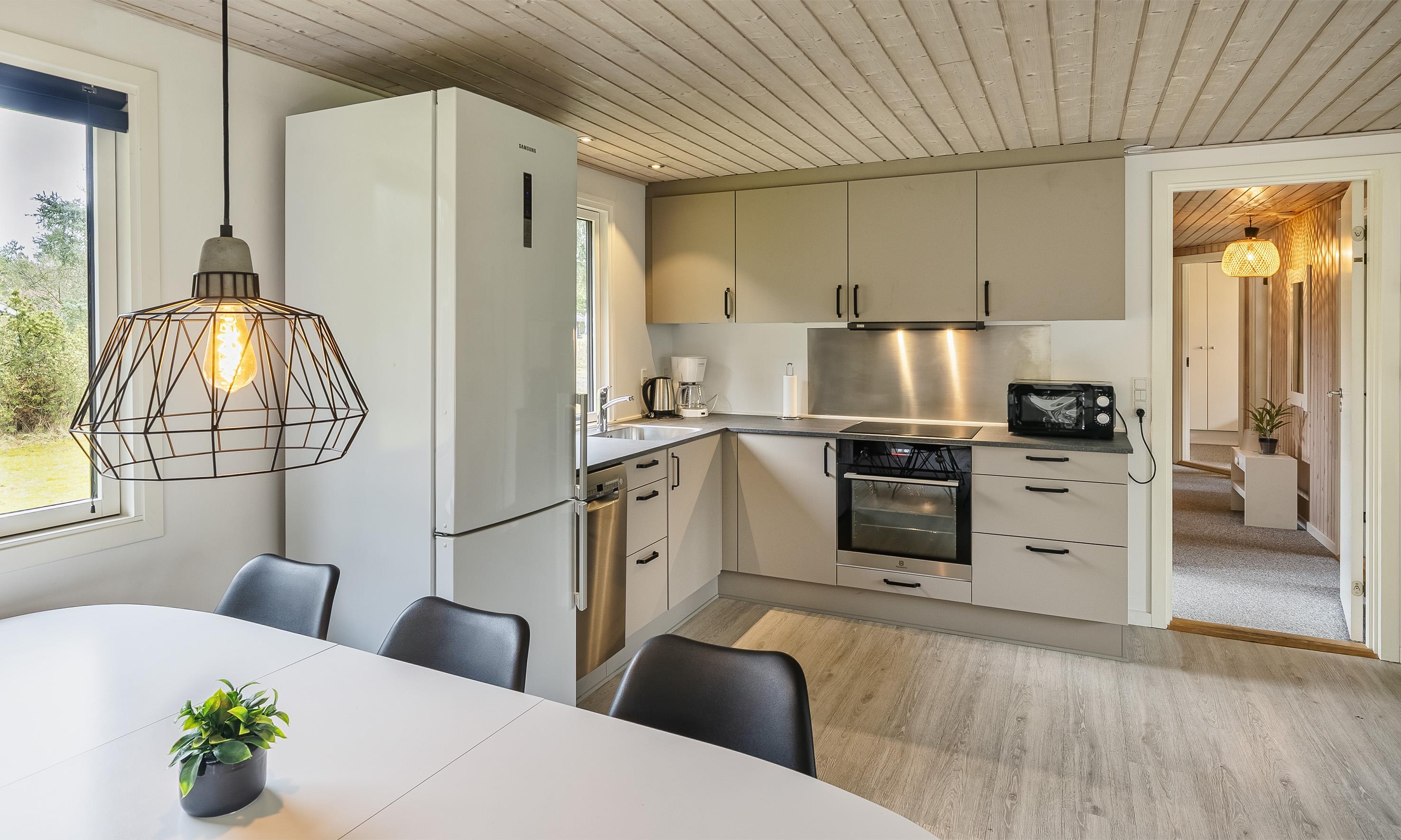 Gemütliches Ferienhaus für 7 Personen ausgestattet. Das Ferienhaus befindet sich auf einem Naturgrundstück, eingezäumt von grossen Bäumen. Der Strand ist ca. 1,8 Km vom Ferienhaus entfernt und zum Ortskern von Vejers Strand ist es fussläufig auch nicht weit. Das Ferienhaus bietet auch für die kleinen Gäste reichlich Spielmöglichkeiten auf dem grossen Rasengrundstück. Darüber hinaus befindet sich das Haus in der Nähe eines großen Wald- und Naturgebiets am Aarrild-See, wo Sie die gekrönten Hirsche hautnah erleben können. Hier gibt es viele Möglichkeiten, die Ruhe des Waldes beim Laufen oder Spazierengehen zu genießen, und im Herbst bietet der Waldboden viele essbare Pilze. Der Eingangsbereich des Hauses bietet genügend Platz für Gardeobe und Schuhe. Das Wohnzimmer ist hell und freundlich in der Ausstattung. Das Ferienhaus ist modern eingerichtet und alle ist farblich abgestimmt. Der Wohn- und Essbereich ist mit dem Küchenbereich offen gehalten und mit einem hellen Laminatboden versehen. In diesem gesamten Bereich ist der Kamin in einer Ecke gegenüber dem Küchenbereich aufgestellt. Desweiteren befindet sich eine Wärpepumpe im Ferienhaus. Mit dieser Wärmepumpe haben Sie die Möglichkeit die Stromkosten zu senken, da sie energiesparend ist. Gegenüber der gemütlichen Sofagarnitur befindet sich ein Fensehgerät, Smart-tv. Mit diesem empfangen sie dänische und auch deutsche Programme über eine Playmaker App. Der Küchenbereich (HTH auf dem Jahr 2026) verfügt über einen neuen Bakofen mit Induktionsherd und Induktion mit Booster-Funktion. ovn med induktionskogeplade og Induktion med booster-Funktion, einer Geschirrspülmaschine, Mirkowelle und einer Kühl- und Gefrierkombination. In dem Ferienhaus befinden sich insgesamt vier Schlafzimmer: DB + DB + DB + B. Dies kann als Kinderzimmer genutzt werden, denn ein kleiner Tisch mit Malutensilien steht bereit. Alle Schlafberiche sind mit Teppichboden verlegt, ebenso der Flurbereich. Ein Badezimmer ausgestattet mit einem Handwaschbecken, einem WC und einer Dusche steht den Gästen zur Verfügung. Fußbodenheizung im großen Badezimmer. Es gibt im Ferienhaus ein weiteres Gäste WC, mit Handwaschbecken. Eine Waschmaschine mit intregertem Trockner befindet sich auch im Ferinhaus und zur freien Verfügung für die Gäste. Für Ihr Fahrzeug befindet sich ein Carport am Haus. Für die kleine Gäste steht ein Schaukelstativ, ein Trampolin und ein kleines festes Spielhaus auf dem Grundstück bereit. Es ist auch genügend Platz auf dem Grundstück um zu toben oder Fussball zu spielen. 2 Tore für das Fussballspiel werden noch aufgestellt. Ein kleiner Teil der Terrasse ist überdacht. Einen Internetanschluss (W-Lan) steht Ihnen auch zur Verfügung. Hier können sie dann den Abend oder den Nachmittag mit Kaffee und Kuchen geniessen, sollte das Wetter mal umschlagen. Es sind keine Haustiere erlaubt. Das Rauchen im Ferienhaus ist nicht erlaubt. Das Ferienhaus ist in 1968 erbaut worden und laufend renoviert. Zusatzkosten für Wasserverbrauch fallen an.