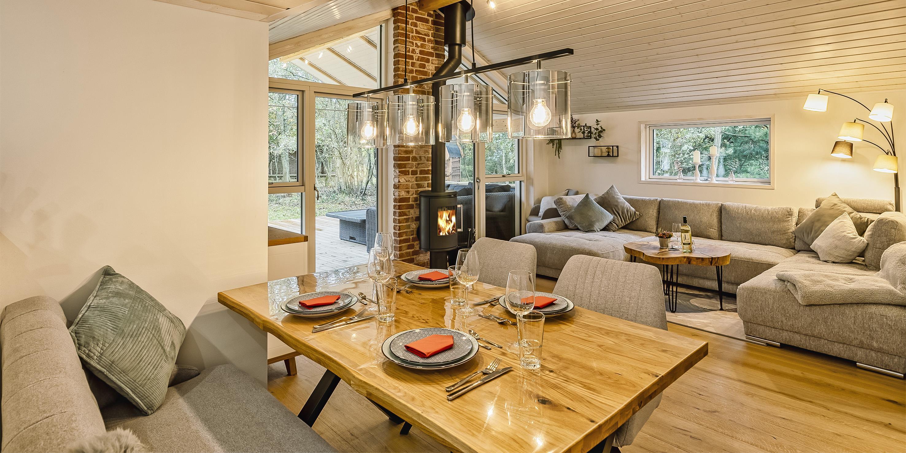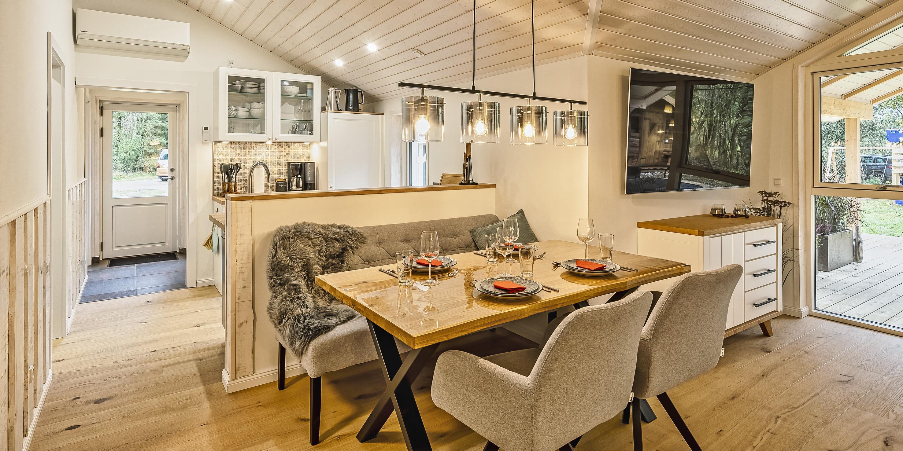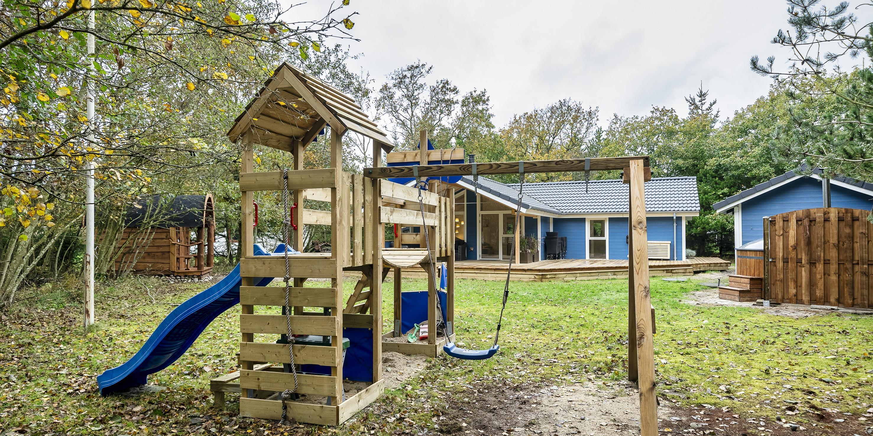 Der Eingangsbereich hat Platz für die Garderode und Schuhwerk. Auch ein Wasch-Trockner steht hier bereit. Ein großer Wohn-Essbereich mit Kamin, Smart-TV, Bluetooth-Lautsprechern und WLAN-Internetzugang mit guter Abdeckung (1000/1000 Glasfaser) steht für unsere Gästen zur Verfügung. Die Küche bietet allen Komfort, wie Geschirrspüler, Mikrowelle, Induktionsherd, Backofen und einer Kühl- und Gefrierkombination. Das Haus hat 3 Schlafzimmer. Ein Schlafzimmer mit einem Doppelbett (Boxspringbett 180x200m), ein Schlafzimmer mit einem ¾ Doppelbett (Boxspringbett 140/200m) und ein Etagenbett (80x200m). Das Badezimmer ist mit einem Badmöbel-Set, einem WC und einer Dusche ausgestattet. Auf der 60 m² Terrasse (18 m² überdacht) können unsere Gäste von morgens bis abends das ganze Jahr über, die Ruhe genießen oder Wellnesstage mit Sauna und Hot Tube einlegen. Auch an die kleinen Gäste ist gedacht. Es gibt einen Spielturm mit Rutsche, Sandkiste und Schaukel. Es gibt einen Gasgrill zum Grillen, und der Eigentümer stellt Gas zur Verfügung, jedoch nur in der Sommersaison. Zusätzlich ist das Haus mit einer energiesparenden Wärmepumpe ausgestattet. Für sehr warme Sommer mit Klimaanlage und an kalten Wintertagen mit energiesparender Heizung. Es ist ein kleiner Hund erlaubt. Das Rauchen ist nicht gestattet.