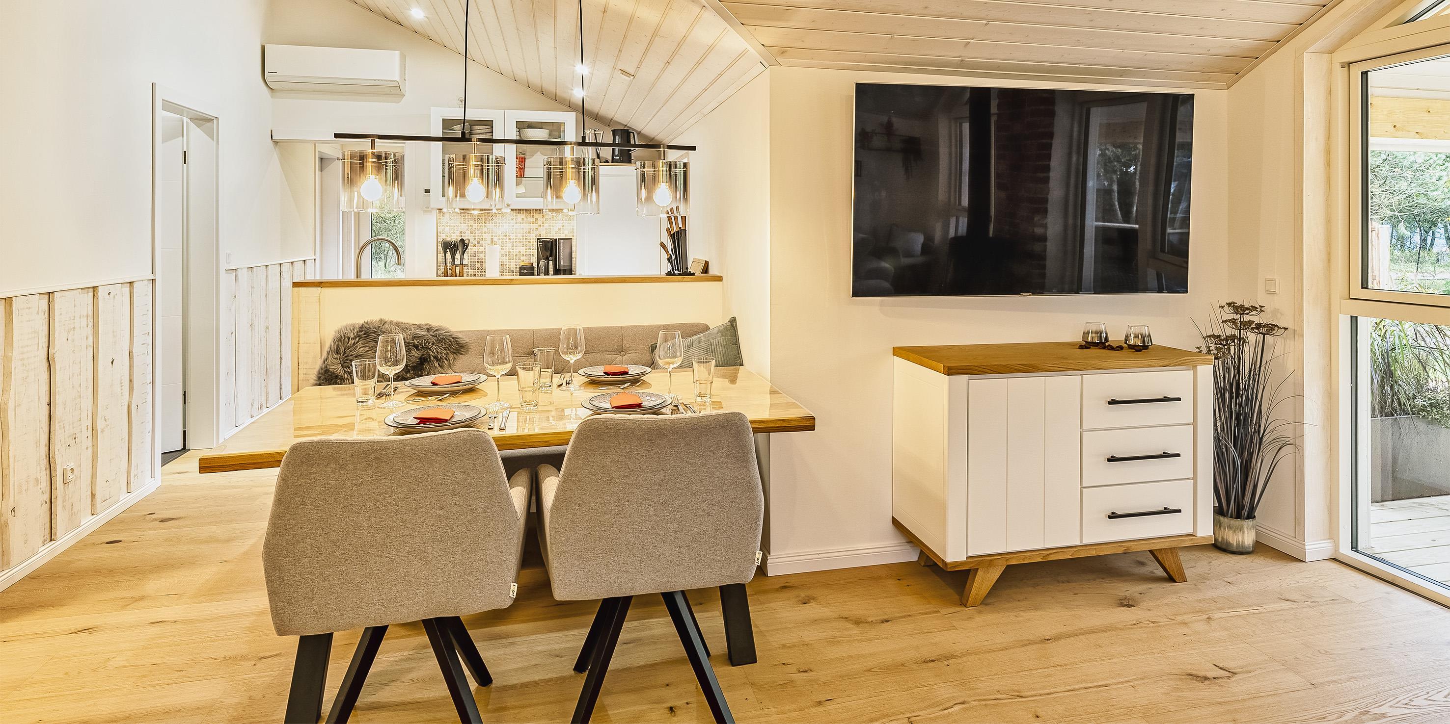In einer wunderbaren Atmosphäre mit viel Komfort und Aktivitätsmöglichkeiten, bietet dieses tolle Sommerhaus (Baujahr 2023) mit 76 m² genügend Platz für die Familien oder Paare für den hyggeligen Urlaub. Das ganze Jahr über ist dieses Haus buchbar. Ein Kamin, eine Aussen-Sauna und ein Vilmarksbad (Badefass mit Holzofen und Massagefunktion) machen auch die kälteren Tage zu einem Verwöhnerlebniss. Das Haus liegt auf einem Naturgrundstück und bietet gute Parkmöglichkeiten mit Carport und Abstellkammer für Fahrräder. Hier ist auch das Laden von Elektroautos bzw. E-Bikes möglich.