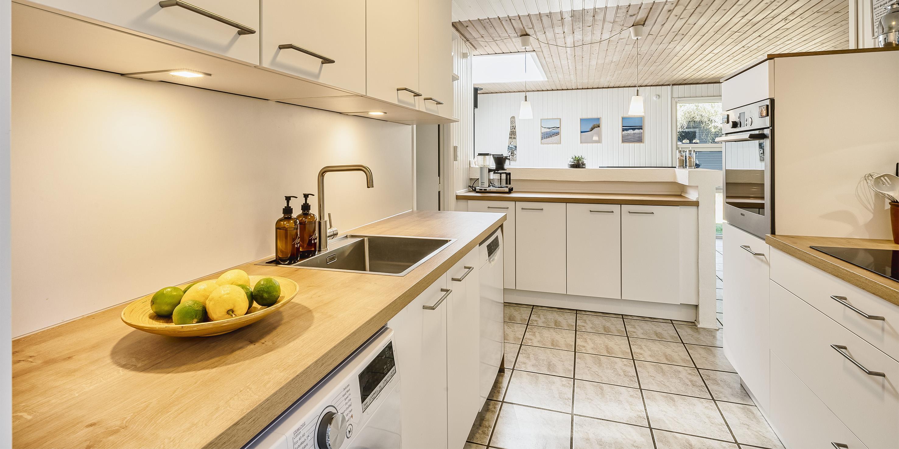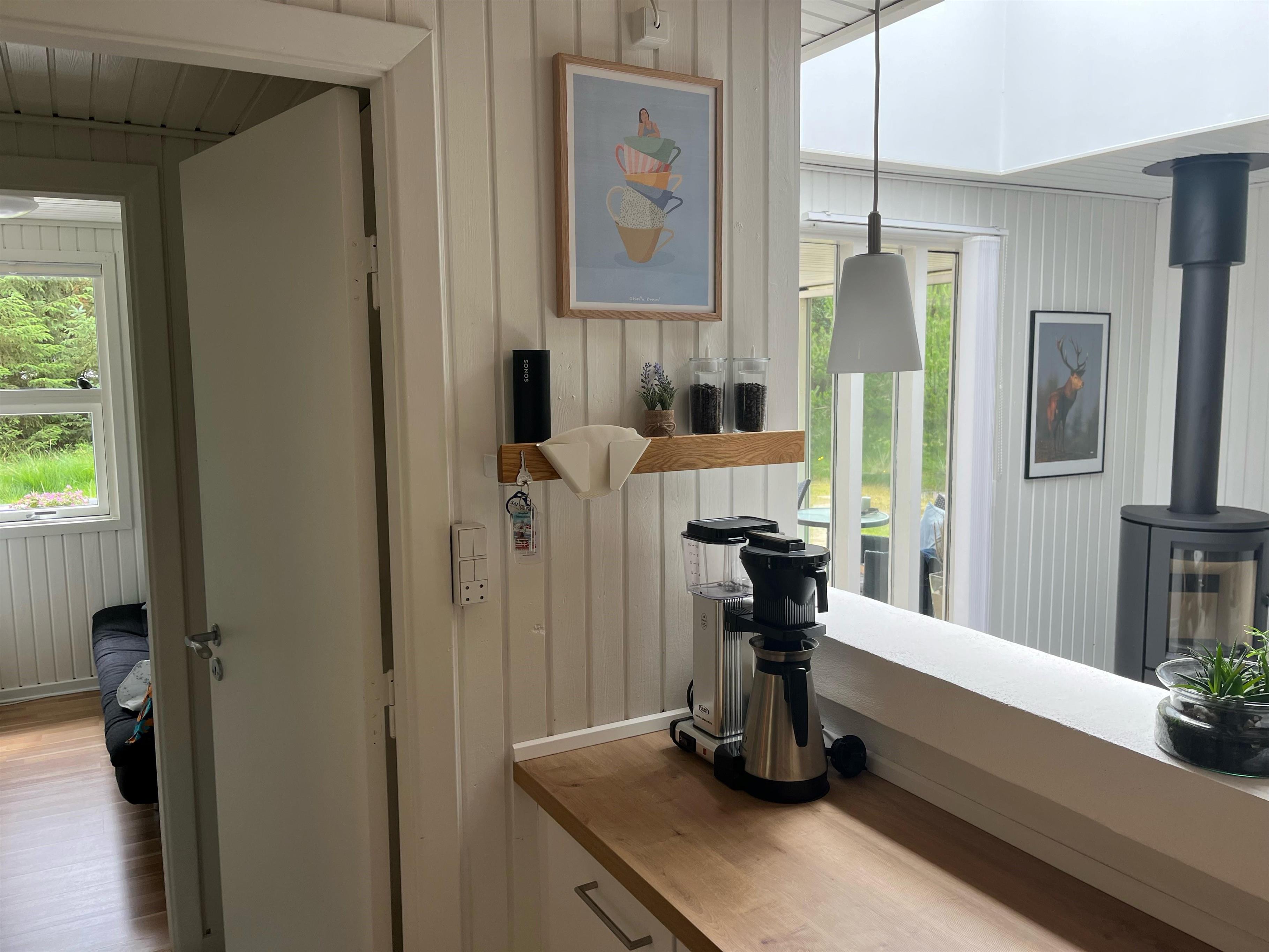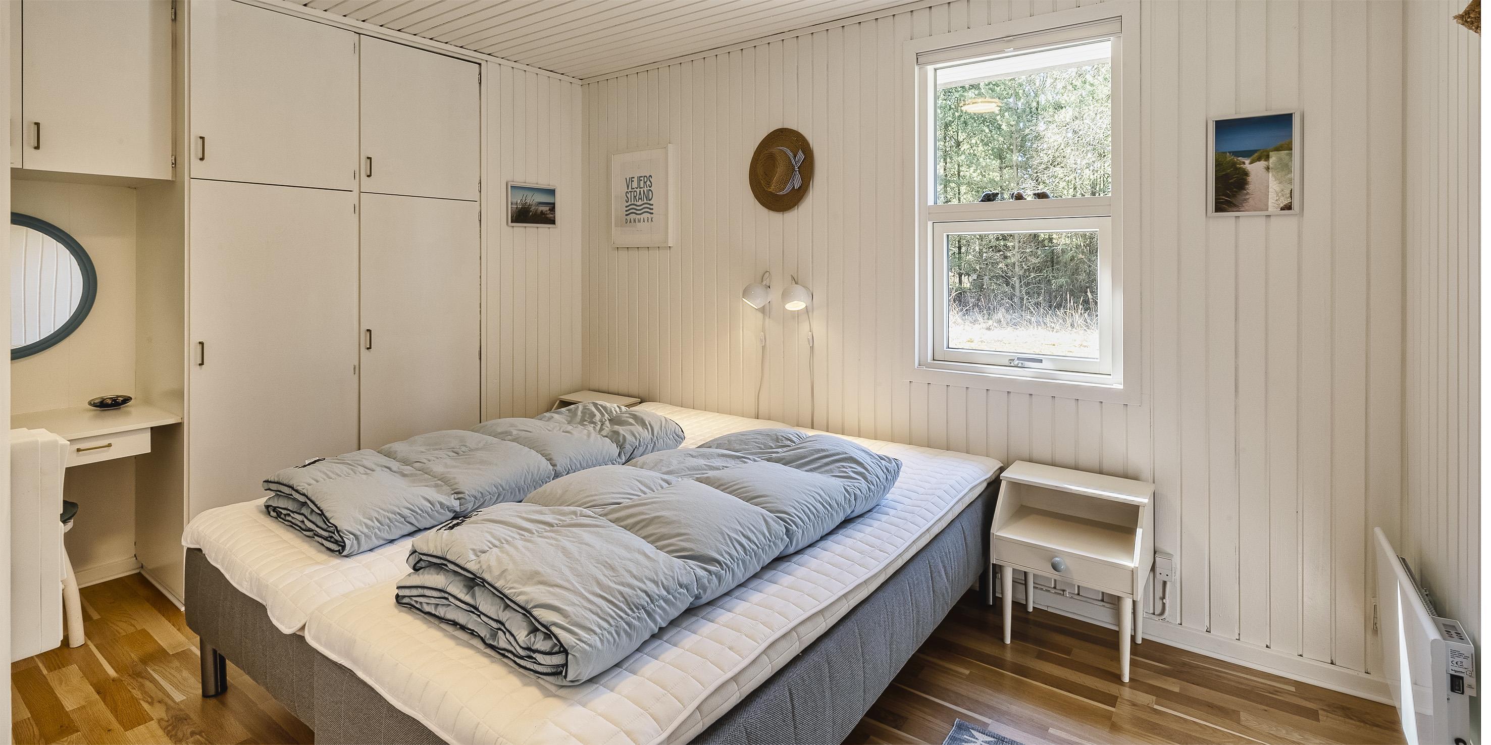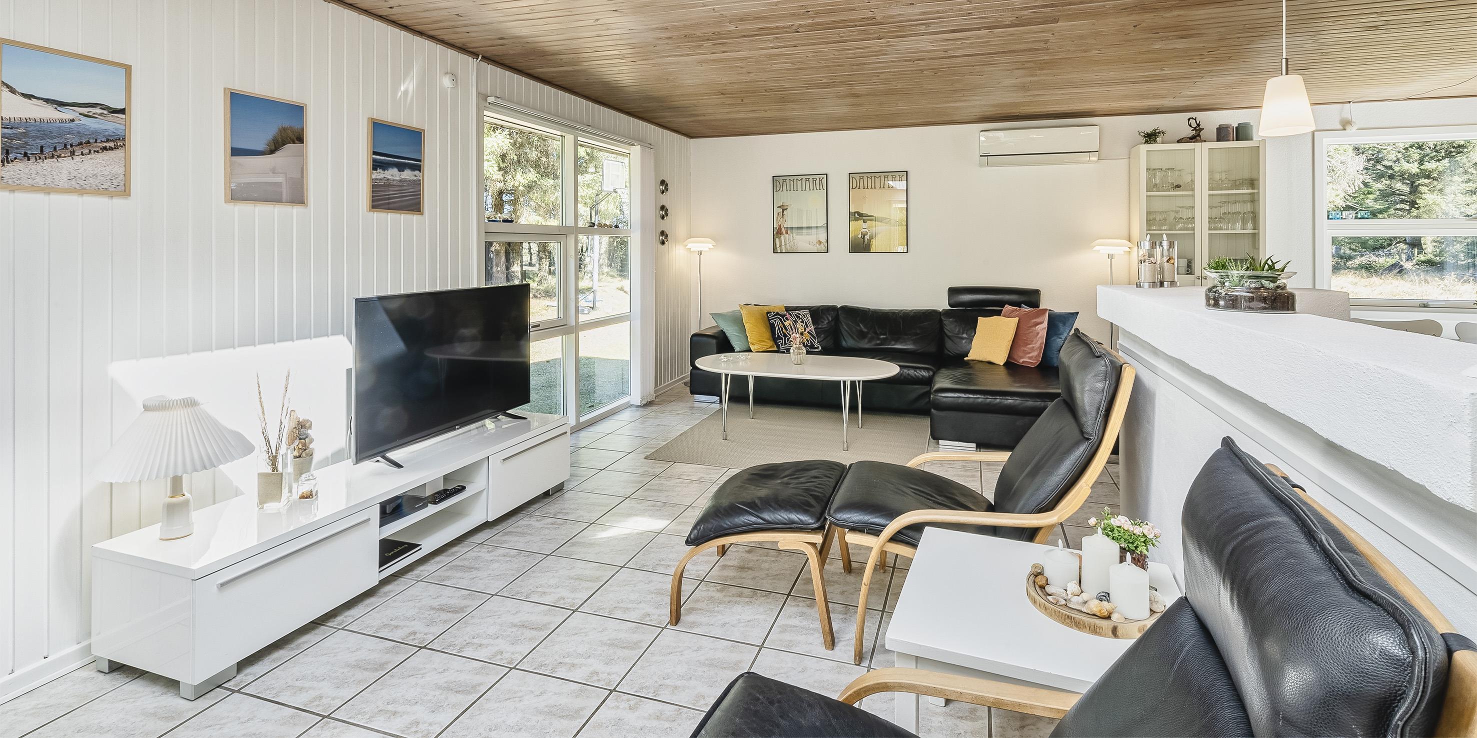 Schönes und gemütliches Ferienhaus mit Namen "Kibbik" auf einem nicht einsehbaren Grundstück gelegen. Das Ferienhaus ist für 6 Personen ausgestattet. Der Strand ist ca. 2 Km vom Haus entfernt. Der Wohnbereich ist mit dem Essbereich und der Küche offen gehalten. Dieser komplette Bereich ist gefliest. Der Eingangsbereich hat ein Oberlicht und ist daher sehr hell und freundlich. Desweiteren ist der Eingangsbereich von außen überdacht. Der im Wohnbereich aufgestellte Kamin spendet eine wohlige Wärme. Es befindet sich eine Warmepumpe im Ferienhaus. Mit dieser Warmepumpe haben sie die Möglichkeit die Stromkosten zu senken, denn die Warmepumpe ist energiesparend. Das deutsche Fernsehprogramm empfangen Sie über eine Parabolantenne sowie Stofa. Der offene moderne und neue Küchenbereich verfügt über einen Herd mit Cerankochfeld, einem Backofen in Arbeitshöhe, einer Geschirrspülmaschine, einer Mikrowelle und einer Kühl- und Gefrierkombination. Ausgang zum terrasse von den Küchenbereich. Das schöne neue Badezimmer ist mit einem WC, einem Handwaschbecken, einer Dusche und einer Sauna ausgestattet. Im Ferienhaus befindet sich eine kombinierte Waschmaschine/Trockner, die von den Gästen genutzt werden darf. Den Gästen stehen drei Schlafzimmer zur Verfügung: DB + DB + 2B. Ein Schlafzimmer hat ein Doppelbett, ein Schlafzimmer zwei Einzelbetten und das Dritte hat ein Ausziehbett. Das Ferienhaus verfügt über einen Internetanschluss (W-Lan 1000/1000 Mbit). Eine flotte Holzterrasse steht Ihnen am Ferienhaus auch zur Verfügung. Das Ferienhaus verfügt über ein Gas Grill, das Sie benutzen dürfen. Der Grill muss nach Gebrauch wieder gereinigt zurück gestellt werden. Auf dem Grundstück steht ein Schelter bereit. Das Rauchen im Ferienhaus ist nicht erlaubt sowie Katzen auch nicht. Es sind max. 1 Haustier erlaubt. Gratis Eintritt Golf in Ho in 2026. Das Ferienhaus ist 1972 erbaut worden. 2022 teilweise renoviert.