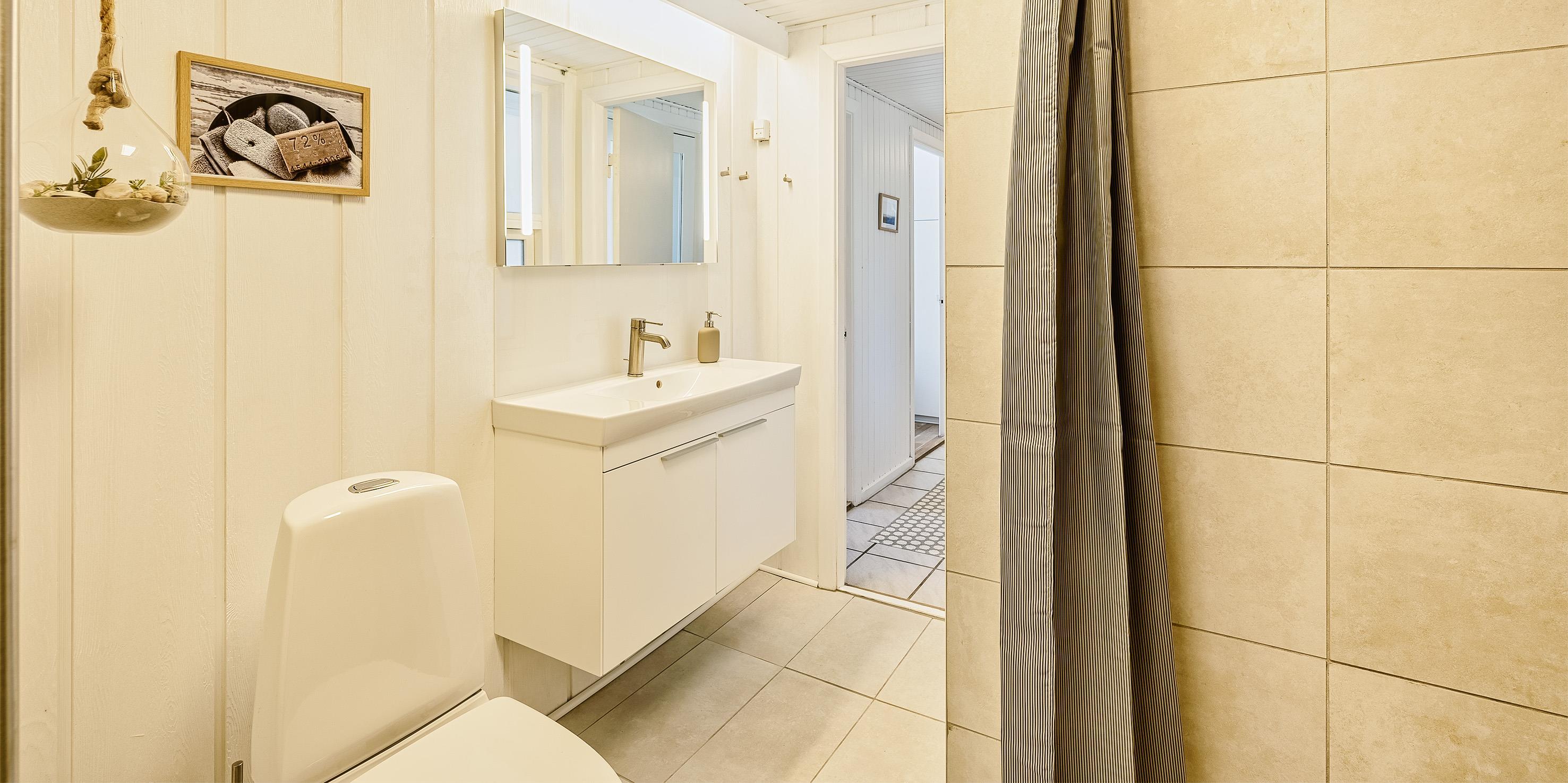 Badezimmer mit Toilette, Dusche und Waschbecken