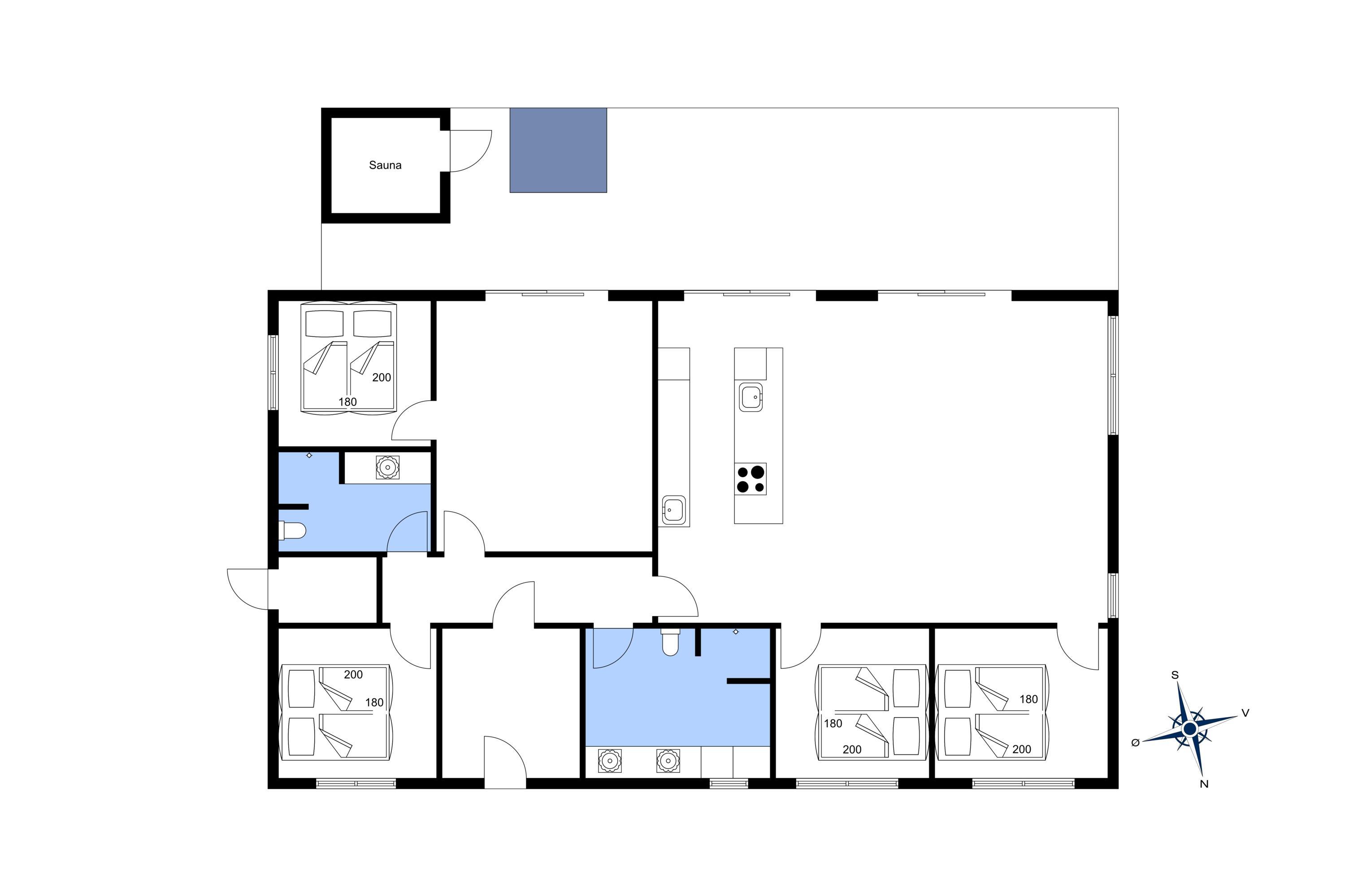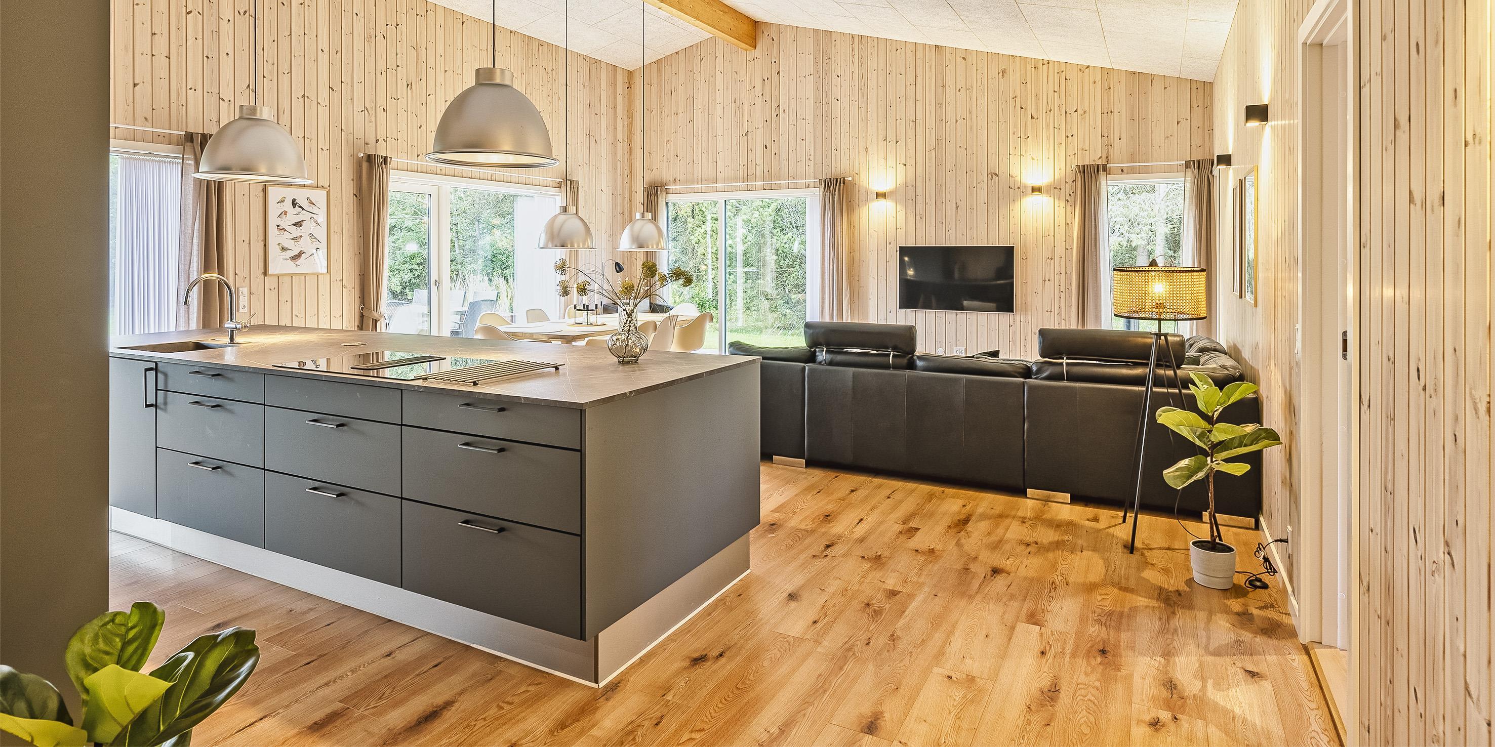 Neubau eines modernen Aktivitätshaus für 8 Personen. Das Ferienhaus verfügtüber 171 qm Wohnfläche und bietet Komfort und Aktivitäten für die Familie das ganze Jahr über. Der Strand ist ca. 850 Meter vom Ferienhaus entfernt. Das Ferienhaus ist hell und freundlich in der Ausstattung und eine Fussbodenheizung befindet sich in alles Räumen, daher sind keine Heizkörper vorhanden. In dem grosszügigem Eingangsbereich ist genügend Platz für Jacken und Schuhe. Der Wohn- und Essbereich ist zur Küche hin offen gehalten. Auf der gemütlichen Ledersitzgarnitur haben Sie einen schönen Blick in die Natur und auf den Terrassenbereich. Durch die grossen Panoramafenster fällt genügen Licht auf den grossen Holzesstisch, wo alle Gäste genügend Platz haben. Ein Flachbildschirm gibt Ihnen die Möglichkeit über Google Chrome Cast die deutschen Programme zu empfangen. Dänische Programme können auch empfangen werden. Die moderne Einbauchküche bietet Ihnen alles was Sie brauchen. Die Einbaucküche ist mit einem Herd mit Cerankochfeld, einem Backofen in arbeitshöhe, einer Mikrowelle, einer Geschirspülmaschine und einer Kühl- und Gefrierkombination mit 8 Schubladen ausgestattet. Hier bringt das Kochen viel Spass und Sie sind in dem täglichen Geschehen dabei, da Sie vom Küchenbereich aus mit dem Wohnbereich und dem Essbereich intregiert sind. Es gibt für alle Gäste zwei Badezimmer, die sich jeweils in der Nähe von zwei der insgesamt vier Schlafzimmer befinden. Beide Bäder verfügen über ein Handwaschbecken, eine Dusche und und ein WC. In dem grösseren Badezimmer sind die Waschmaschine und der Trockner untergebracht. Insgesamt stehen den Gästen vier schöne Schlafzimmer bereit: DB + DB + DB + DB. Es gibt in dem Ferienhaus einen separaten Aktivitätsraum. Hier befinden sich ein paar Fitness-Geräte, so wie z.B. ein Gymnastikball oder einen Hula-Hopp-Reifen. Ein Billiardtisch mit Zubehör ist in der Mitte des Raumes aufgestellt. Darauf kann dann eine Tischtennisplatte gelegt werden und dann kann dort auch Tischtennis gespielt werden. Ein TV-Gerät befindet ich ebenfalls in diesem Aktivitätsraum. Der Aussenbereich ist flott angelegt. Rund um das Ferienhaus sind Fliesen gelegt, sodas Sie trocken von der einen Seite auf die andere Seite kommen. Auf der hinteren Seite des Ferienhauses ist dann der Terrassenbereich. Die Hälfte der Terrasse ist überdacht. Unter diesem überdachten Bereich befinden sich ein Aussenwhirlpool, eine Aussensauna und eine Aussendusche. Desweiteren ist hier auch noch ein Tisch mit Gartenstühlen aufgestellt. So, das alles genutzt werden kann, auch wenn es ein paar Tropfen geben sollte. Auf der andersen Hälfte ist auch nochmal ein Tisch mit Bestuhlung aufgestellt. Es sind keine Haustiere erlaubt. Das Rauchen im Ferienhaus ist nicht erlaubt. Das Ferienhaus verfügt über einen Internetanschluss (W-Lan). Baujahr des Hauses 2022, also Neubau. Es muss mit zusätzlichen Wasserkosten gerechnet werden.