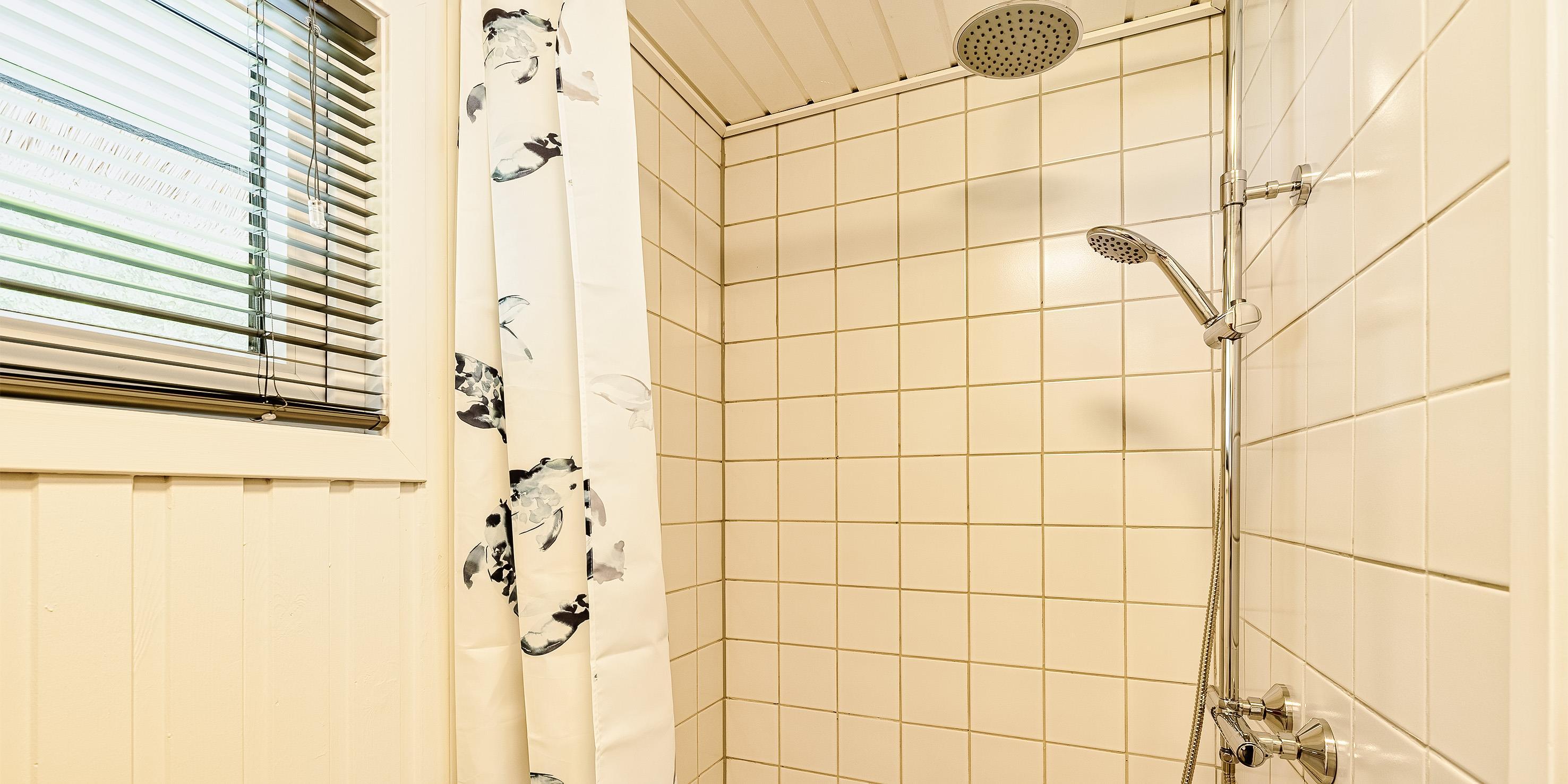 Badezimmer mit Toilette, Dusche und Waschbecken