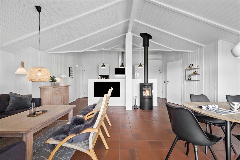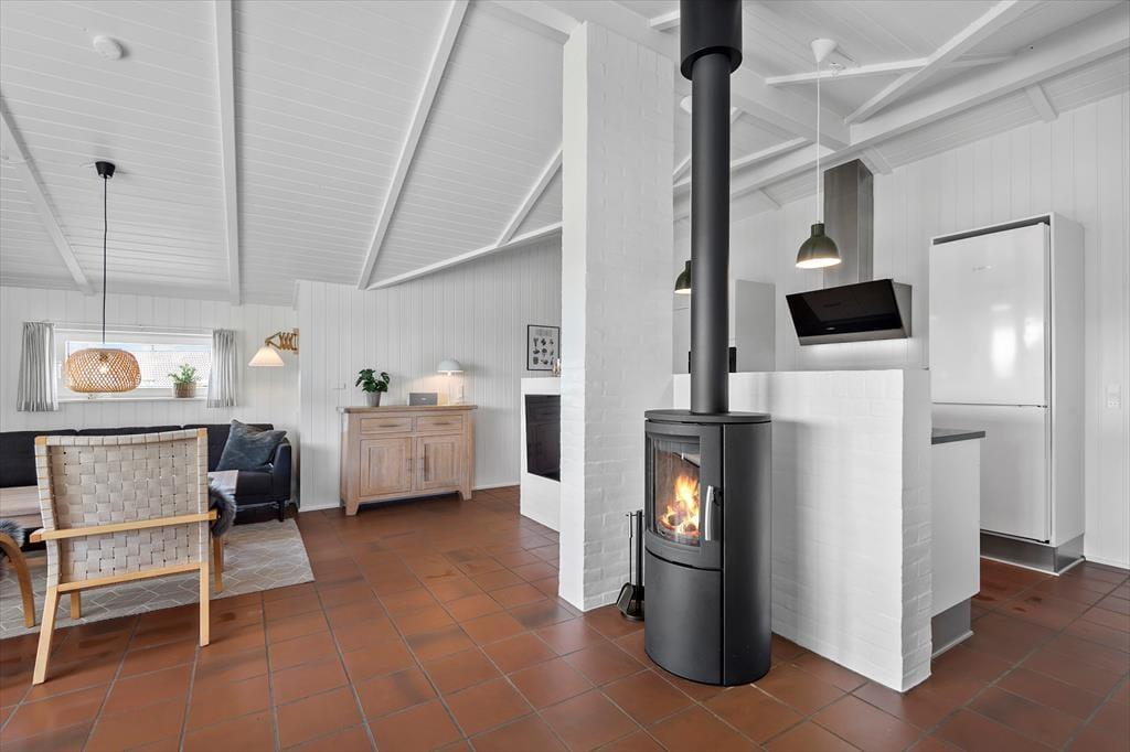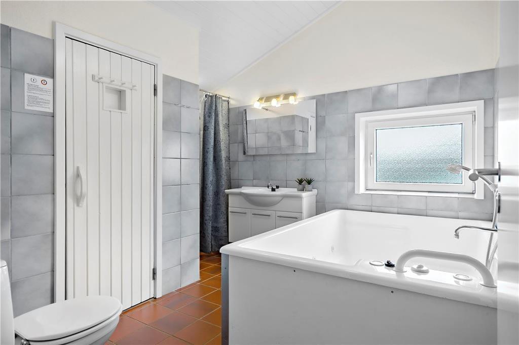Bei diesem Ferienhaus inmitten herrlicher Natur bieten sich Ihnen beste Möglichkeiten für einen richtig erholsamen Urlaub in einem gemütlichen Ferienhaus mit unglaublich viel Platz im Freien. Dieses gut ausgestattete Urlaubsdomizil verfügt über vier geräumige Schlafzimmer, eine schön große Küche und ein Wohnzimmer mit Kamin. Vom Wohnzimmer mit seinen großen Panoramafenstern, haben Sie direkten Zugang zur Terrasse in südöstliche Richtung. Zum Haus gehören zwei Bäder, von denen das größere zusätzlich mit einem großen Whirlpool und einer Sauna ausgestattet ist.Im Eingangsbereich sind eine Waschmaschine und ein Trockner untergebracht, sodass Sie nach einem vergnügten Tag am Strand jederzeit Ihre Handtücher und Ihr Badezeug waschen können.