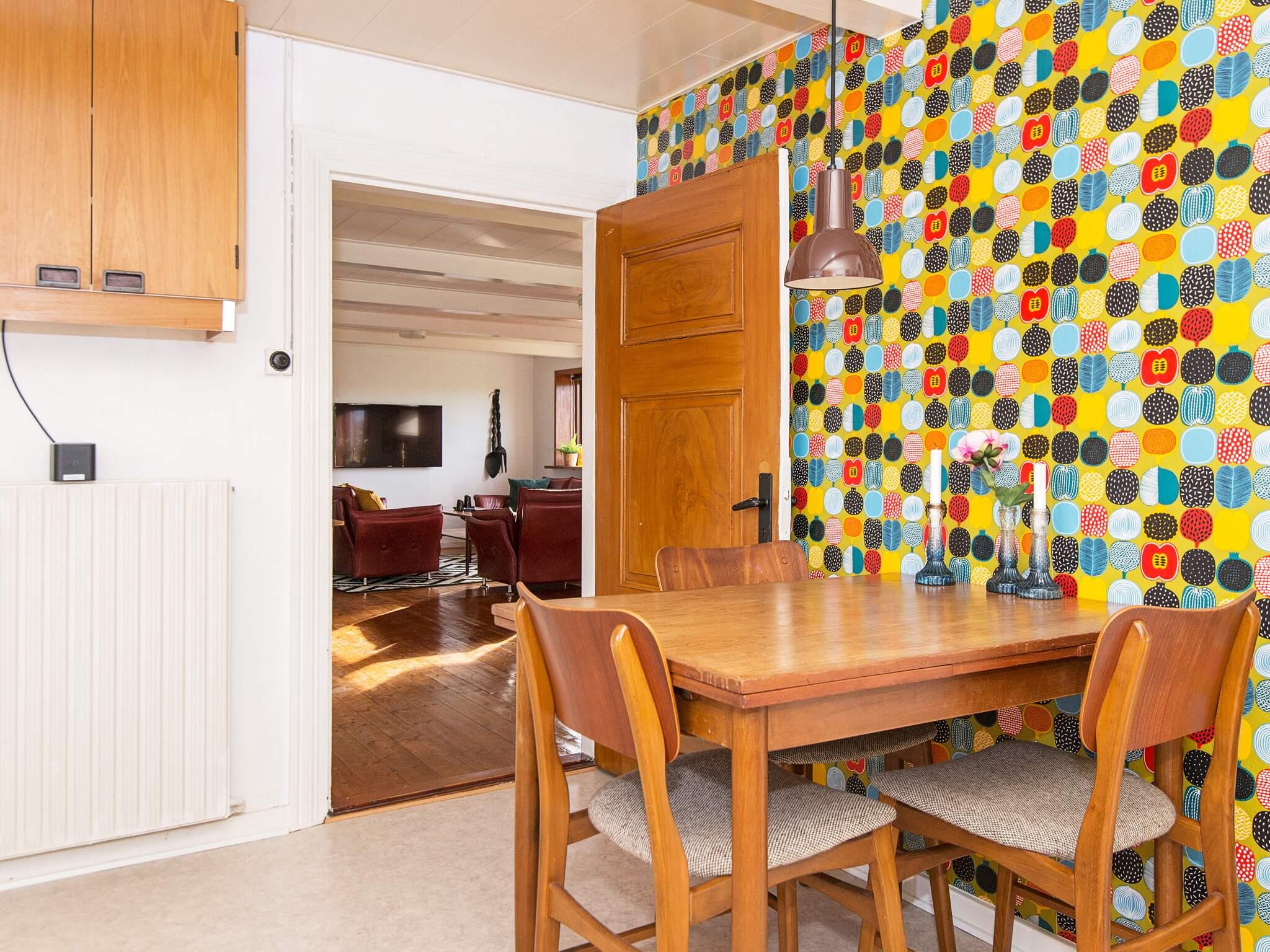Boligen wurde mit Respekt vor der Jahrhundertwende und dem Stil des Retrostils renoviert, die Ledertanks wurden bis in die 1960er und 1970er Jahre beibehalten. Ihr Finder habe ich in einem authentischen Halbfjerdser-Stil gefunden und mit Teakholz-Möbeln verwoben, die ihren Charme verloren haben.