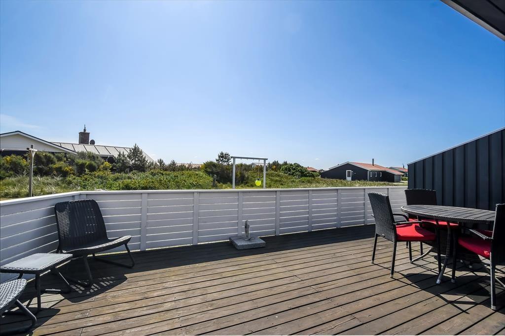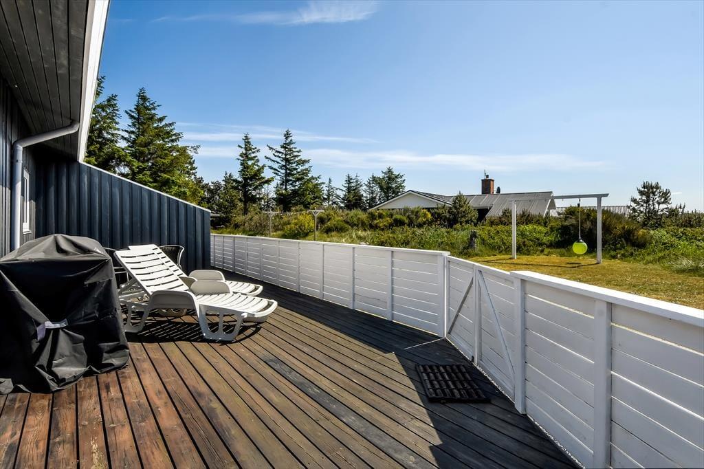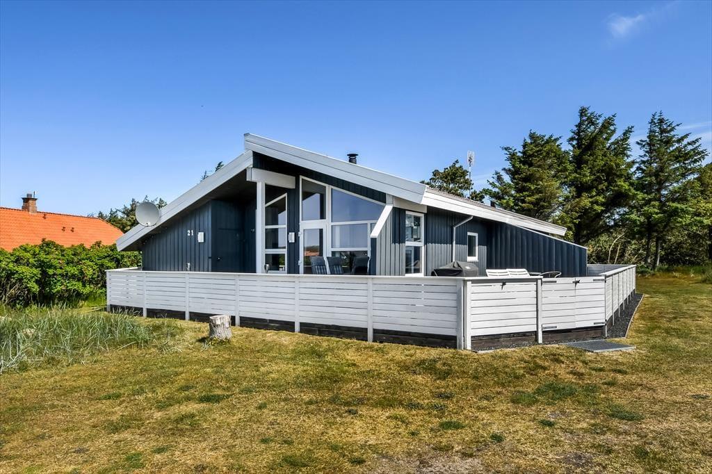 Das Ferienhaus ist von einem großen Naturgrundstück umgeben, auf dem Kinder frei spielen und toben können. Die teilweise überdachte Terrasse ist mit Gartenmöbeln und Liegestühlen ausgestattet – perfekt für entspannte Stunden mit einem guten Buch oder einer Tasse Kaffee in der Sonne. Am Abend könnt ihr euch um den Grill versammeln und ein leckeres Essen zubereiten, während die Sonne hinter den Dünen untergeht. Für die kleinen Gäste gibt es eine Schaukel, die für stundenlangen Spaß und Lachen sorgt.