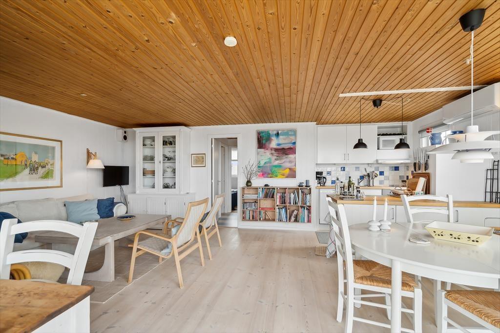 Beim Betreten des Hauses empfängt dich eine helle und einladende Atmosphäre, in der man sich sofort wohlfühlt. Die Einrichtung ist schlicht und geschmackvoll – mit einem klaren Fokus auf Gemütlichkeit und Funktionalität, so wie es sich für ein klassisches dänisches Ferienhaus gehört. Hier ist Platz für Rückzug ebenso wie für gemeinsames Beisammensein, wobei das Wohnzimmer mit seinen großen Fenstern das natürliche Zentrum bildet. Das Licht flutet durch die Fenster und verbindet Außen- und Innenraum auf harmonische Weise. Der offene Wohnbereich mit Küche und Essplatz lädt zum Miteinander ein – ob beim Kochen, beim Spielen oder beim gemütlichen Kaffeetrinken auf dem Sofa. Das Ferienhaus eignet sich ideal für Paare, kleine Familien oder Freunde, die sich nach einer Auszeit sehnen, bei der Einfachheit, echter Charme und Nähe im Mittelpunkt stehen.