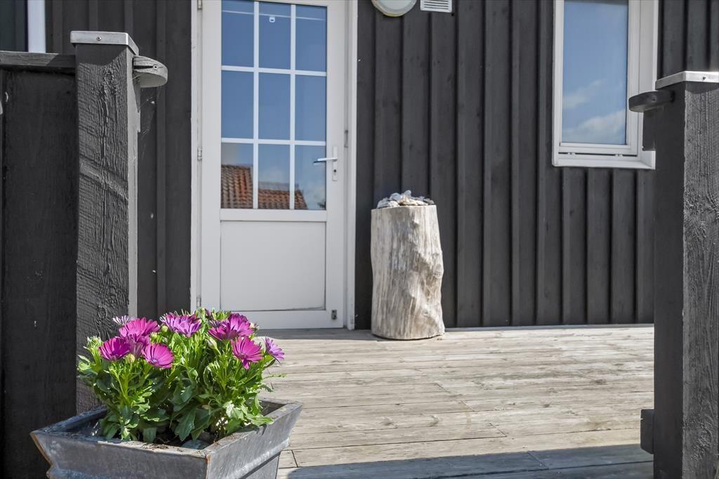 Die große Terrasse des Ferienhauses ist ein echtes Highlight für alle, die das Draußensein lieben. Hier kannst du schon morgens mit einer Tasse Kaffee die Sonne im Gesicht spüren, und am Nachmittag lädt der Liegestuhl mit einem guten Buch zum Entspannen ein. Die Terrasse ist wie geschaffen für gesellige Grillabende und lange Sommernächte unter freiem Himmel. Da das Haus windgeschützt liegt, kannst du das Leben im Freien oft bis in die späten Abendstunden genießen. Auch der Garten bietet viel Platz zum Spielen und Erholen – und da Hunde erlaubt sind, darf sich natürlich auch der beste Freund der Familie überall frei bewegen. Hier fällt es leicht, den Alltag hinter sich zu lassen und neue Energie zu tanken, während die Stille der Natur und die Nähe zur See die Kulisse für unvergessliche Urlaubsmomente bilden.
