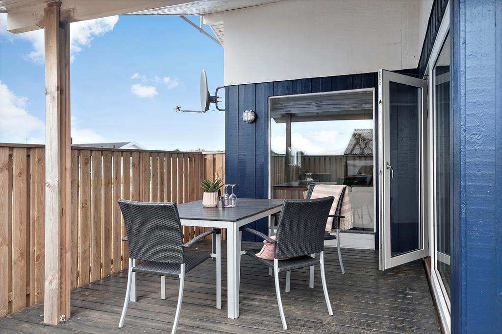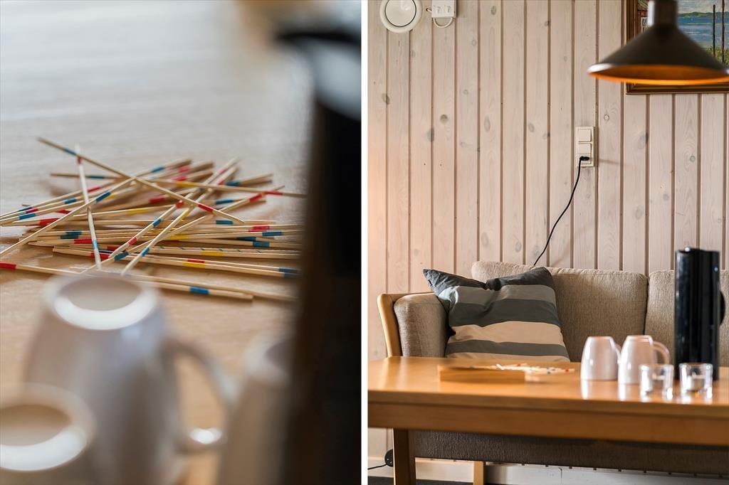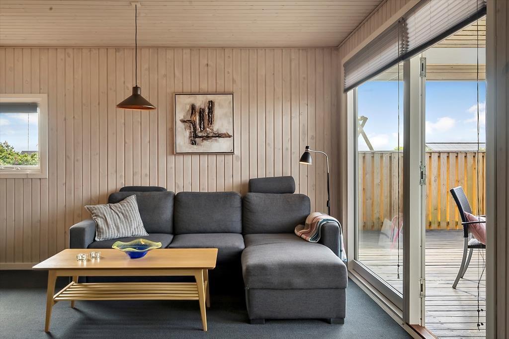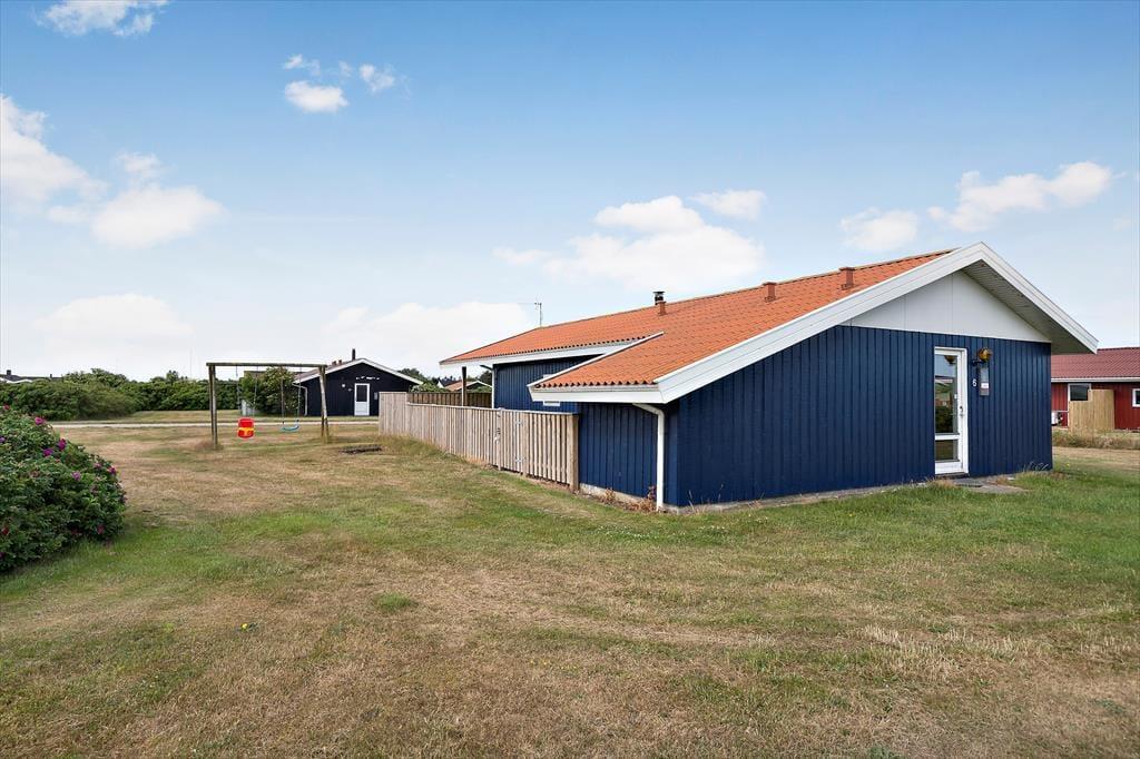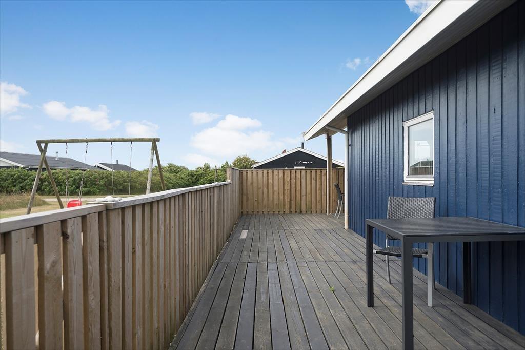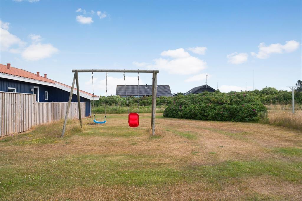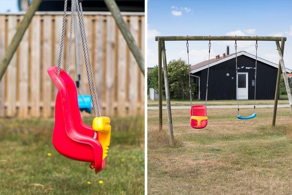 Im Außenbereich überzeugt das Haus mit Einrichtungen, die besonders Familien mit Kindern ansprechen. Auf dem Rasen ist viel Platz zum Spielen und Toben, und im Garten warten Sandkasten und Schaukel auf die Kleinen. Die Erwachsenen können derweil das Leben auf der Terrasse genießen – vielleicht mit einer Tasse Kaffee in der Morgensonne oder einem gemütlichen Grillabend, während die Kinder in Sichtweite spielen. Es gibt sowohl offene als auch geschützte Terrassenbereiche, sodass du immer ein Plätzchen im Windschatten oder in der Sonne findest – je nachdem, wonach dir gerade ist. Hier fällt es leicht, draußen zu sein – und noch leichter, einfach ein bisschen länger zu bleiben, wenn der westjütländische Sommer sich von seiner besten Seite zeigt.