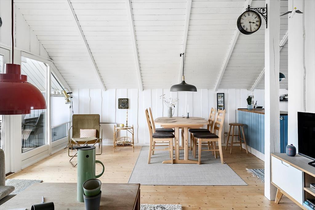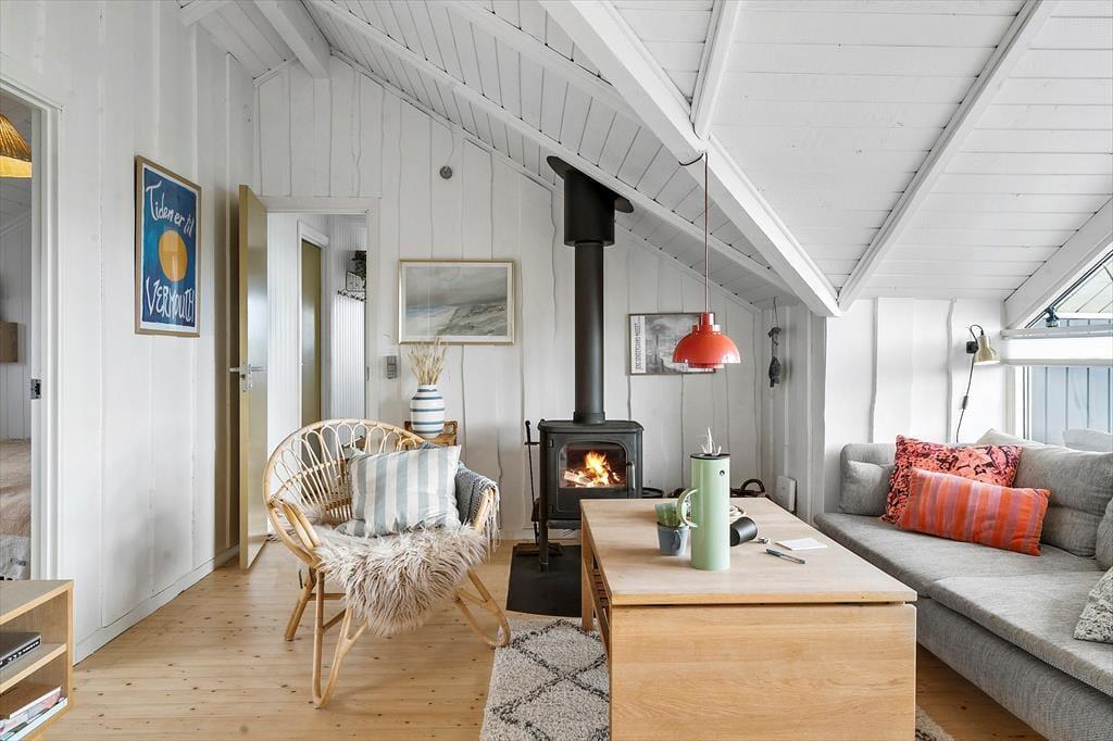 Dieses Ferienhaus begrüßt dich mit einer hellen und einladenden Einrichtung, die dich sofort in Urlaubsstimmung versetzt. Der offene Wohnbereich verbindet Küche, Essplatz und Wohnzimmer, sodass ihr gemeinsame Mahlzeiten, Spieleabende oder entspannte Gespräche vor dem Kaminofen genießen könnt. Große Fensterfronten lassen viel Tageslicht herein und bieten einen Blick auf das friedliche Naturgrundstück. Mit drei Schlafzimmern bietet das Haus Platz für Familie und Freunde. Das Badezimmer ist gemütlich und einladend – perfekt für eine entspannte Ferienzeit.