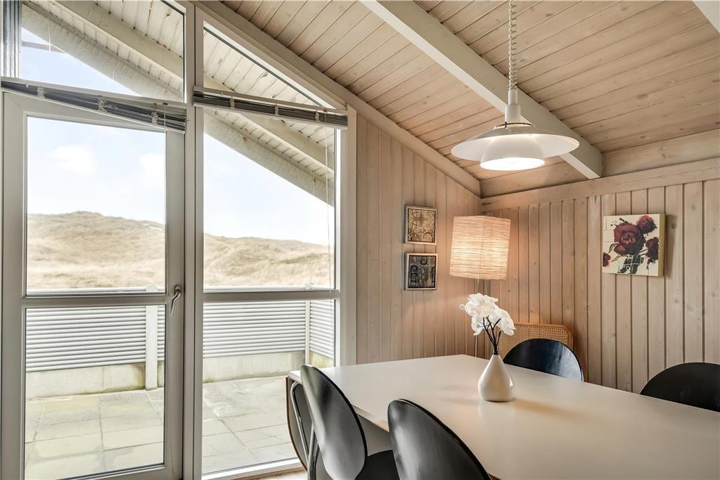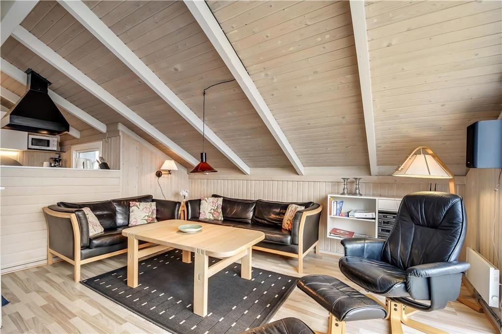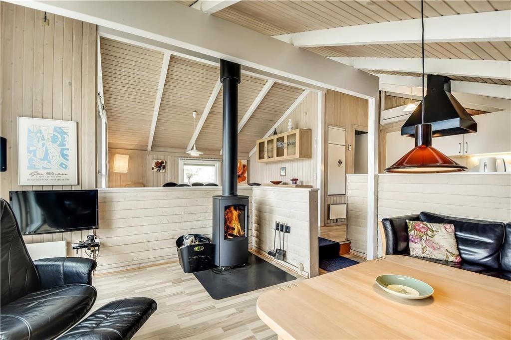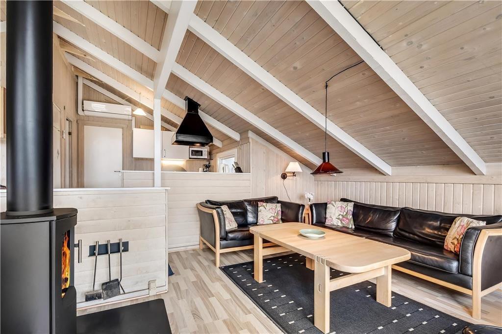 Draußen erwartet dich eine wunderschöne Terrasse, der dir die Möglichkeit gibt, sowohl Sommerabende als auch kühle Tage unter freiem Himmel zu genießen. Der Duft von Salz in der Luft und das Rauschen der Wellen in der Nähe machen das Erlebnis noch magischer. Die Terrasse ist teilweise überdacht, sodass du Schutz vor Wind findest, während du die Sonne genießt oder ein frisch gegrilltes Abendessen servierst. Kinder haben viel Platz zum Spielen und Toben auf dem großen Naturgrundstück, und mit nur einer Dünenreihe zwischen dir und dem Strand von Vejlby Klit ist es leicht, schnell einen Spaziergang zum Wasser zu unternehmen.