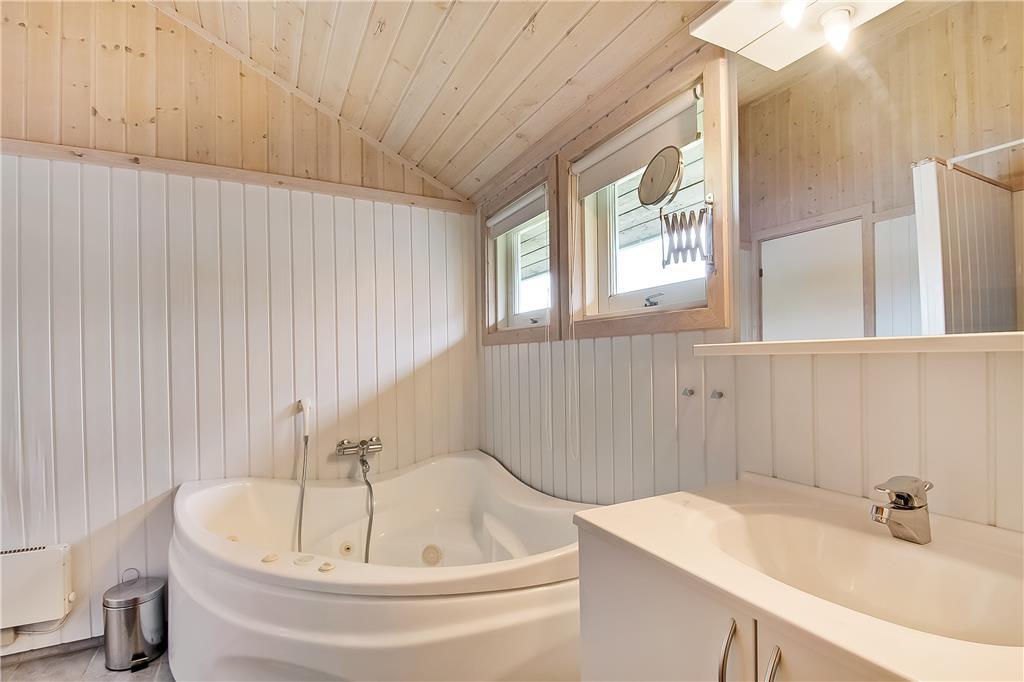 Das Ferienhaus bietet eine geräumige und helle Einrichtung, die eine entspannende Atmosphäre schafft. Hier ist Platz für die ganze Familie oder Gruppe im stilvoll eingerichteten Wohnzimmer mit großen Fenstern, die das Tageslicht hereinlassen und einen wunderbaren Blick auf das naturschöne Grundstück und die Umgebung bieten. Die moderne Küche ist offen mit dem Wohnzimmer und dem Essbereich verbunden, sodass es einfach ist, zusammen zu kochen und gemütliche Mahlzeiten zu genießen. Die fünf Schlafzimmer sind praktisch aufgeteilt, sodass alle ausreichend Platz haben, und die zwei Badezimmer sorgen dafür, dass es morgens keine Engpässe gibt. Als besonderes Highlight kannst du dich im Wellness-Bereich des Hauses mit Innen-Whirlpool und Sauna verwöhnen – perfekt nach einem langen Tag an der frischen Meeresluft.