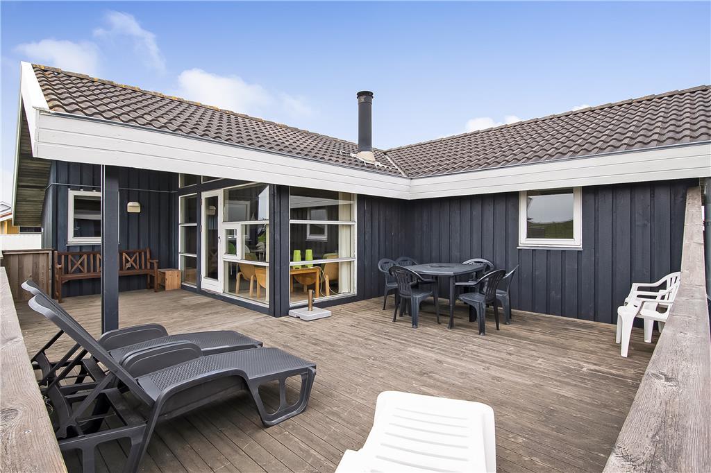Die große Terrasse gibt dir die Möglichkeit, das Leben im Freien mit Aktivitäten wie Sonnenbaden, Entspannen mit einem guten Buch oder lustigen Spielen mit der Familie zu genießen. Hier kannst du den Tag mit einer Tasse Kaffee in der Morgensonne beginnen oder einen Grillabend unter freiem Himmel verbringen. Die Terrasse ist von einem gepflegten Grundstück umgeben, das sowohl zum Entspannen als auch zum Spielen und Ballspielen einlädt. Obwohl das Haus in ruhiger Umgebung liegt, ist es nur ein kurzer Spaziergang zum Strand, wo du im Meer baden oder entlang der Küste spazieren und den Sonnenuntergang genießen kannst. Dieses Ferienhaus bietet die perfekten Rahmenbedingungen für Entspannung und Gemeinsamkeit in einer naturschönen Umgebung.