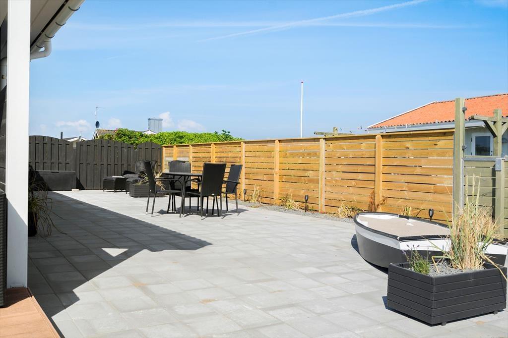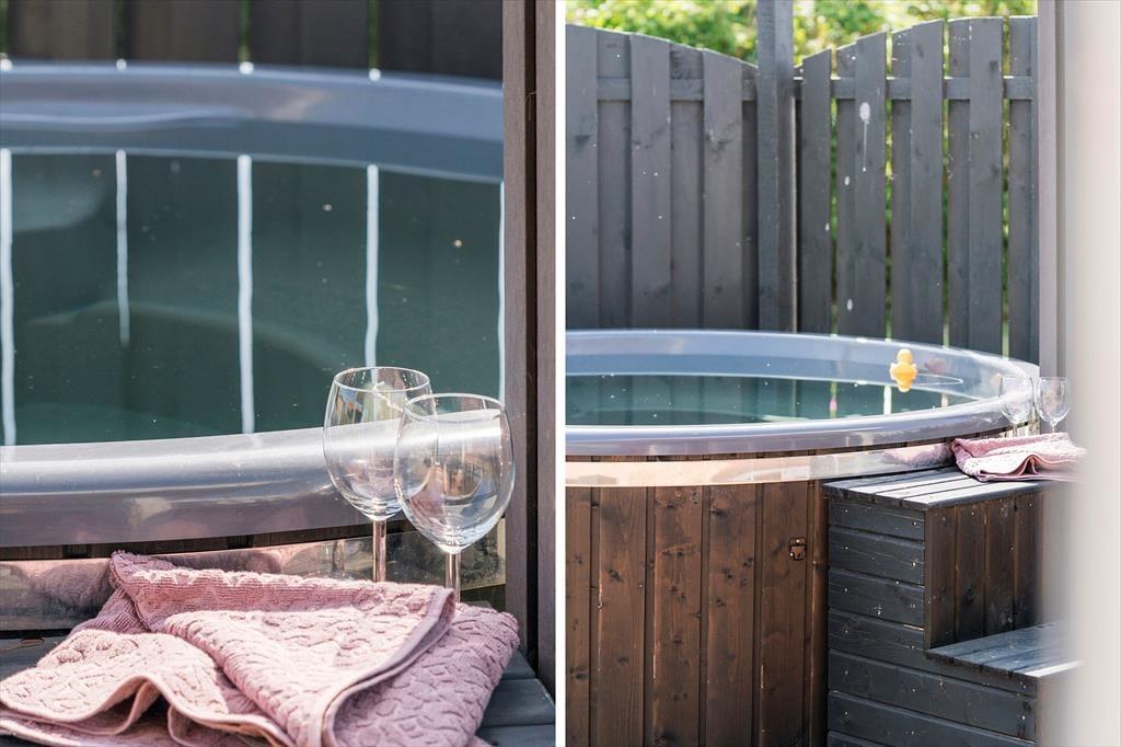 Das Ferienhaus liegt auf einem eingezäunten Grundstück, das viel Platz für Spiel und Entspannung bietet. Die große Terrasse ist mit Gartenmöbeln, Liegestühlen und einem Grill ausgestattet, sodass du Mahlzeiten unter freiem Himmel genießen kannst. Die Kinder können sich in der Sandkiste oder auf der Schaukel vergnügen, während du im luxuriösen Wildnisbad entspannst, das in einer Ecke der Terrasse installiert ist. Hier kannst du den Stress des Alltags hinter dir lassen, während du das warme Wasser und die frische Luft genießt.