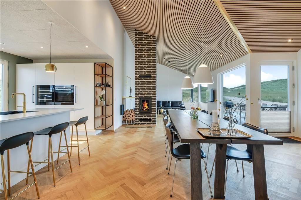 Hinter der klassischen Fassade verbirgt sich ein stilvolles und modernes Interieur, das dich sofort willkommen heißt. Das Haus bietet einen hellen, offenen Wohnbereich, in dem Wohnzimmer und Küche harmonisch ineinander übergehen. Hohe Decken, hochwertige Materialien und viel Platz laden ein zum Entspannen und Zusammensein. Schrägwände und große Fensterfronten verleihen dem Raum Charakter und lassen viel Tageslicht hinein. Egal ob beim Frühstück oder am Abend vor dem Fernseher – der Blick fällt immer wieder auf die Dünenlandschaft draußen. Nach einem langen Strandtag kannst du im Whirlpool drinnen die Seele baumeln lassen oder die wohltuende Wärme der Sauna genießen. Für Kinder – und alle Junggebliebenen – ist die gemütliche Hems ein idealer Rückzugsort zum Spielen oder Lesen.