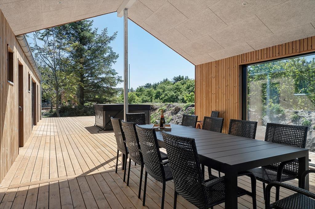 Das Ferienhaus wird von hohen Bäumen umgeben, die eine private und ruhige Kulisse für das Leben im Freien schaffen. Die große Terrasse, die Teil des Hauses wird, lädt dazu ein, die Sonne zu genießen oder im Schatten zu entspannen. Mit Grillmöglichkeiten und viel Platz wird es leicht sein, gemütliche Momente unter freiem Himmel zu verbringen, während Kinder und Hunde spielen können.