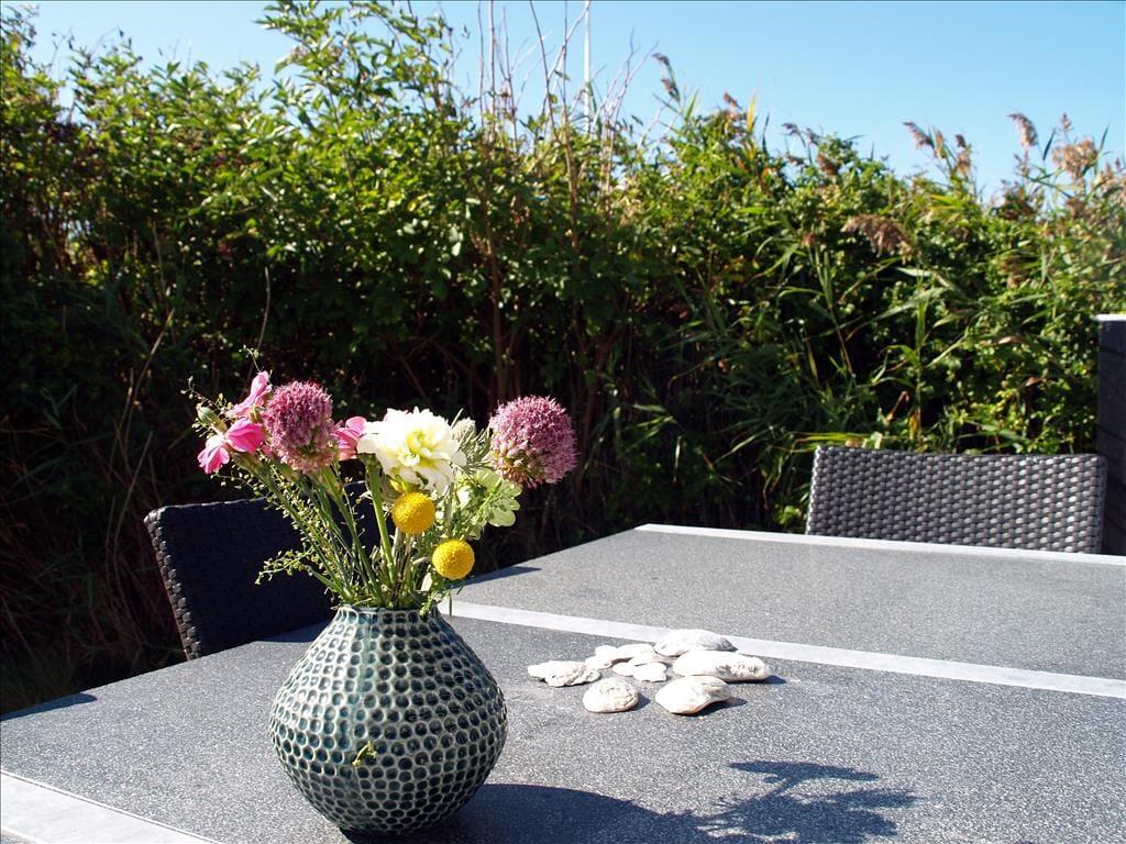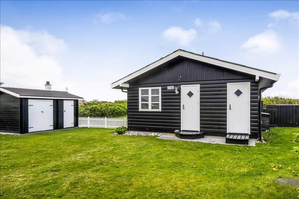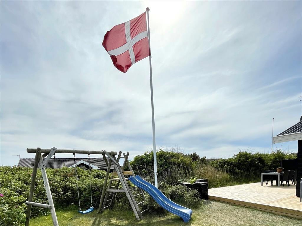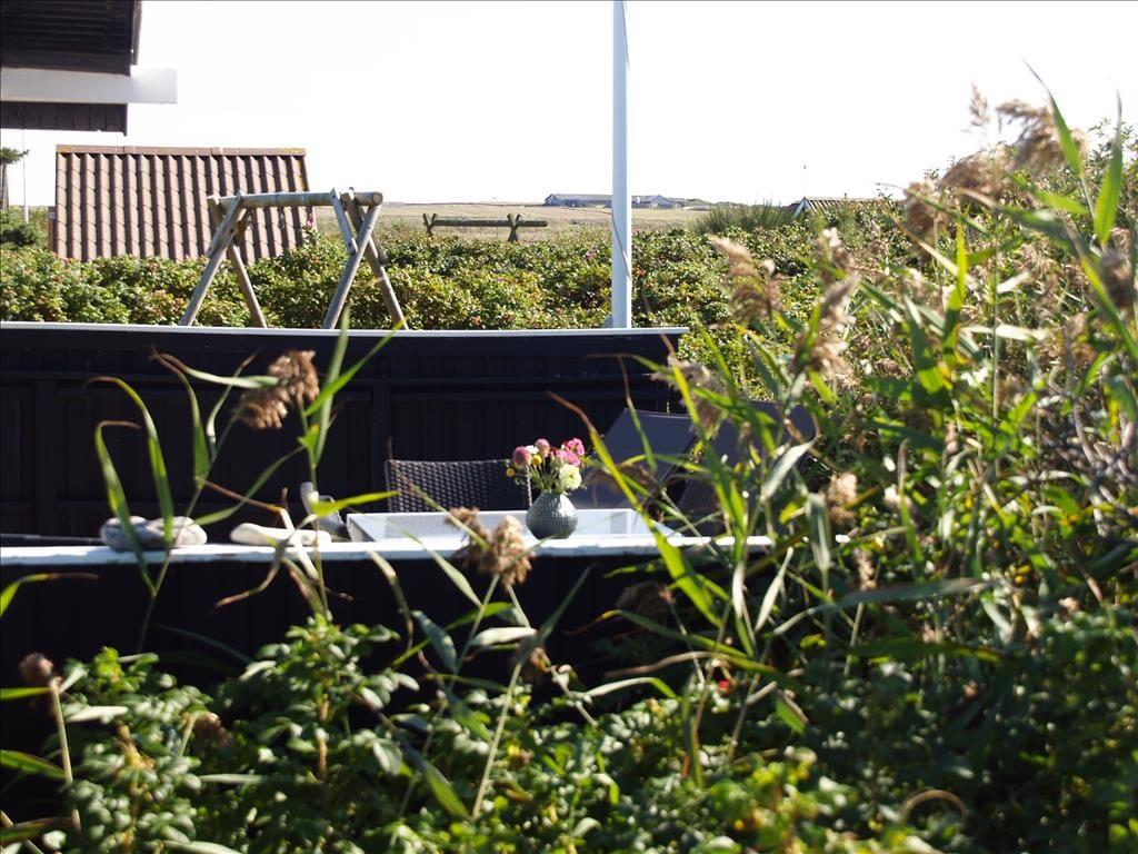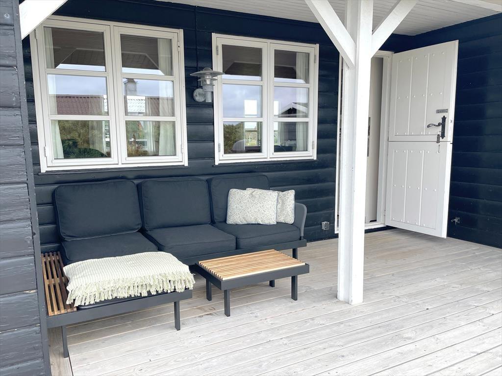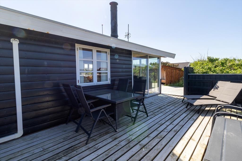 Scheint die Sommersonne über Vejlby Klit, ist es wunderbar, das Ferienleben auf der großen Holzterrasse zu genießen, die sich über drei Seiten des Hauses erstreckt. Selbst bei weniger gutem Wetter kannst du draußen sitzen, denn die kleine Überdachung bietet Schutz vor leichtem Regen oder Abendtau. Auf der Terrasse stehen Gartenmöbel, Liegestühle und ein Grill zur Verfügung – ideal für gesellige Grillabende. Für kleine Kinder gibt es Schaukeln und eine grüne Rasenfläche zum Spielen.