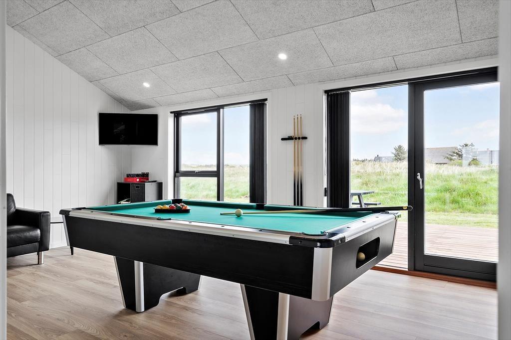 Dieses moderne Ferienhaus auf Strandvejen 158 C in Vejlby Klit bietet ein luxuriöses Urlaubserlebnis mit Annehmlichkeiten wie Sauna, Außenwhirlpool und einem Aktivitätsraum mit Pooltisch. Nur 650 Meter von den Wellen der Nordsee entfernt, ist es perfekt für alle, die Entspannung und Spaß in Strandnähe suchen.