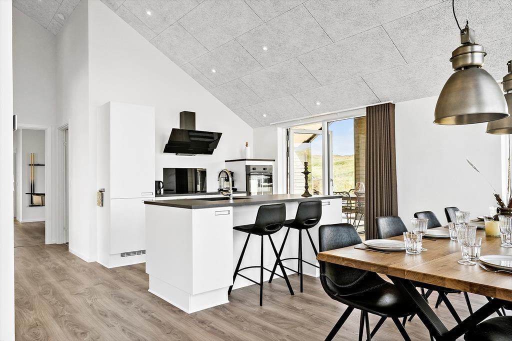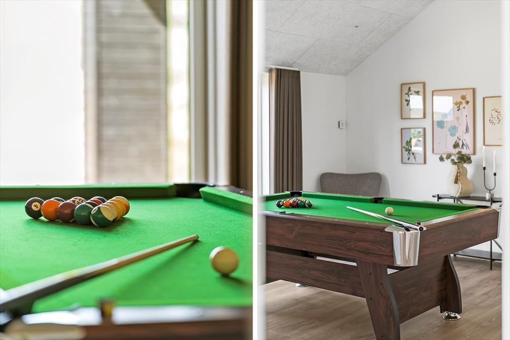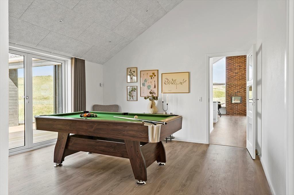 Wenn du das Ferienhaus in der Lucievej 12B betrittst, empfängt dich ein modernes und stilvolles Interieur, das zu Gemütlichkeit und gemeinsamen Stunden einlädt. Der helle Wohnbereich vereint Küche und Wohnzimmer zu einem großen, offenen Raum, in dem das sanfte Flackern des Bio-Kamins die perfekte Stimmung für entspannte Abende schafft. Nach einem Tag an der frischen Luft kannst du dich auf wohltuende Entspannung in der hauseigenen Sauna freuen, während die Kinder im Aktivitätsraum eine Partie Billard spielen. Der durchdachte Grundriss macht es leicht, gemeinsam Zeit zu verbringen – beim Kochen, Spielen oder gemütlich auf dem Sofa.