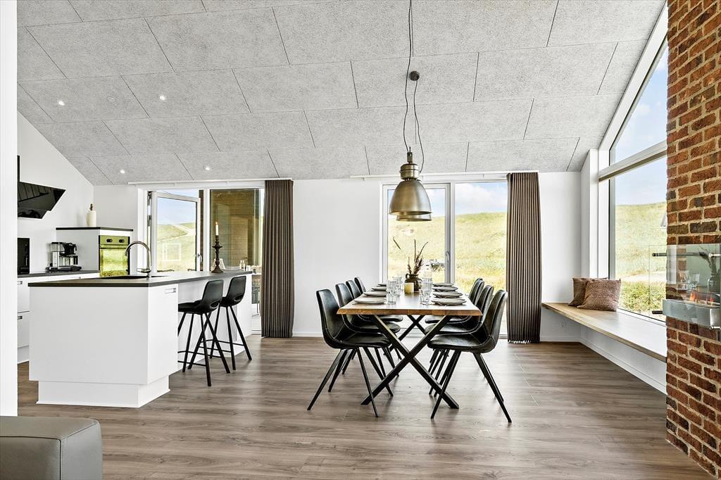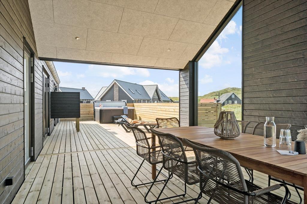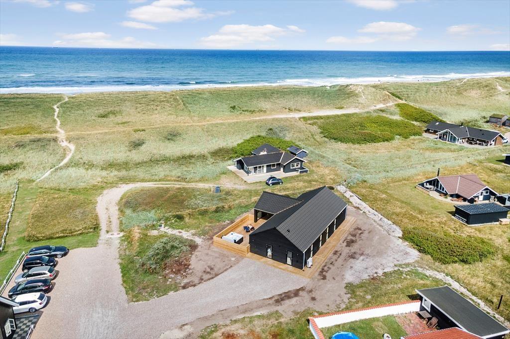 Wenn du von einem Ferienhaus träumst, in dem moderner Komfort und herrliche Naturerlebnisse miteinander verschmelzen, ist Lucievej 12B in Vejlby Klit Strand eine ausgezeichnete Wahl. Hier kannst du luxuriöse Annehmlichkeiten wie Bio-Kamin, Sauna, einen Aktivitätsraum mit Billardtisch sowie einen fantastischen Außenbereich mit Whirlpool und Außendusche genießen. Das Ferienhaus liegt ruhig in der wunderschönen Dünenlandschaft, sodass du die Seele baumeln lassen kannst – mit freiem Blick auf die sanften Dünen direkt von der Terrasse aus.