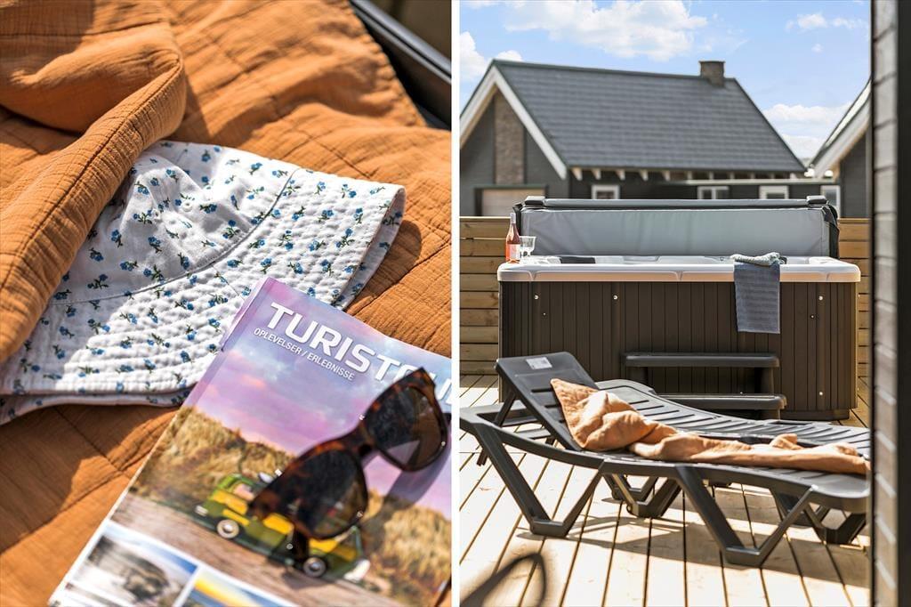 Das Ferienhaus bietet dir ganze 120 m² Terrassenfläche, wobei sowohl sonnige als auch überdachte Bereiche zur Verfügung stehen – so findest du jederzeit den passenden Platz für Wetter und Stimmung. Genieße den Morgenkaffee in aller Ruhe unter freiem Himmel und bereite abends das Abendessen auf dem Grill zu – mit Blick auf die goldenen Farben der Dünen im Abendlicht. Nach einem Strandtag oder einer Erkundungstour kannst du dich im Außen-Whirlpool verwöhnen lassen – oder du gönnst dir eine erfrischende Außendusche unter freiem Himmel. Die wunderschöne Natur rund ums Haus bildet die perfekte Kulisse für Entspannung, Spiel und gemütliche Stunden im Freien.