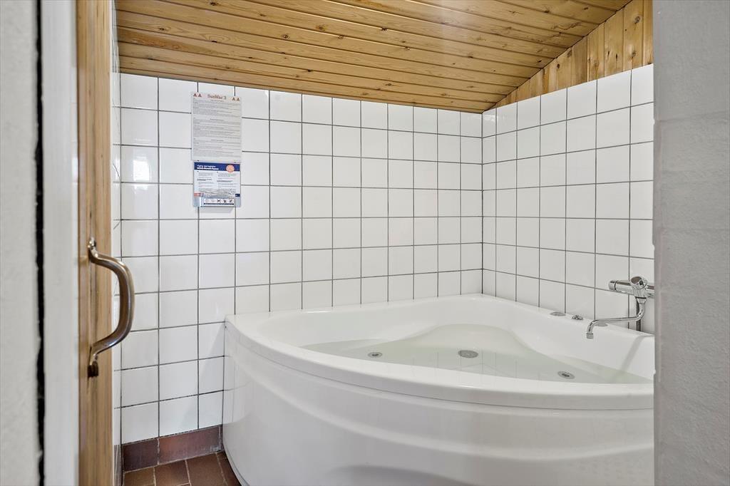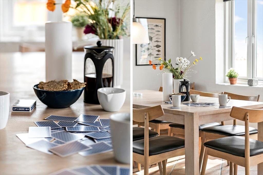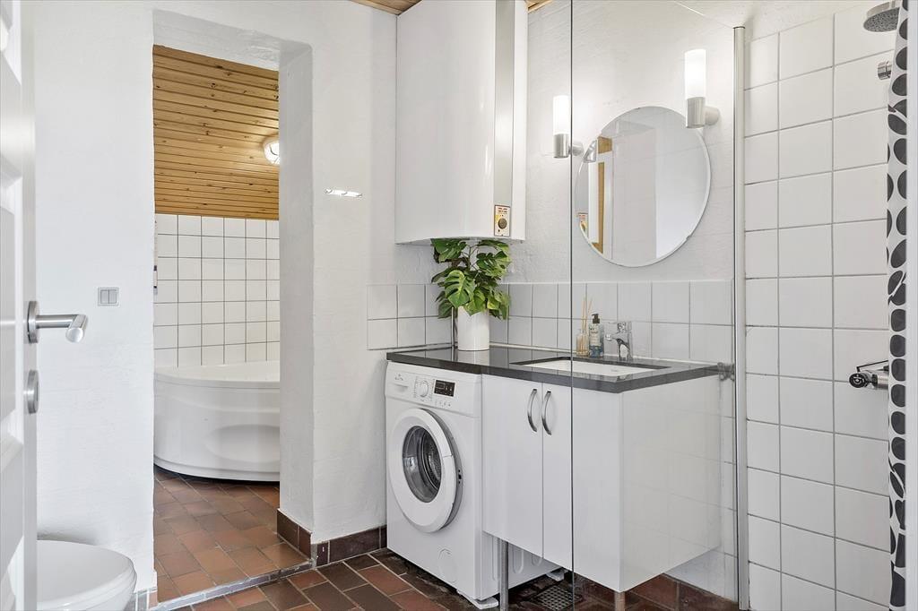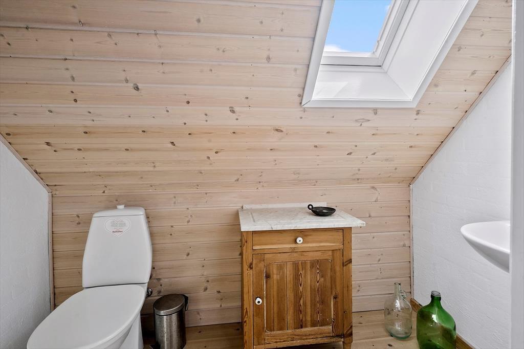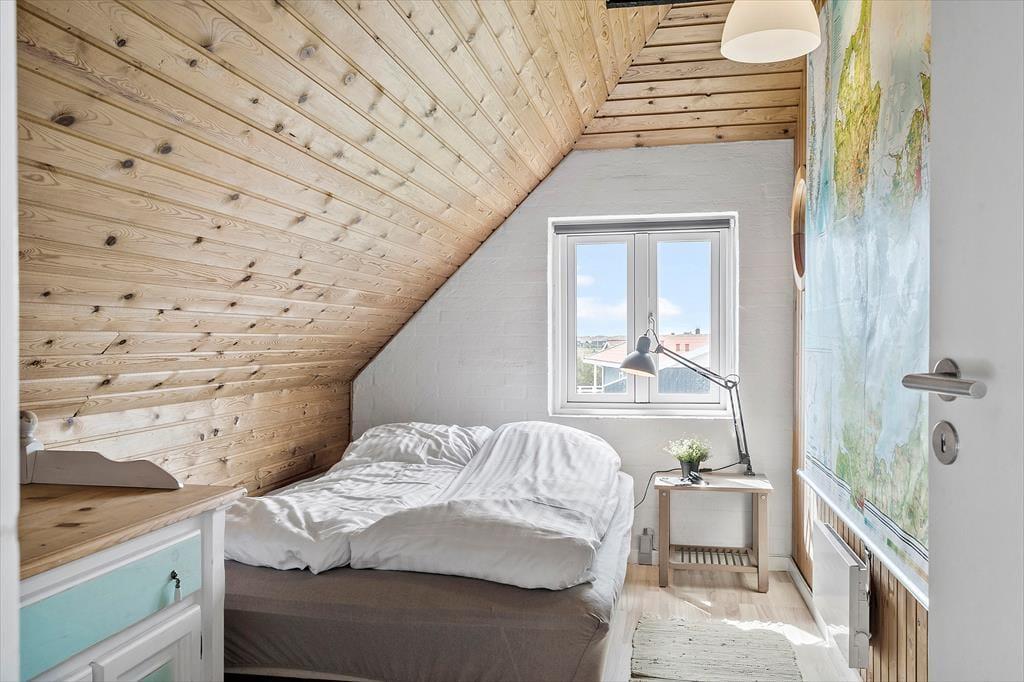 Der Whirlpool und die Sauna sind nur zwei der Annehmlichkeiten, die deinen Urlaub in diesem 138 m² großen Ferienhaus besonders erholsam machen. Dank des im ersten Stock platzierten Gäste-WCs genießt du deine entspannten Wellnessstunden im Badezimmer ohne unangenehme Störungen. Die Wohnfläche ist optimal auf eine Belegung mit zehn Personen ausgerichtet. Neben fünf Schlafräumen steht ein schöner Aufenthaltsraum mit einer Polstersitzgruppe, einem Kaminofen und einem Esstisch zur Verfügung. In der offenen, zweiseitigen Küche wird die gemeinsame Zubereitung der Mahlzeiten zum geselligen Vergnügen. Besondere Erwähnung bedarf das Obergeschoss, da du hier gen Süden mit einem reizvollen Blick über offene Felder und über den See von Ferring bis zum Leuchtturm Bovbjerg Fyr verwöhnt wirst.