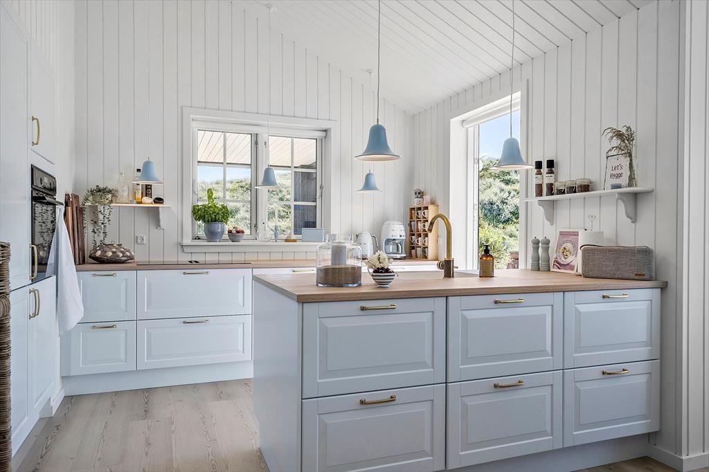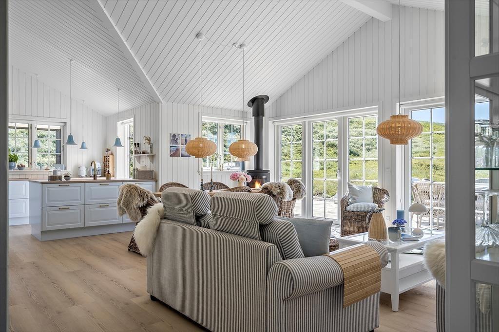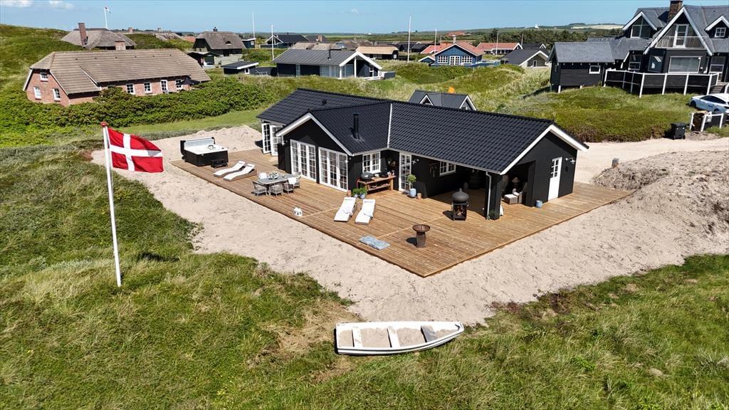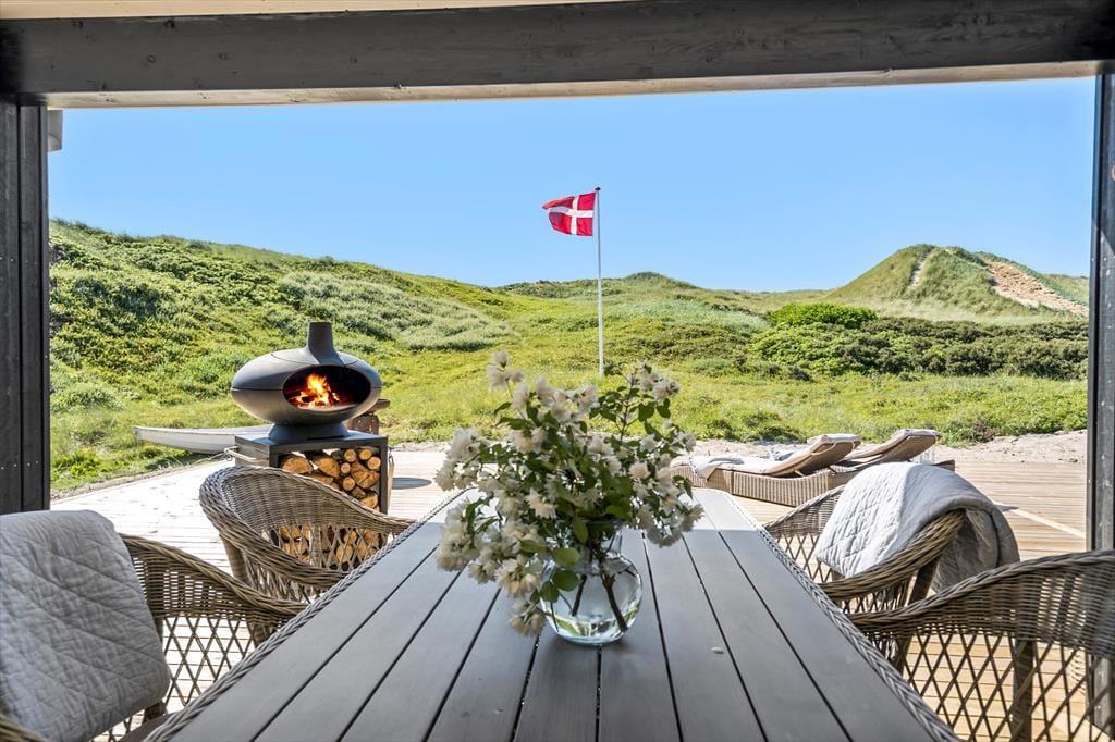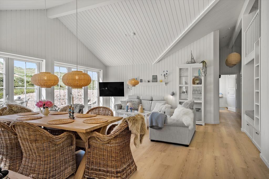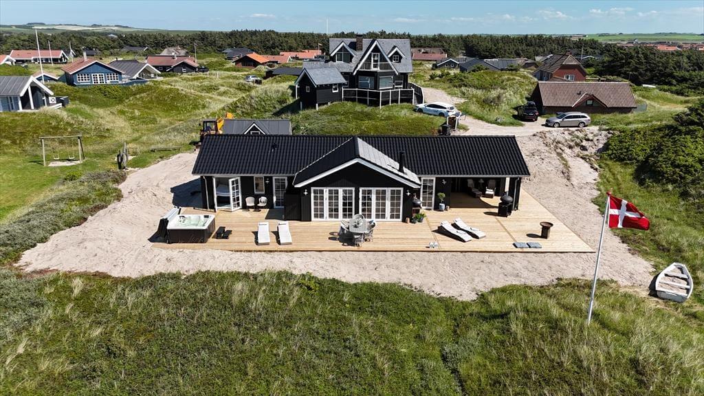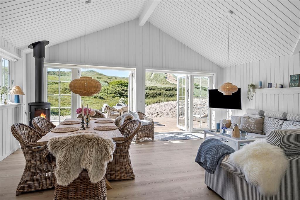 Unabhängig von der Jahreszeit ist es ein großes Erlebnis, die Tage in der stilvollen Umgebung des Hauses zu verbringen und den direkten Blick auf die Dünen zu genießen. Im ganzen Haus gibt es Fußbodenheizung, und wenn es draußen kühl ist, wird der Komfort und die Gemütlichkeit durch den Kamin im Wohnzimmer und die Sauna, die sich im Anschluss an das eine Badezimmer befindet, erhöht. Eine gut ausgestattete Küche ist in das Wohnzimmer integriert, und du und deine Lieben könnt den hellen Raum mit Spielen, Kochen, Brettspielen, Lachen und guten Gesprächen füllen, vom frühen Morgen bis in die Nacht, wenn draußen die Sterne leuchten. Und wenn es Schlafenszeit ist, könnt ihr euch auf einen erholsamen und langen Schlaf in den vier schönen Schlafzimmern des Hauses freuen.