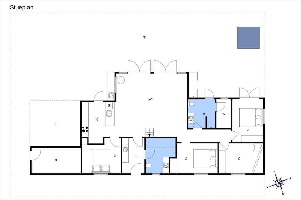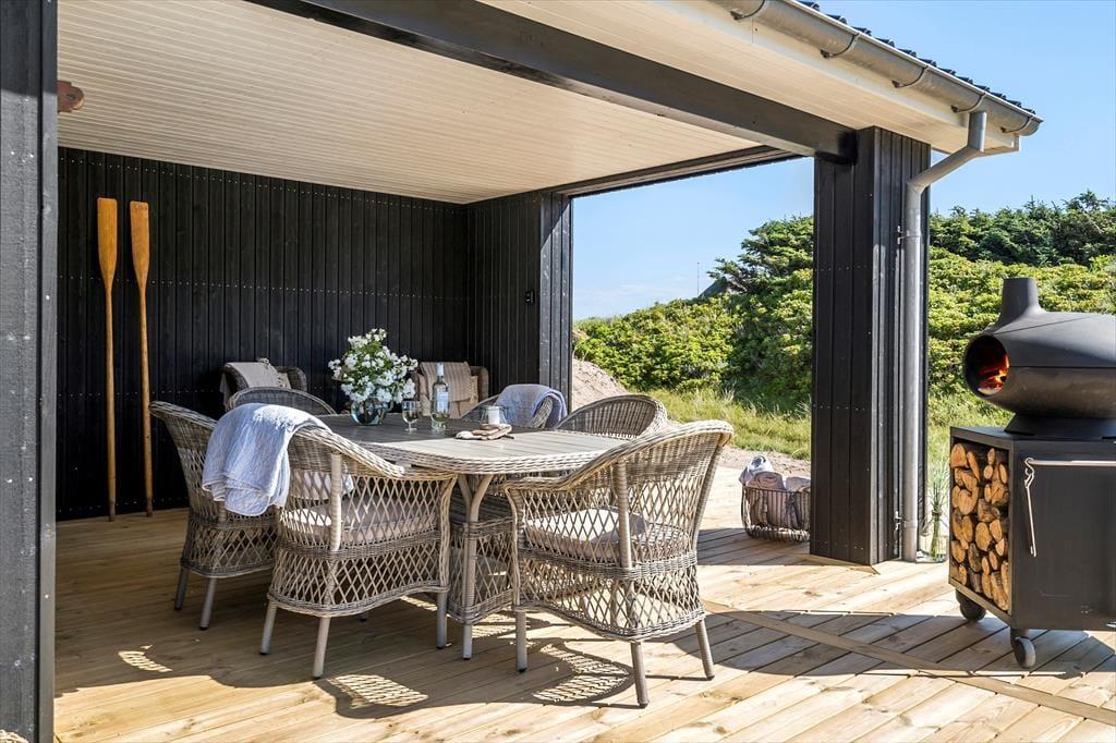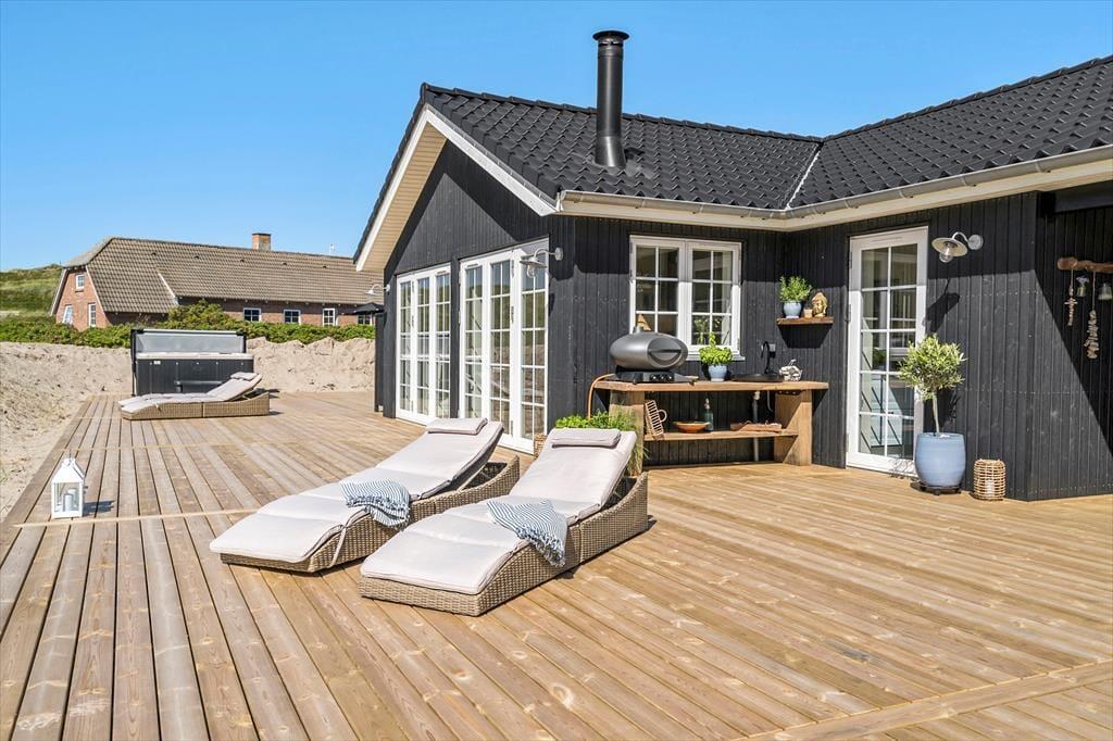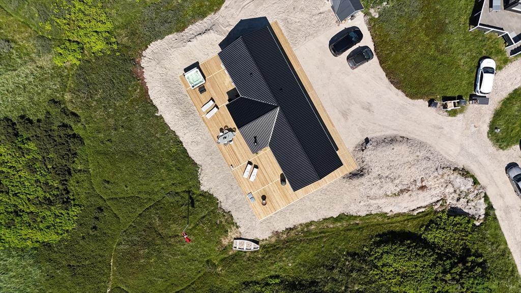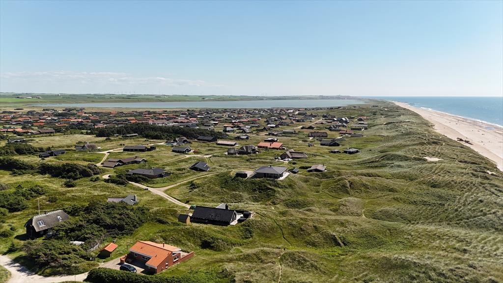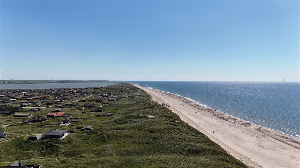 Die Lage kann als besonders attraktiv bezeichnet werden, denn das Haus liegt ruhig am Ende der geschlossenen Værmlandvej und nur einen kurzen Spaziergang von der Nordsee entfernt. Von der Terrasse führt ein Pfad durch die Dünen zum weißen Sandstrand und den tosenden Wellen, und da es nur etwas mehr als 50 Meter zu gehen sind, kannst du mehrmals täglich zum Baden, Sandburgenbauen mit den Kindern oder einfach nur zum ruhigen Sitzen in der grandiosen Landschaft hinuntergehen. Vom Ferienhaus aus hast du auch einfachen Zugang zum sommerlich geöffneten Kaufmann von Vejlby Klit und zu den Spielplätzen der Gegend. Und wenn du Minigolf spielen, im nächsten Put & Take-See angeln oder mit der Regionalbahn nach Thyborøn fahren möchtest, sind das naheliegende Ferienaktivitäten.