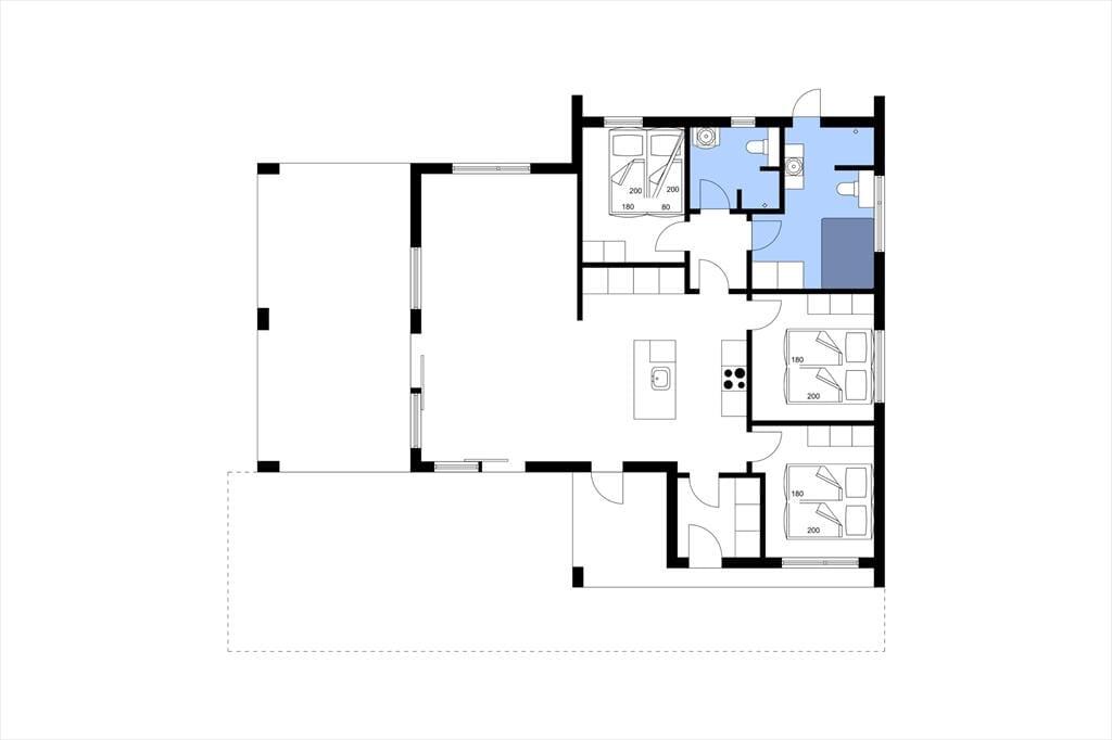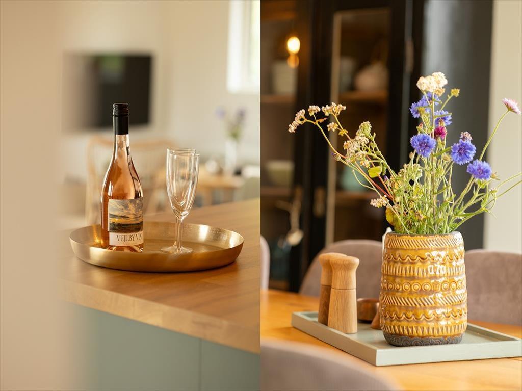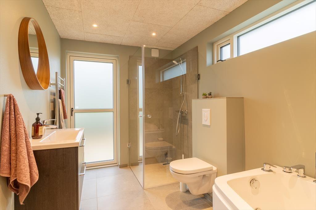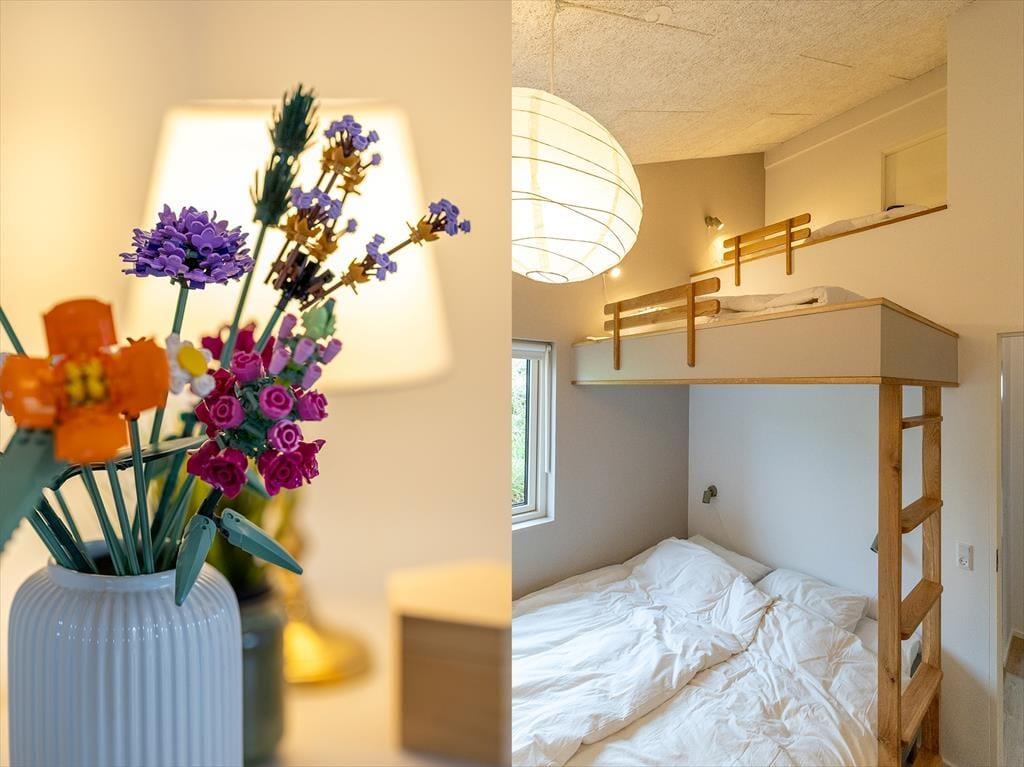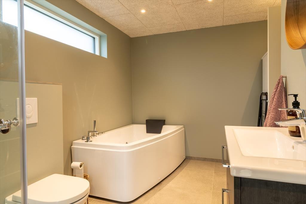 Das Ferienhaus wurde 2024 mit hochwertigen Materialien erbaut. Die hellen Räume sind mit modernem und stilvollem Interieur ausgestattet. Eine gut sortierte Küche ist in das Wohnzimmer integriert und somit der perfekte Ort, um gemeinsam zu kochen, die Mahlzeiten zu genießen und gemütliche Stunden zu verbringen. Vergnügt euch rund um den Esstisch mit Brett- oder Ratespielen und Kreuzworträtseln, wenn euch danach ist – oder vertieft euch in gute Bücher, Strickprojekte und spannende Filme, die ihr vom Sofa-Bereich aus anschauen könnt. Wenn du dich komplett entspannen möchtest, gönn dir ein warmes Bad im Whirlpool in einem der beiden Badezimmer. Es gibt drei Schlafzimmer, eines davon mit zwei Etagenbetten über dem Doppelbett, sodass es als gemütliches Zimmer für eine Familie oder mehrere Kinder, die von einer Pyjamaparty träumen, genutzt werden kann. Alles in allem ist die Raumaufteilung perfekt für acht Personen ausgelegt.