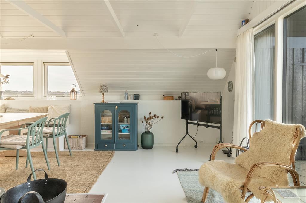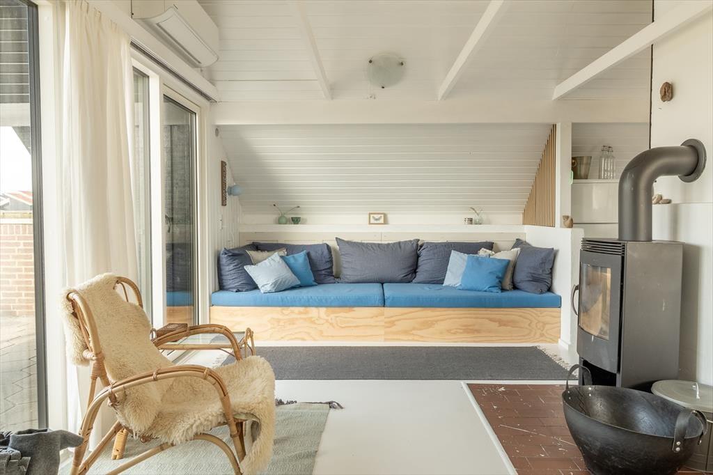 Tritt ein in ein Ferienhaus, das voller Charme und Gemütlichkeit steckt. Die Einrichtung ist einfach und einladend, mit Fokus darauf, eine entspannte Atmosphäre zu schaffen, in der du wertvolle Zeit mit deinen Liebsten genießen kannst. Das Herz des Hauses ist das gemütliche Wohnzimmer, das offen mit der Küche verbunden ist – ein idealer Ort, um sich bei einer Tasse Kaffee oder einem Kartenspiel nach einem erlebnisreichen Tag zusammenzufinden. Der Hems oben bietet eine kleine Oase mit Blick auf das Wohnzimmer, wo Kinder ihren eigenen Platz zum Spielen und Entspannen finden können.
