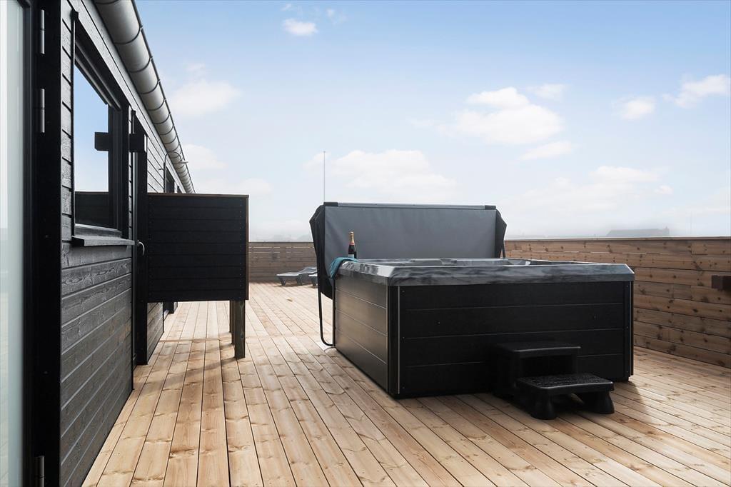 Modernes Ferienhaus in Vejlby Klit mit großer Terrasse, Aktivitätsraum und Outdoor-Spa nahe der Nordsee.