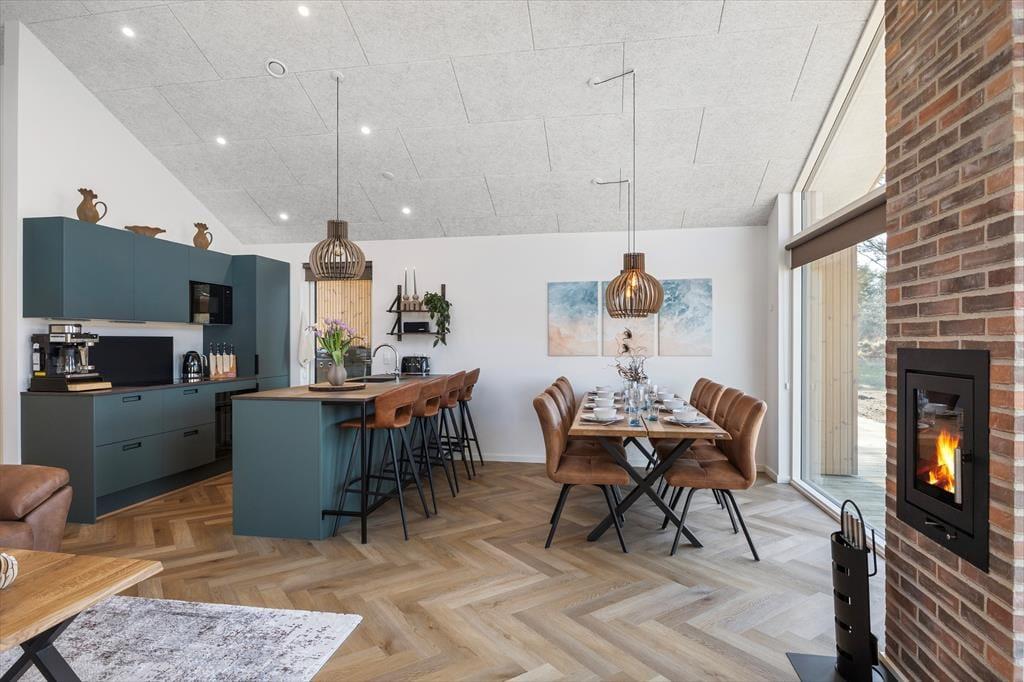 Ferienhaus in Vejlby Klit Strand, Westjütland, mit Platz für 8 Erwachsene und 2 Haustier(e). Es erwartet Sie eine gemütliche Einrichtung mit u.a. Kamin, darüber hinaus sind Waschmaschine, Spülmaschine und Wäschetrockner in dieser Unterkunft vorhanden.