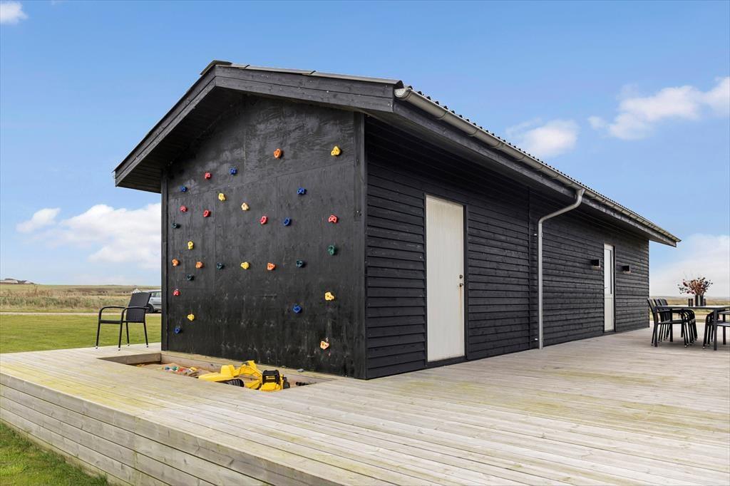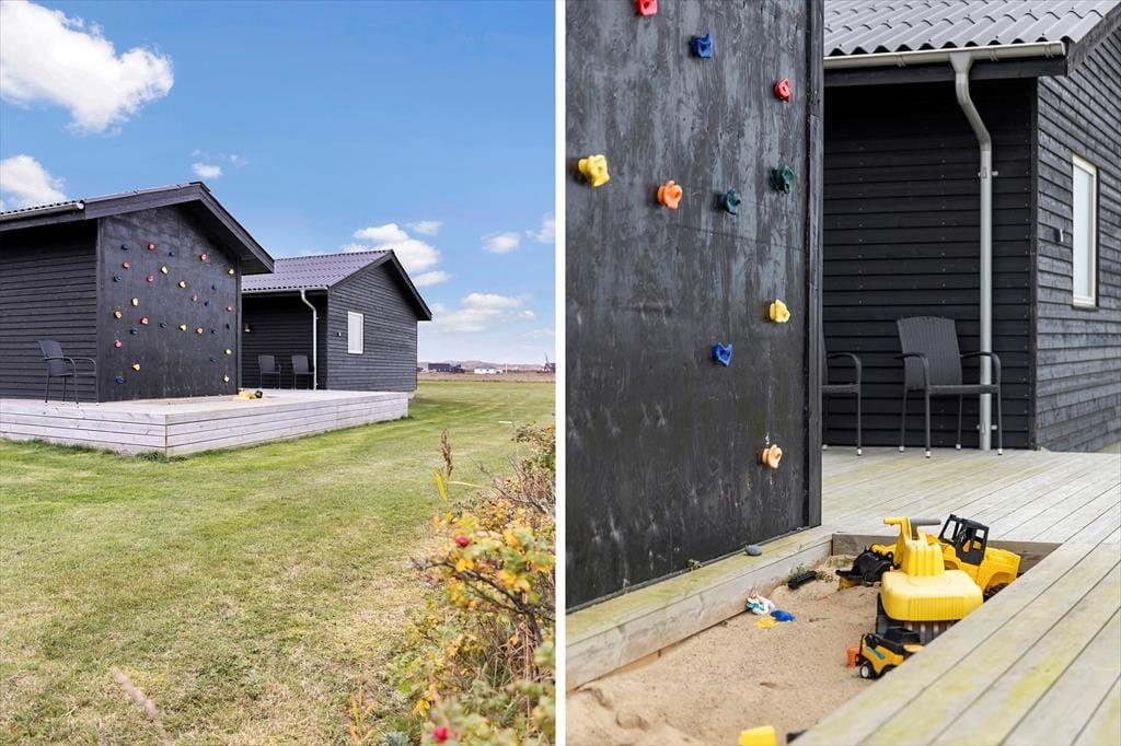 Das Terrassenumfeld rund um das Haus lädt zum Leben im Freien in all seinen Facetten ein. Beginne den Tag mit einer erfrischenden Außendusche in der Morgensonne, genieße den Nachmittag im warmen Außenwhirlpool – oder gönne dir am Abend noch ein Bad, wenn der Himmel dunkel wird und die Sterne über dir funkeln. Die Kinder werden es lieben, im Sandkasten zu spielen oder die Kletterwand zu erklimmen, während die Erwachsenen auf der großen Holzterrasse mit Blick auf die wunderschöne Landschaft entspannen. Hier findest du sowohl Sonne als auch Windschutz – und egal, ob du deinen Kaffee oder ein Glas Wein genießen möchtest, du findest sicher deinen Lieblingsplatz. Wenn du mit einem Elektroauto anreist, ist auch daran gedacht – das Haus verfügt über eine CEE-Steckdose IEC-60309 (5-polig, 3-phasig mit 16A), sodass du dein Fahrzeug bequem während des Urlaubs laden kannst.