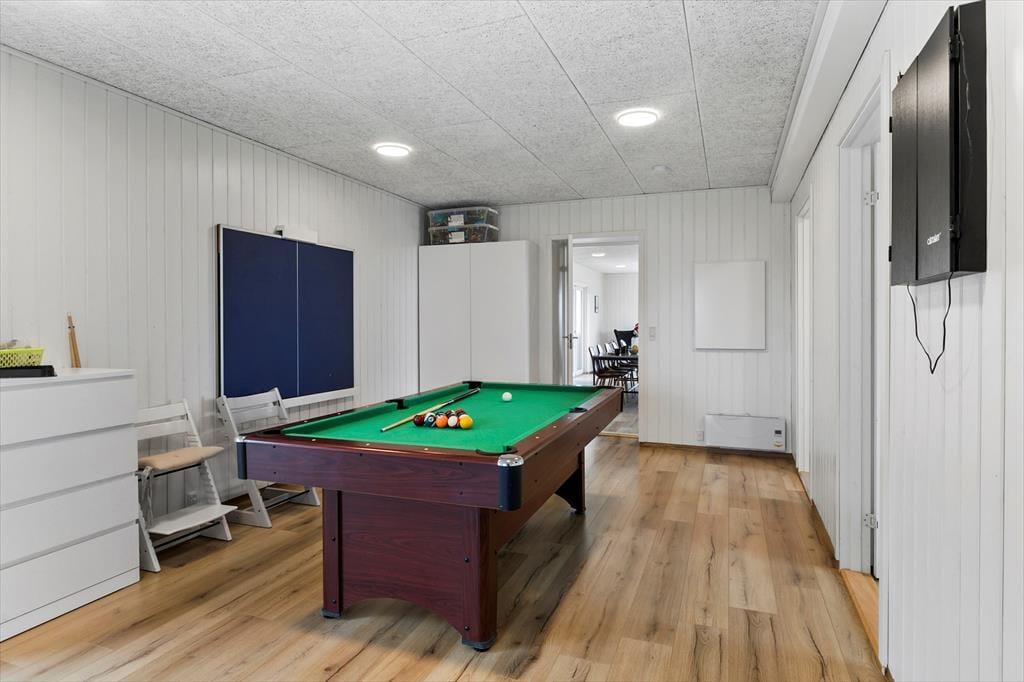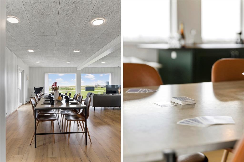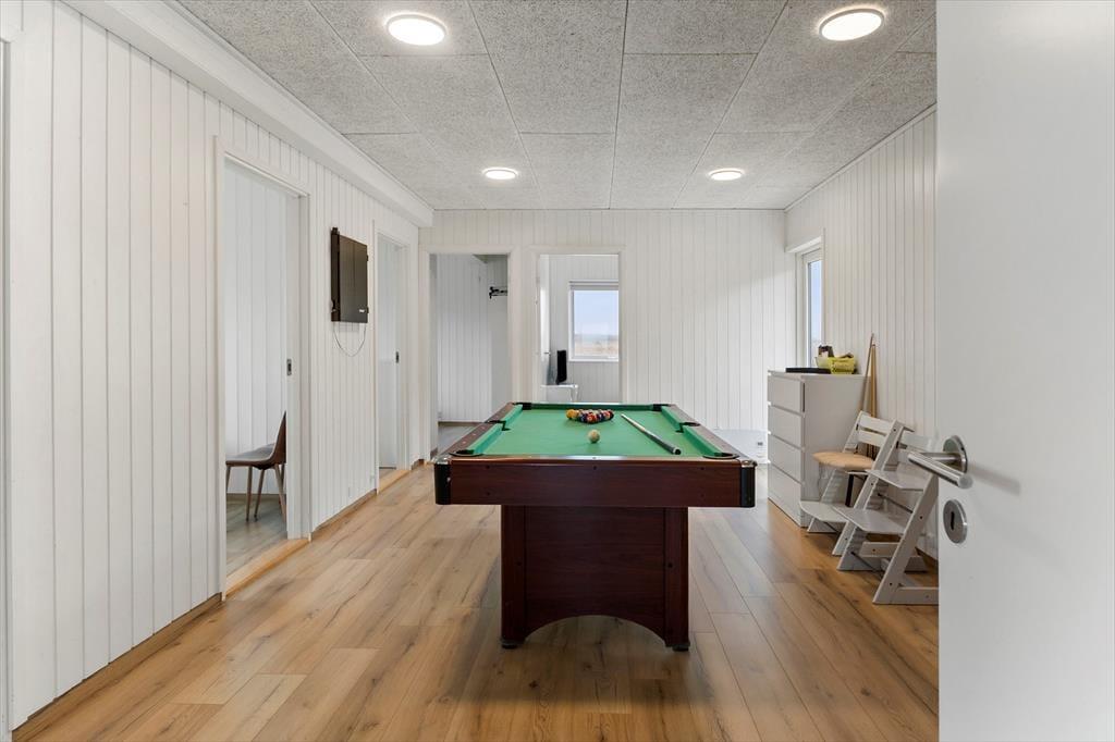 Schon beim Betreten des Hauses spürst du die einladende Atmosphäre und das durchdachte Raumkonzept, das dieses Haus ideal für Ferien mit vielen Gästen macht. Hier gibt es viel Platz zum Entspannen, und der Aktivitätsraum ist der natürliche Mittelpunkt für Spiel und gemeinsames Vergnügen – perfekt, um sofort in Urlaubsstimmung zu kommen. Liefere dir spannende Duelle im Billard, Tischtennis oder elektronischen Darts – oder gönne dir eine Pause mit einem guten Buch im gemütlichen Wohnbereich. Ganz gleich, ob du aktiv sein oder einfach nur entspannen möchtest – die Voraussetzungen sind perfekt. Ein besonderes Extra ist der Chip für VÆRKET in Thyborøn, der dir Zugang zu Schwimmhalle, Fitnesscenter und Sporthalle bietet – ideal für einen Regentag oder einen aktiven Urlaub. Im angrenzenden Annex befinden sich zwei weitere Schlafzimmer und ein Badezimmer, was das Haus perfekt für zwei Familien oder mehrere Generationen macht, die gemeinsam Urlaub machen möchten.