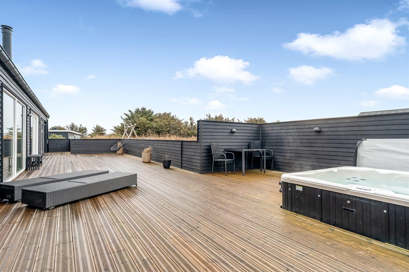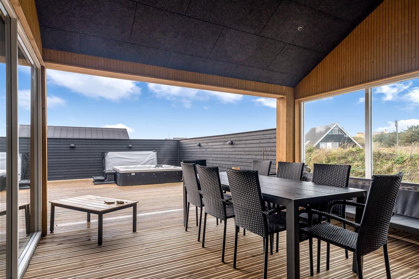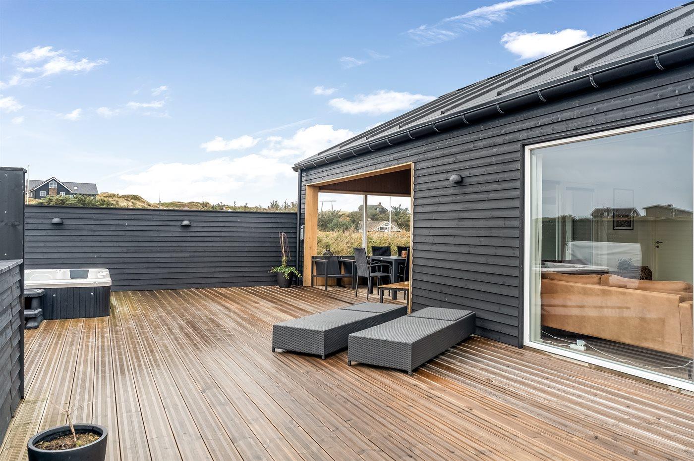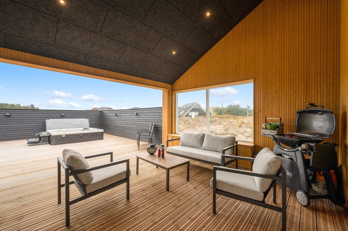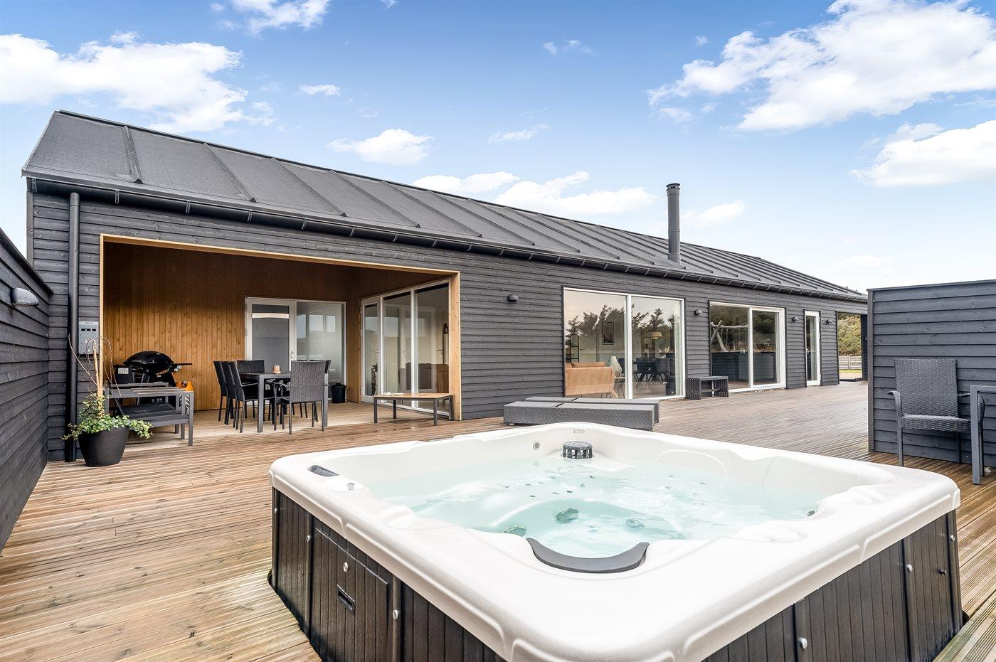 Dieses Ferienhaus ist ein modernes und funktionales Haus, in dem der Fokus auf Geräumigkeit und Ästhetik liegt. Durch die großen Fensterpartien kommt viel Licht ins Haus, und die überdachte Terrasse ist eine fantastische Oase, auch wenn man das Rauschen der Nordsee spüren kann. In diesem Haus hast du wahrscheinlich auch die größte Sauna von Vejlby Klit, und in Kombination mit dem schönen Außen-Whirlpool bietet das Haus auch viel Wellness.