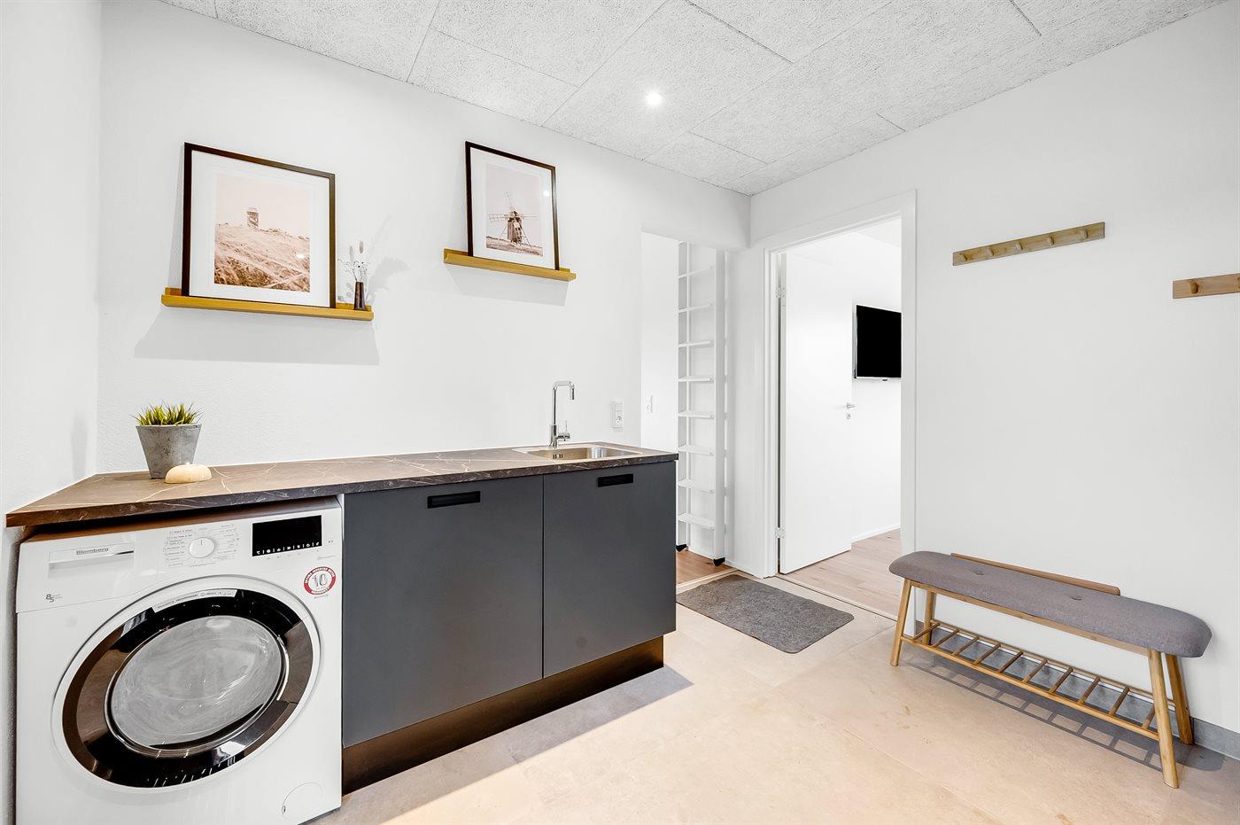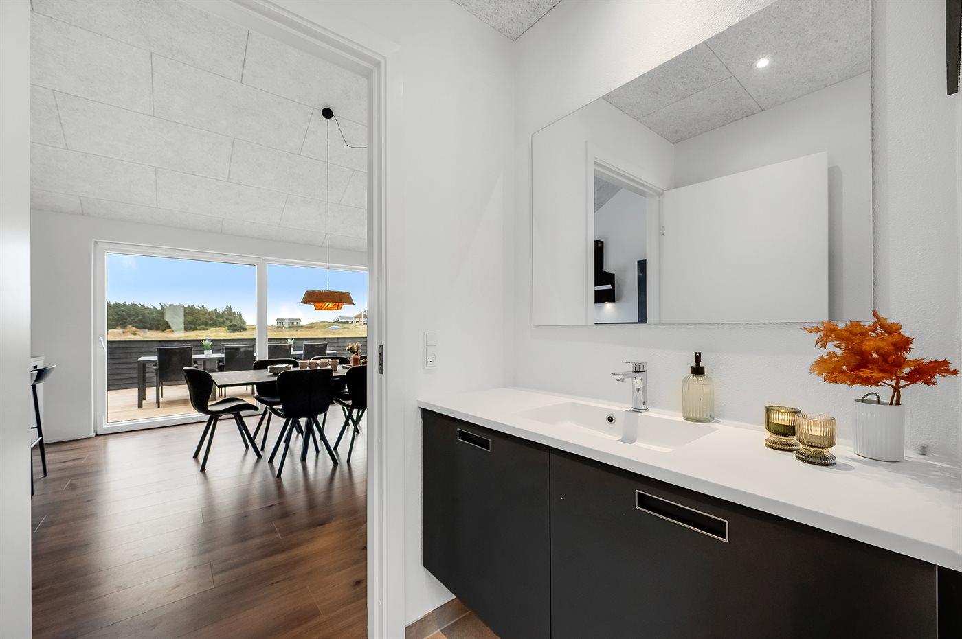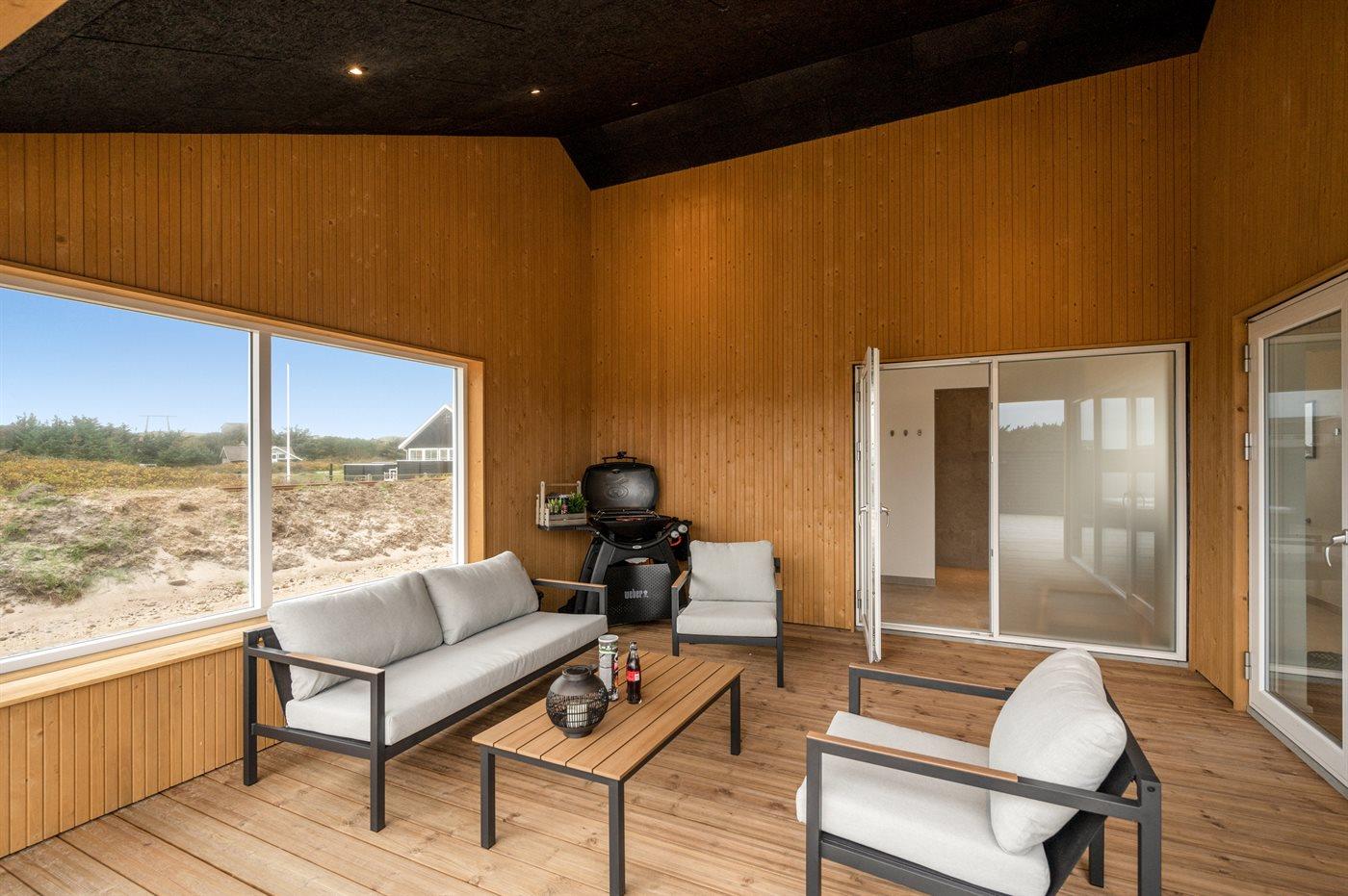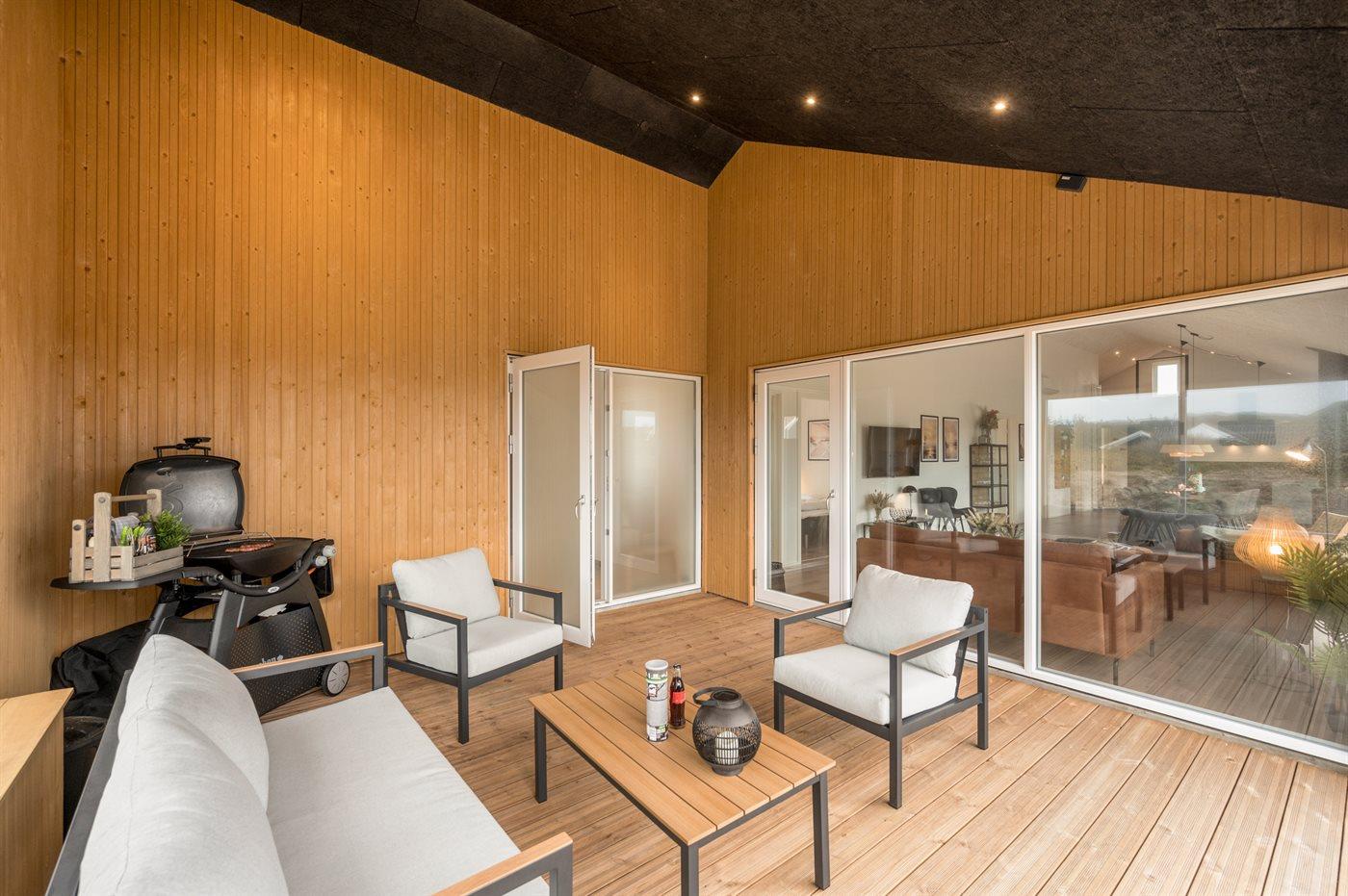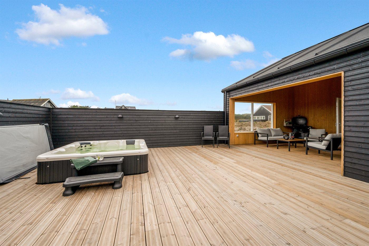 Dieses Ferienhaus ist ein modernes und funktionales Haus, in dem der Fokus auf Geräumigkeit und Ästhetik liegt. Durch die großen Fensterpartien kommt viel Licht ins Haus, und die überdachte Terrasse ist eine fantastische Oase, auch wenn man das Rauschen der Nordsee spüren kann. In diesem Haus hast du wahrscheinlich auch die größte Sauna von Vejlby Klit, und in Kombination mit dem schönen Außen-Whirlpool bietet das Haus auch viel Wellness.