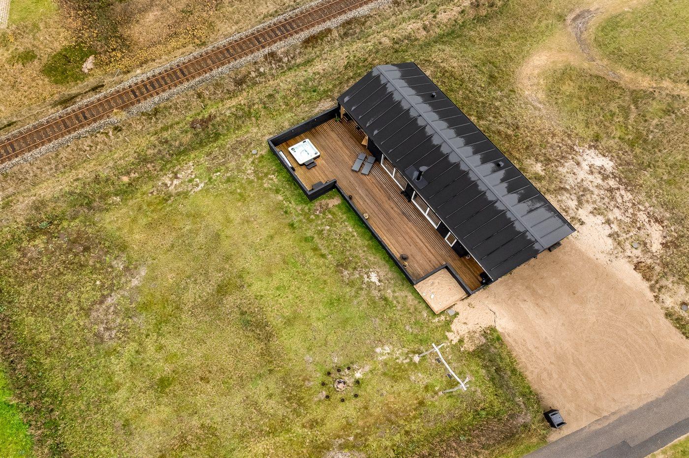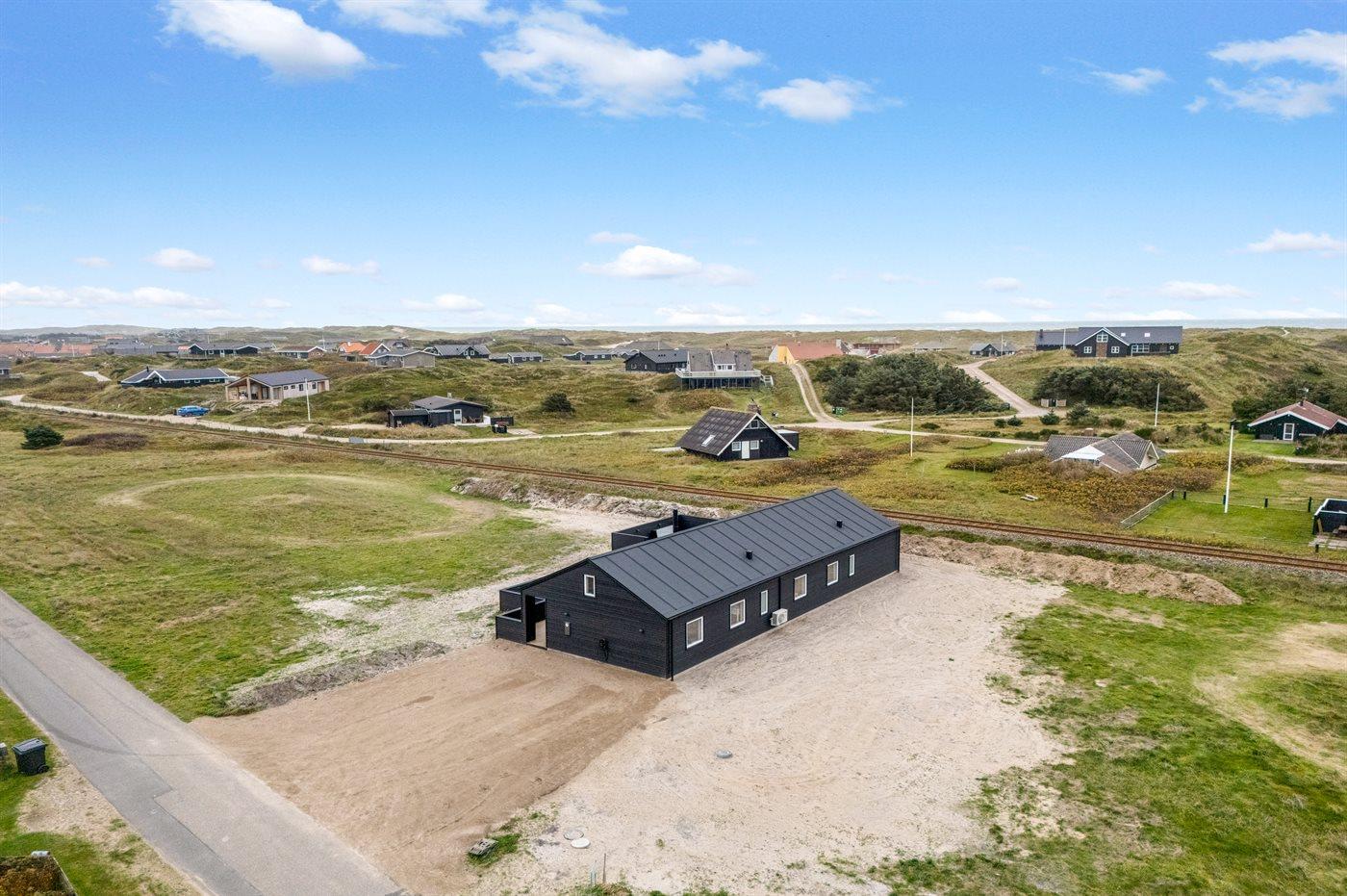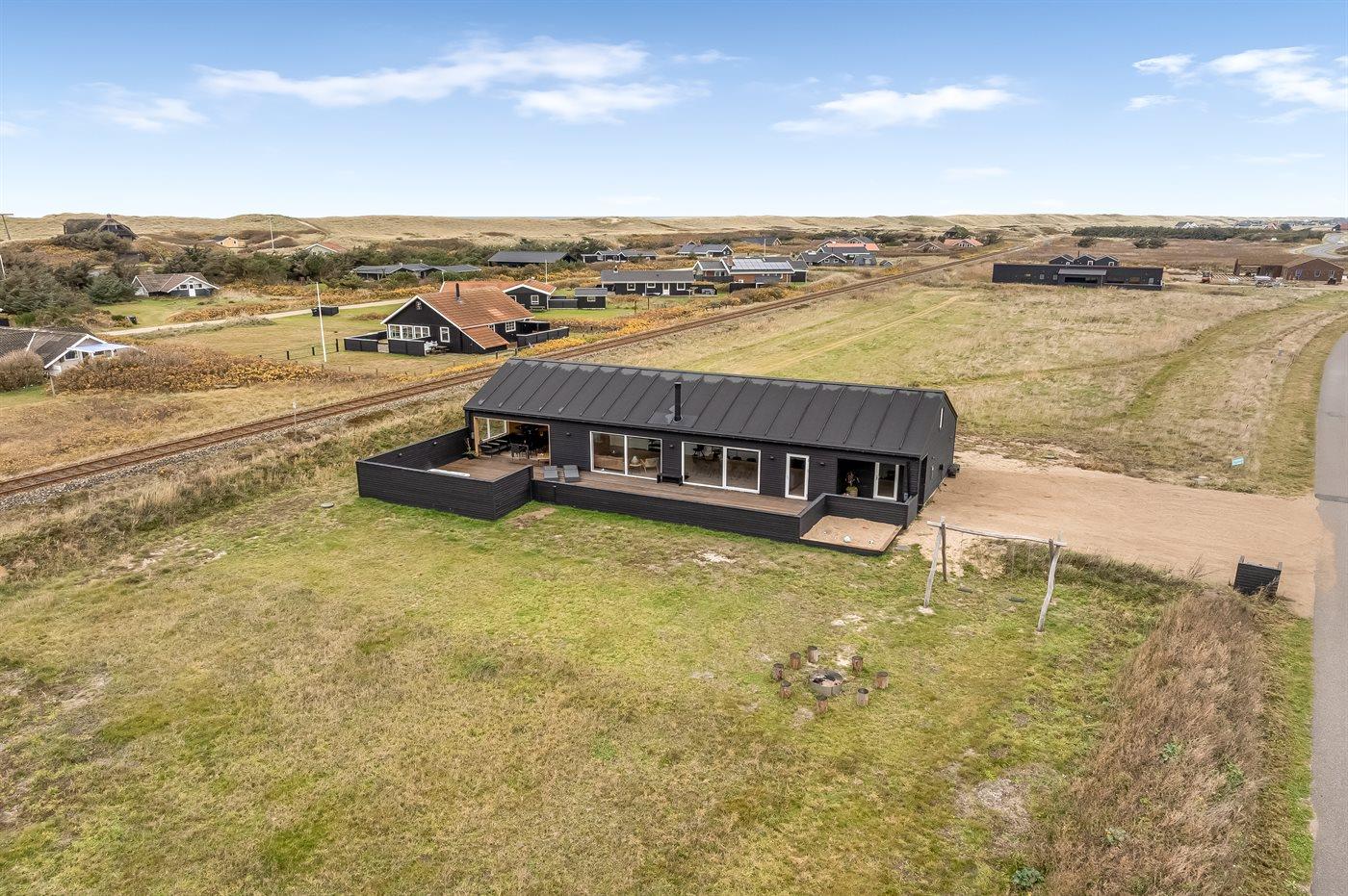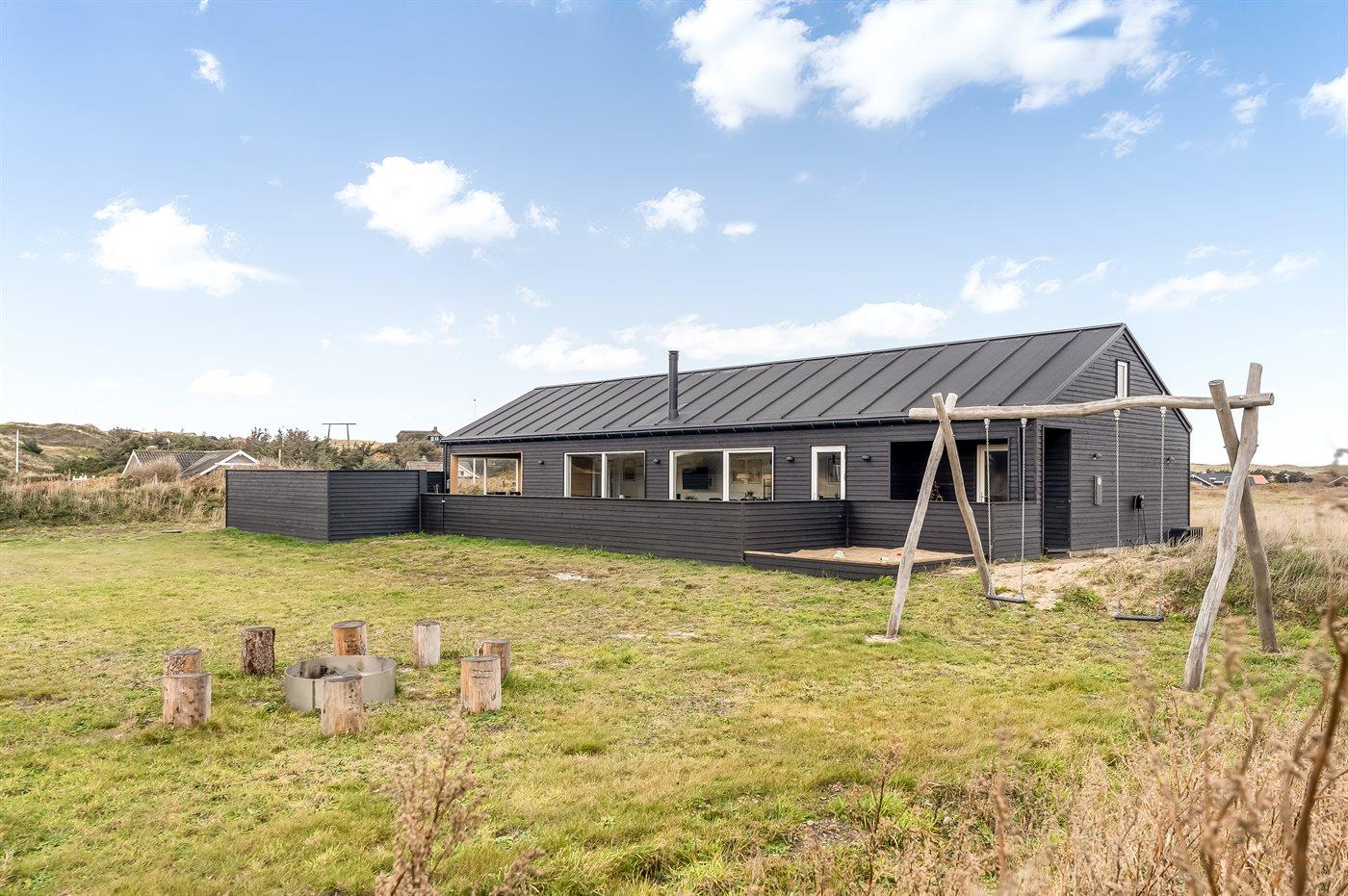 Die Ferienunterkunft liegt auf einem 2000 m² großen Dünengrundstück. Die Entfernung zum Meer beträgt 300 m. Es steht ein offenes Terrassenareal zur Verfügung. Außerdem gibt es überdachte Terrasse. Schaukel. Sandkasten. Es ist ein Ladestecker für Elektroautos installiert. Ladestecker Typ 2. Parkplatz auf dem Grundstück.