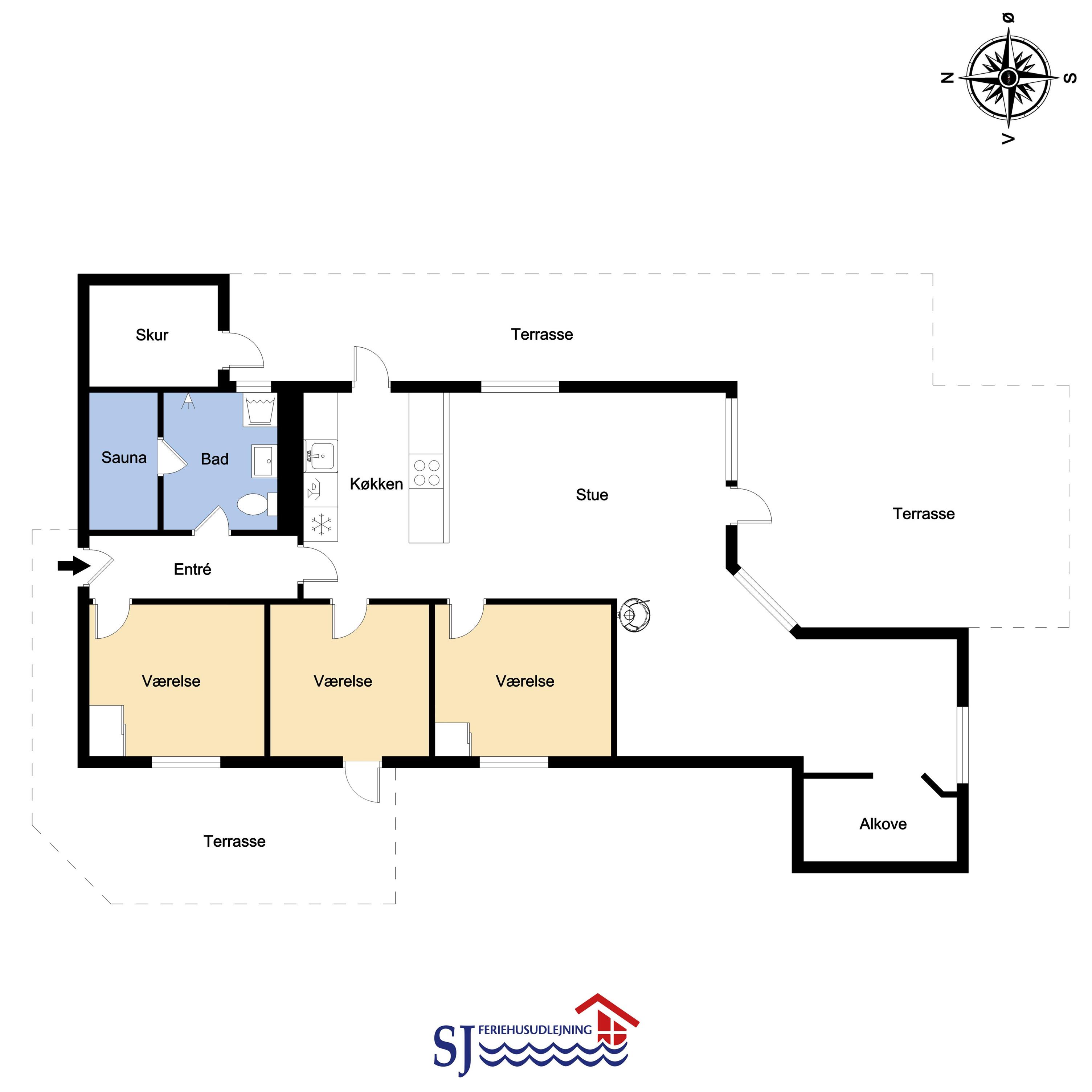 Neerlandiavej 154 liegt in einer ruhigen Straße, 500 m von der Nordsee entfernt, zentral in Vejlby Klit.