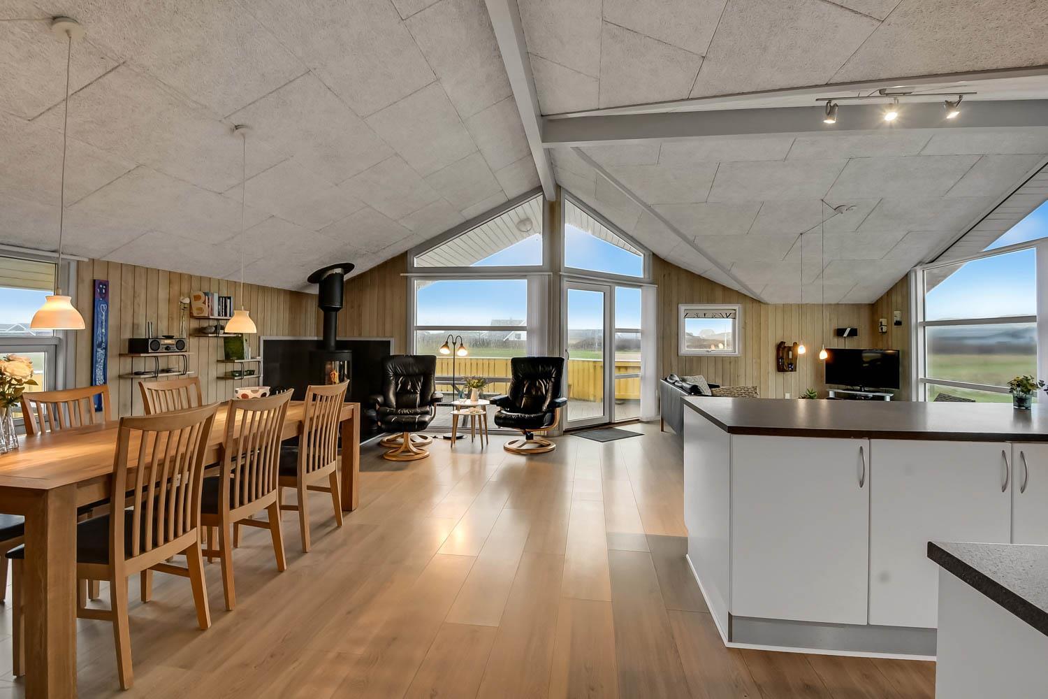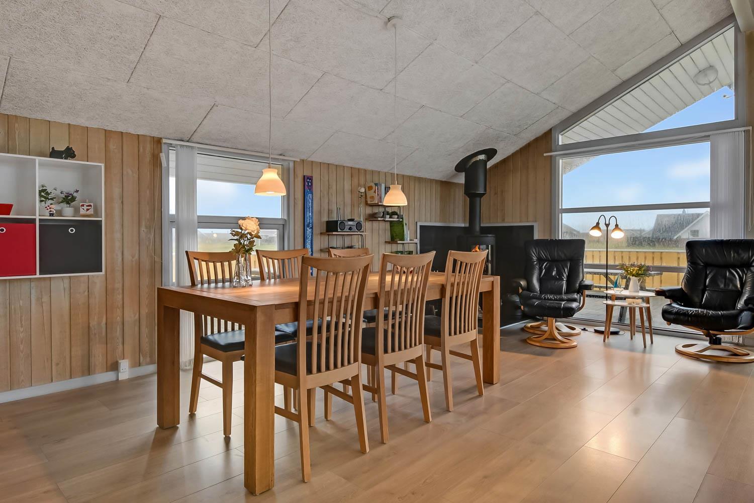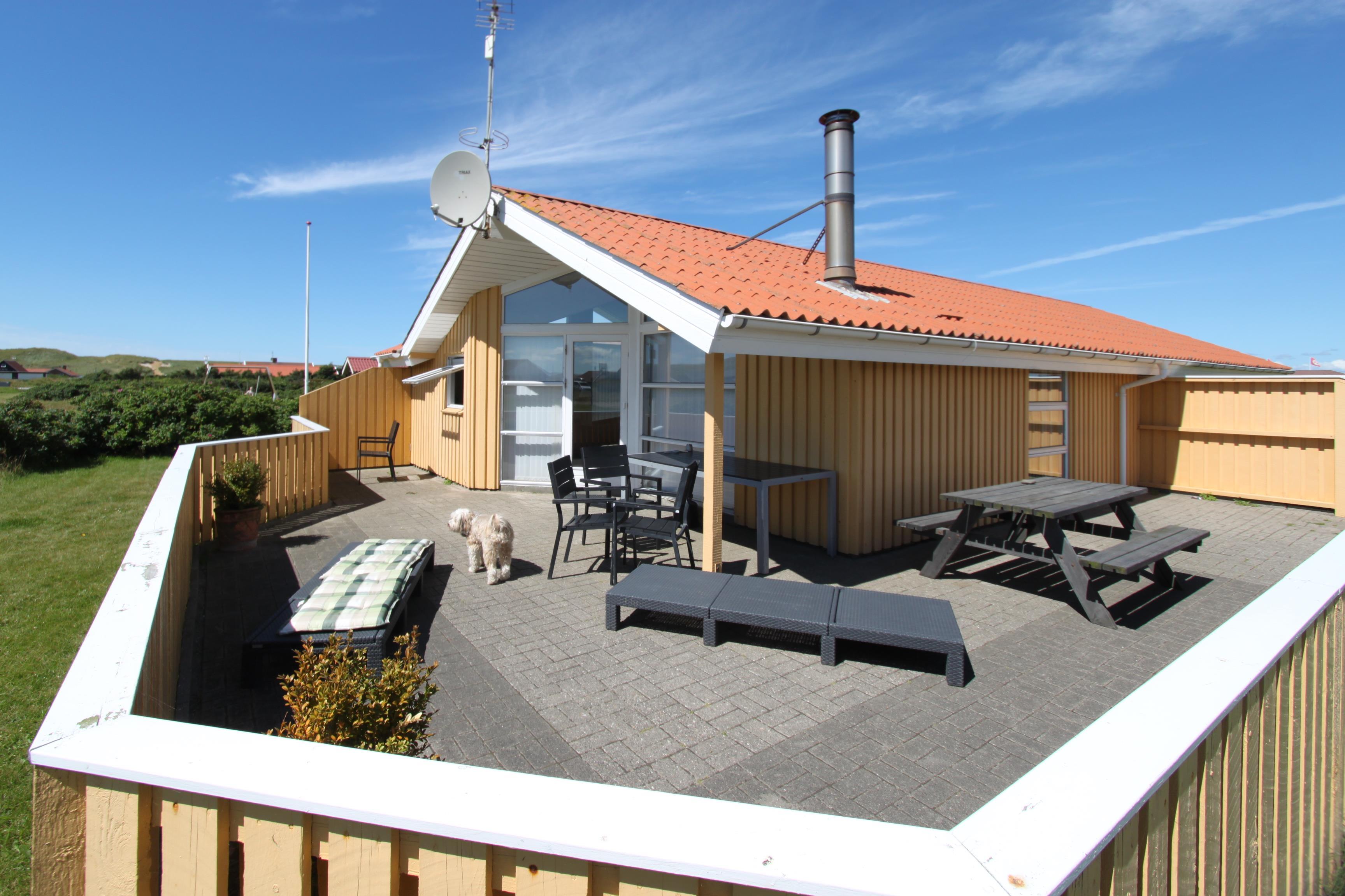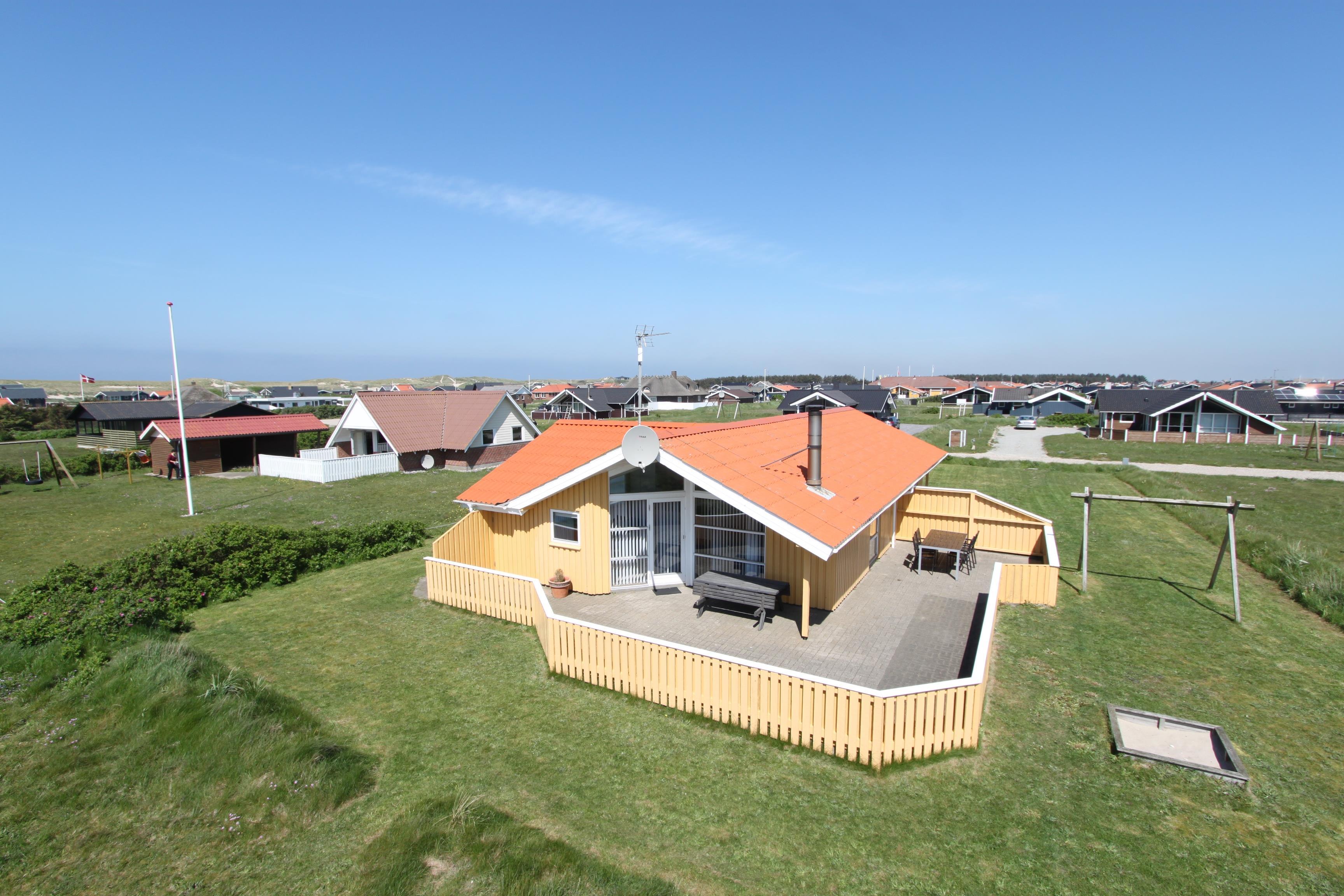 Das Haus liegt auf einer Landzunge zwischen dem 350 m entfernten Ferring-See und der 200 m nahen Nordsee. Die Gegend ist aufgrund der abwechslungsreichen Natur sehr beliebt. Das Haus hat eine eingezäunte Süd- und Ostterrasse mit schöner Aussicht, ideal für kleine Kinder und Hunde. Es gibt Gartenmöbel, Sonnenliegen und einen Grill. Auf dem Grundstück befinden sich auch eine Schaukel, ein Sandkasten und ein Carport. Direkt vor dem Haus gibt es außerdem einen öffentlichen Ballplatz, wo man z. B. Volleyball spielen kann. Mieten Sie dieses Haus, haben alle Bewohner kostenfreien Zugang zum Lemvig Schwimmbad. Die Hafenstadt Lemvig mit vielen Fachgeschäften liegt etwa 14 km entfernt und ist einen Ausflug wert.