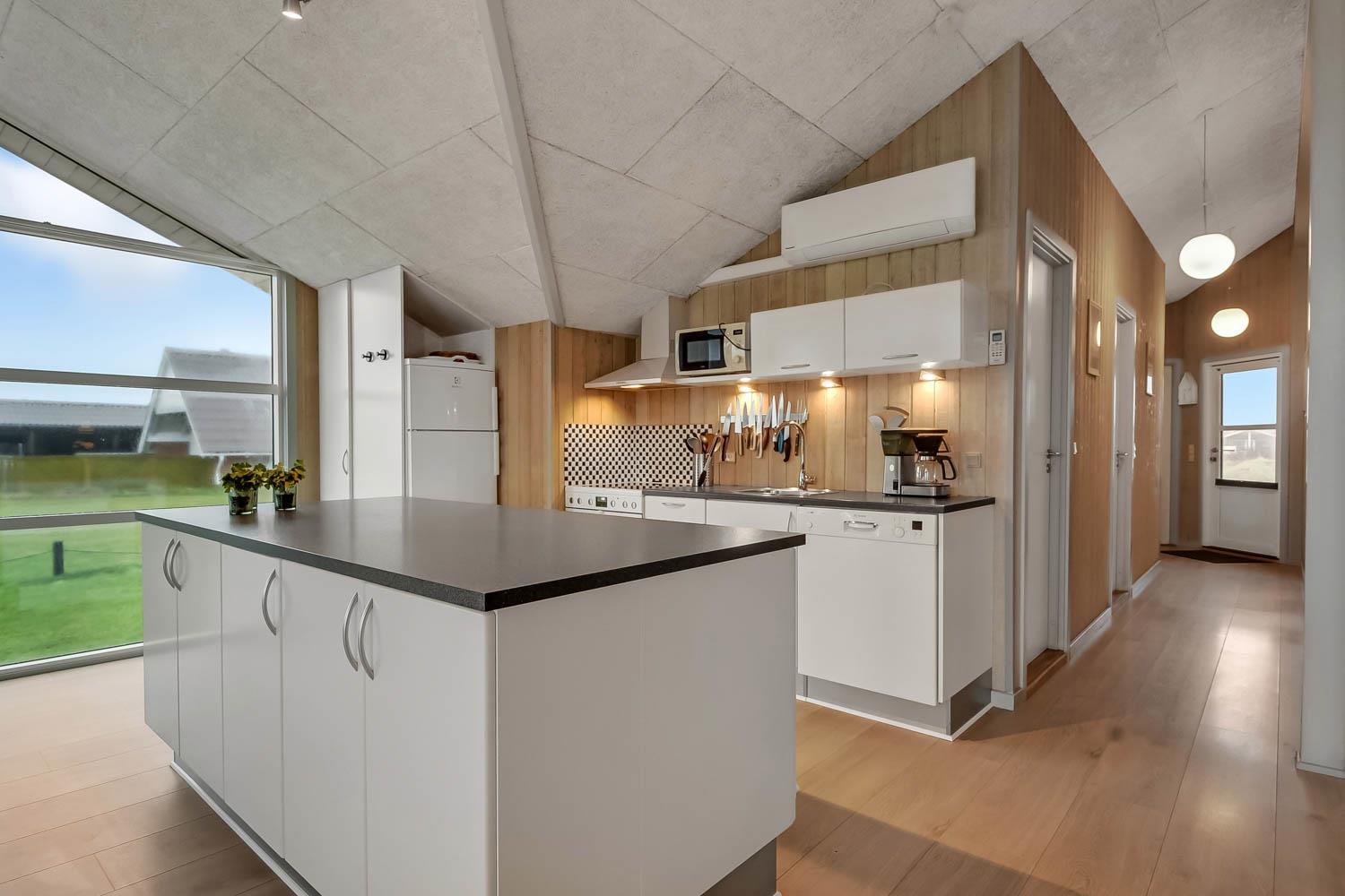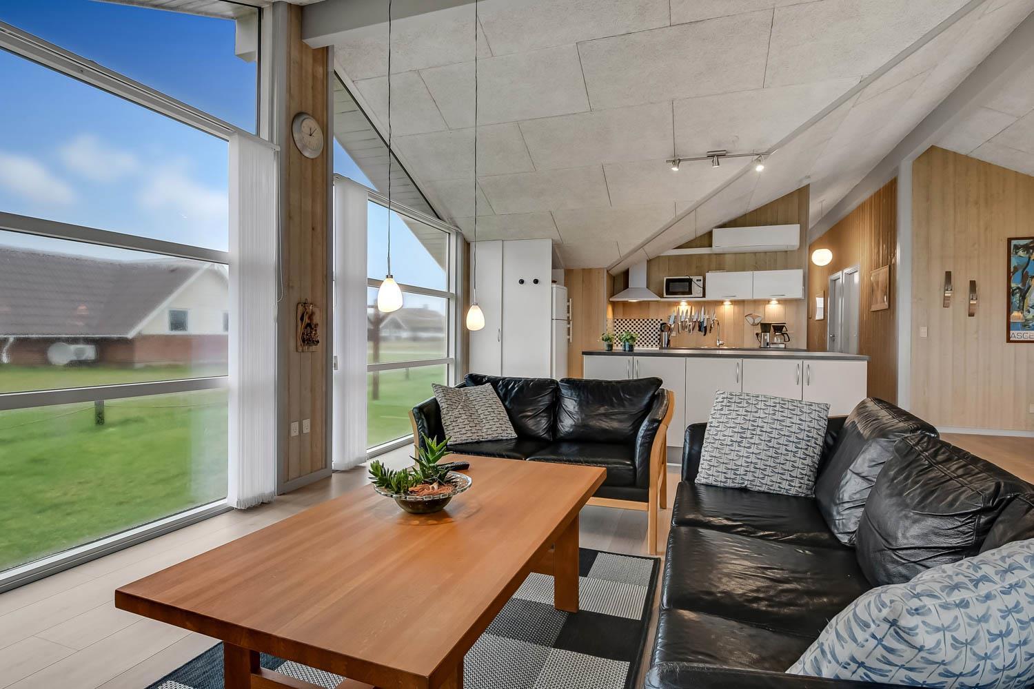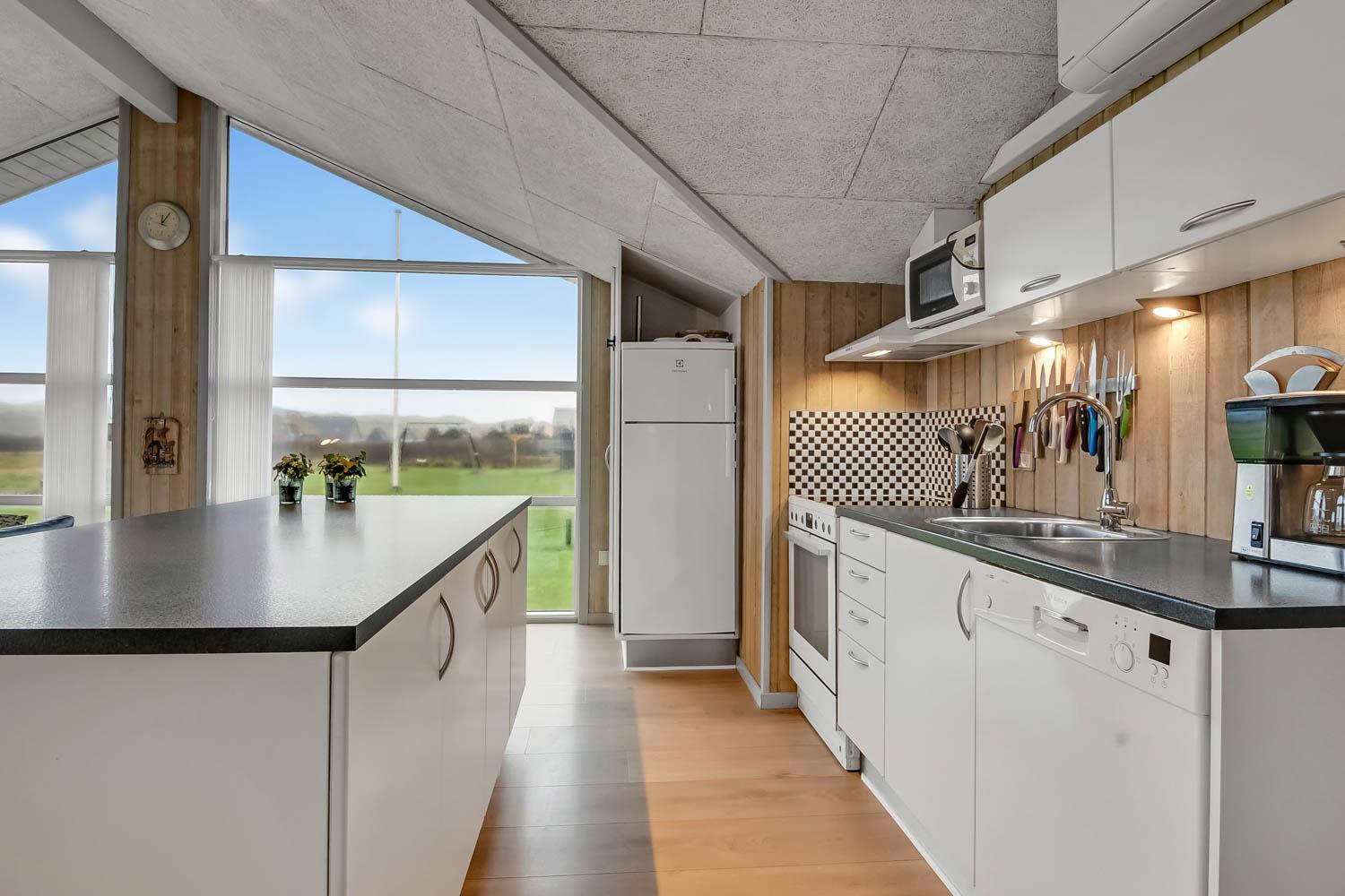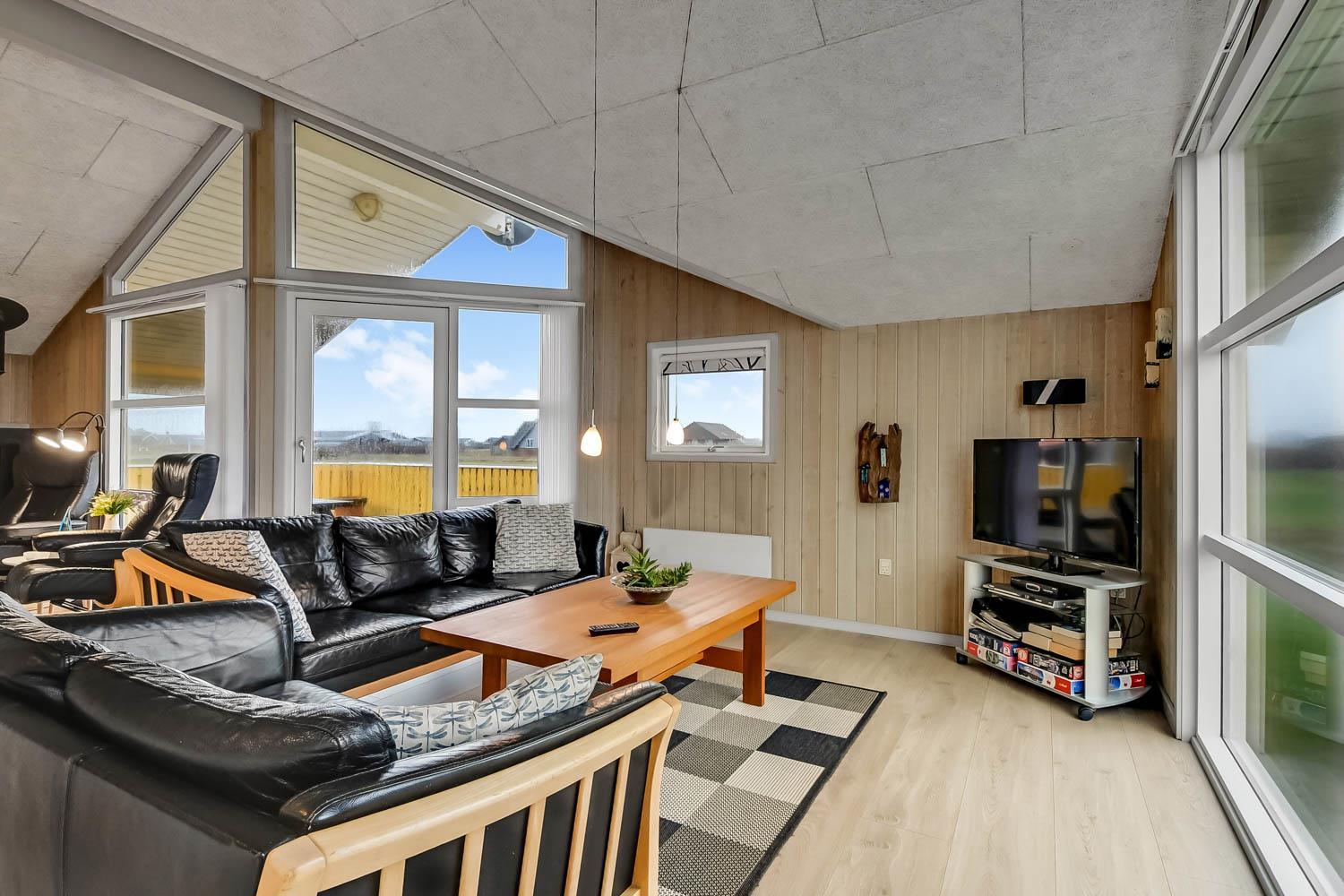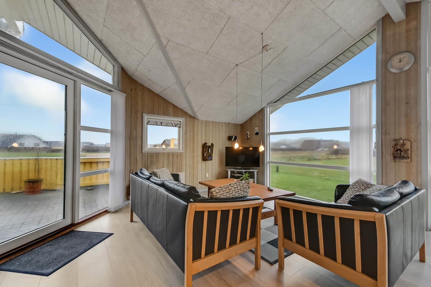 Das Haus liegt auf einer Landzunge zwischen dem 350 m entfernten Ferring-See und der 200 m nahen Nordsee. Die Gegend ist aufgrund der abwechslungsreichen Natur sehr beliebt. Das Haus hat eine eingezäunte Süd- und Ostterrasse mit schöner Aussicht, ideal für kleine Kinder und Hunde. Es gibt Gartenmöbel, Sonnenliegen und einen Grill. Auf dem Grundstück befinden sich auch eine Schaukel, ein Sandkasten und ein Carport. Direkt vor dem Haus gibt es außerdem einen öffentlichen Ballplatz, wo man z. B. Volleyball spielen kann. Mieten Sie dieses Haus, haben alle Bewohner kostenfreien Zugang zum Lemvig Schwimmbad. Die Hafenstadt Lemvig mit vielen Fachgeschäften liegt etwa 14 km entfernt und ist einen Ausflug wert.