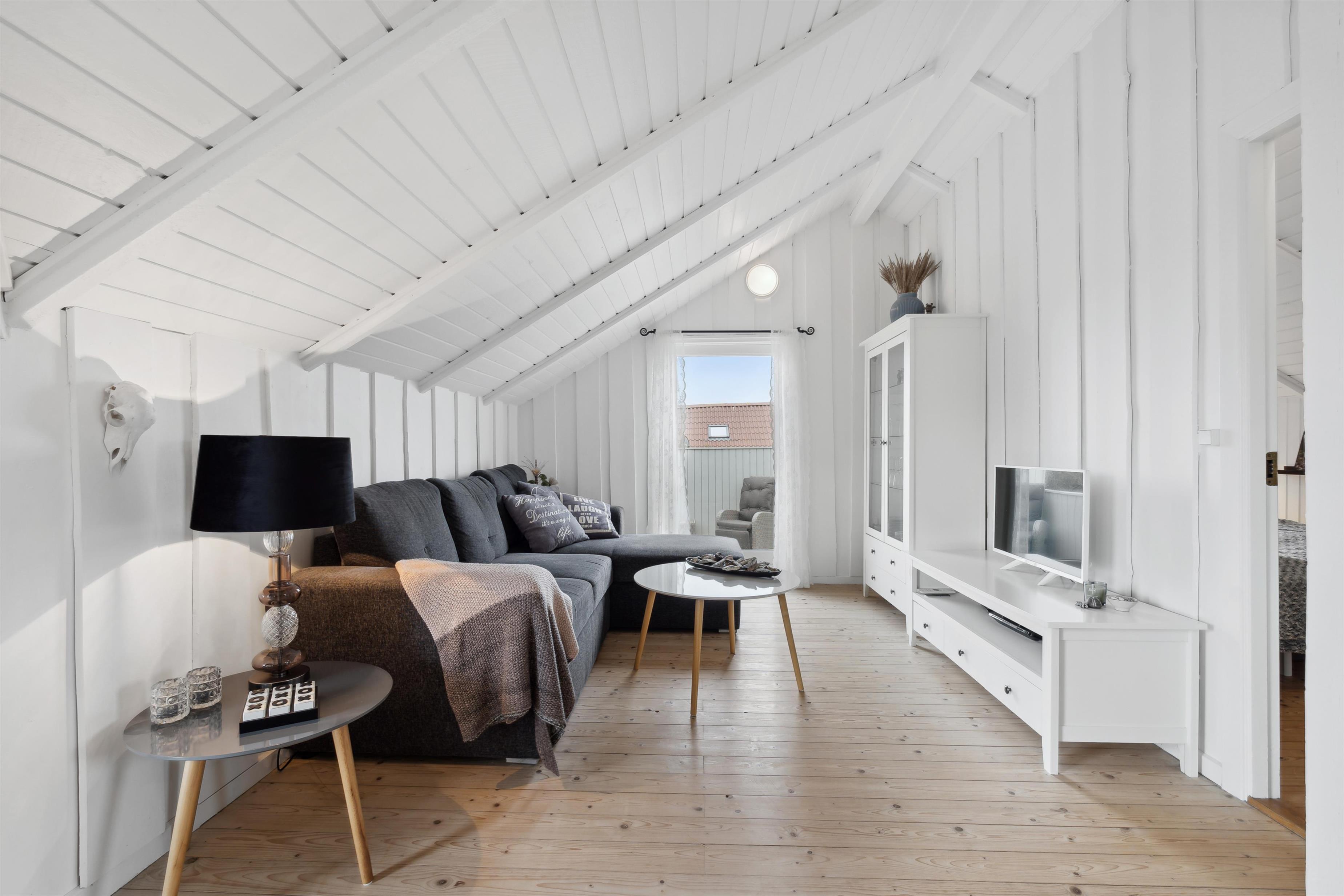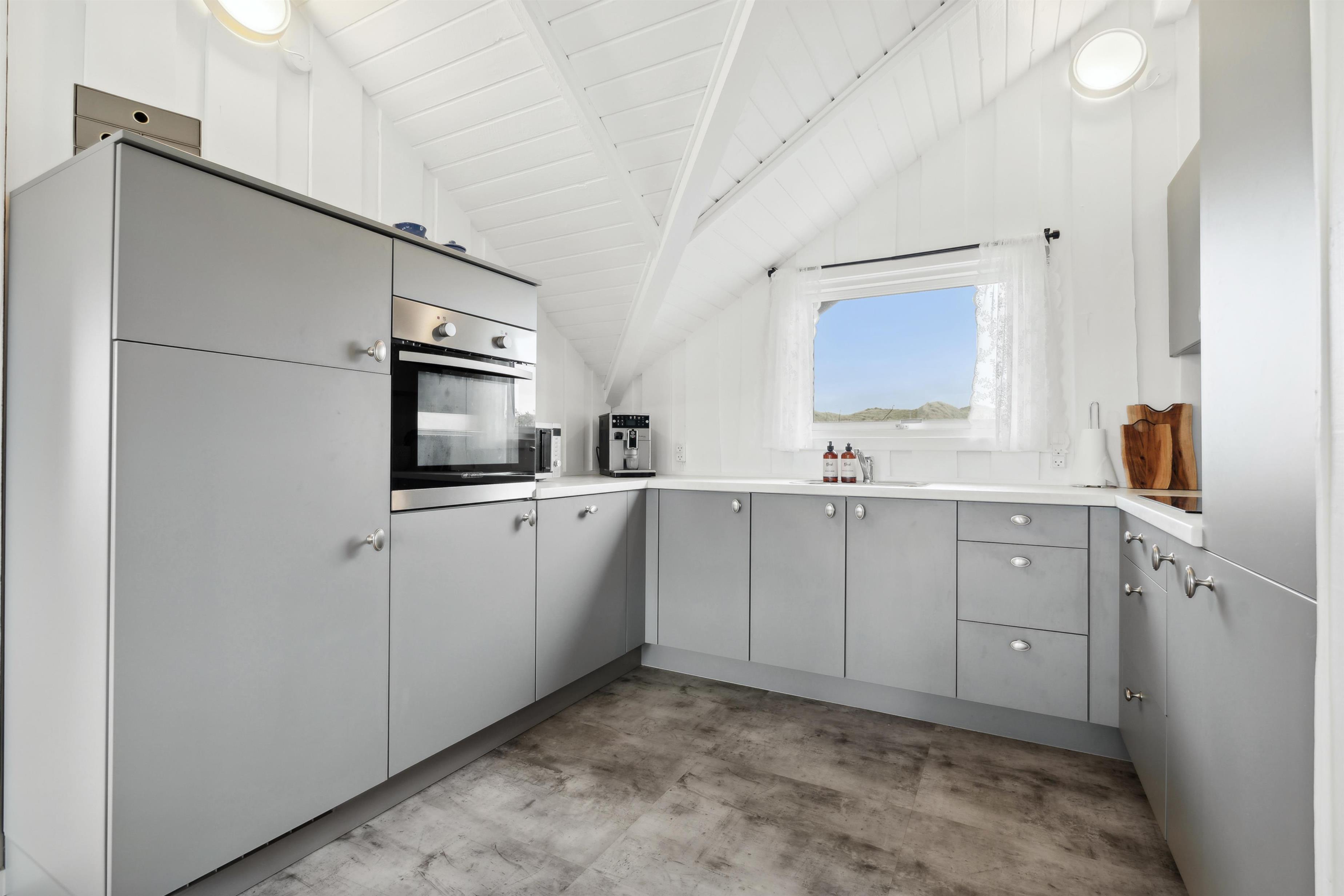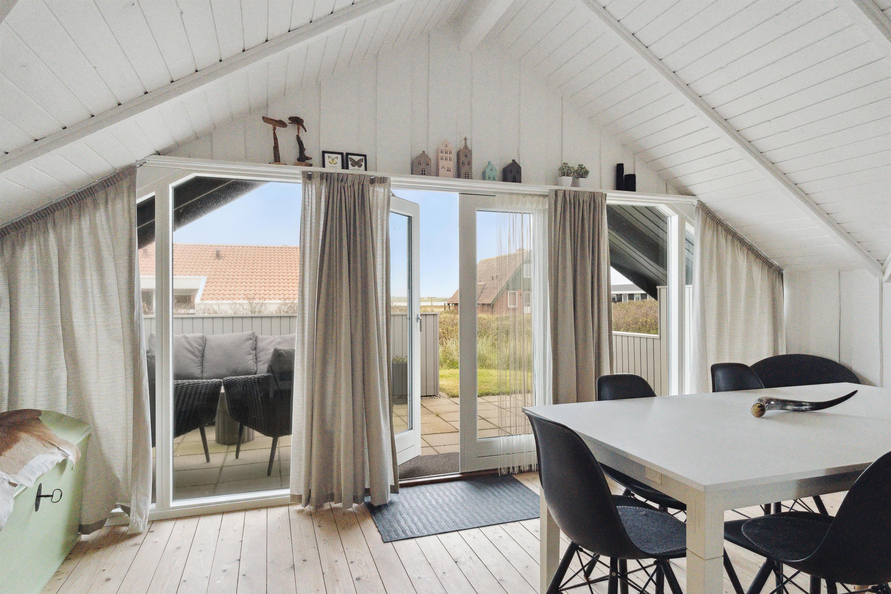 Das Ferienhaus ist 75 m² groß und äußerst gepflegt. Der Wohnraum ist hell und luftig mit offenem Dachgiebel, schönen Holzböden und einer angenehmen, nordischen Atmosphäre. Im Wohnzimmer können Sie die Wärme und Gemütlichkeit des Kaminofens genießen, während die Wärmepumpe ganzjährig für ein behagliches Innenklima sorgt. Es gibt Fibernet-TV, Fiber-Internet und gute Polstermöbel, die echte Entspannung nach einem aktiven Tag in der Umgebung ermöglichen. Der Wohnraum ist offen mit der funktionellen Küche verbunden, die mit elektrischen Keramikkochfeldern, Geschirrspüler, Einbaubackofen sowie Kühl-/Gefrierschrank ausgestattet ist – perfekt, um die Mahlzeiten des Urlaubs in ruhiger Umgebung zuzubereiten und zu genießen.