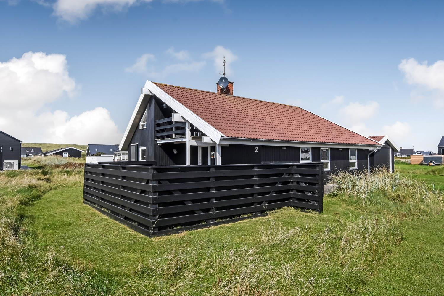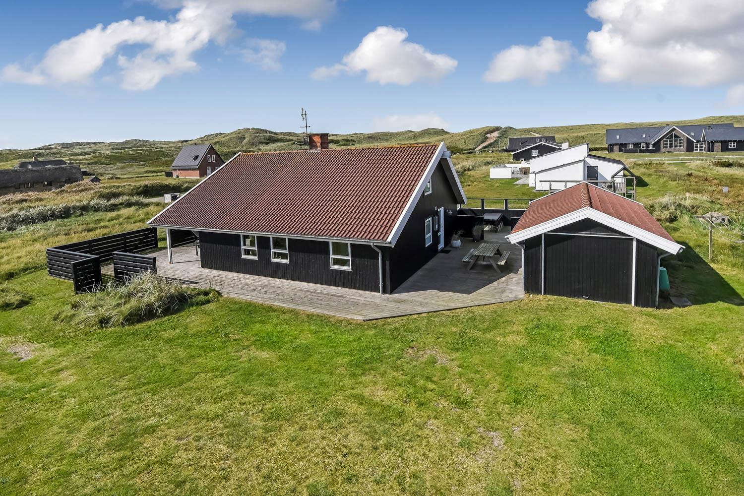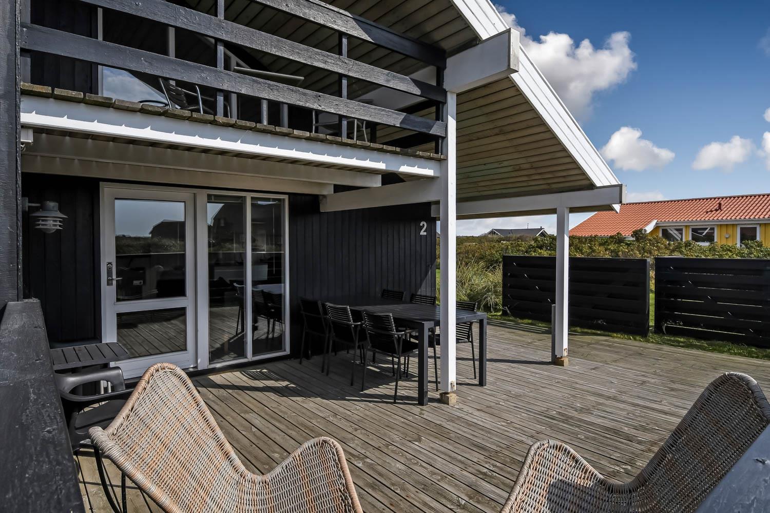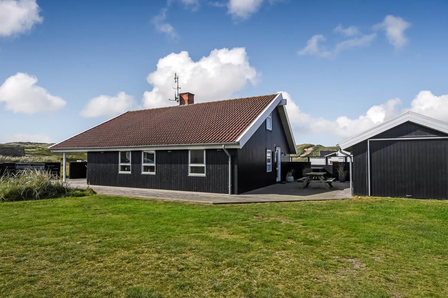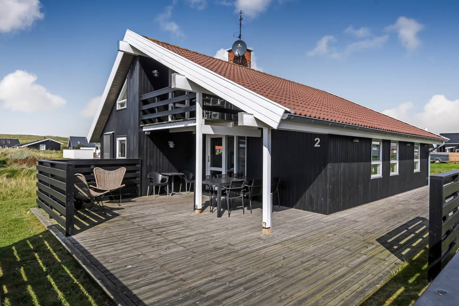 Vom Wohnzimmer aus haben Sie einen direkten Zugang zu einer schönen, nach Westen ausgerichteten, teilweise überdachten Terrasse. Vom Eingang aus haben Sie Zugang zu einer absolut fantastischen Holzterrasse mit schönem Schatten. Darüber hinaus gibt es einen fantastischen Balkon mit Blick auf die Dünen. Es gibt einen einzigartigen Außenbereich, in dem Sie sich auf Gartenmöbeln und Sonnenliegen bewegen können und in dem es immer eine schöne Ecke mit Windschutz und einen Platz in der Sonne geben kann. Das Haus befindet sich auf einem 1.200 m² großen Dünengelände. Nur wenige Gehminuten vom Haus entfernt gibt es auch einen Ballplatz und einen Spielplatz. Das Restaurant und das Lebensmittelgeschäft sind saisonal geöffnet und nur wenige Gehminuten vom Haus entfernt. Innerhalb von 5 Autominuten erreichen Sie Harboøre mit verschiedenen Aktivitäten und Einkaufsmöglichkeiten. Egal, ob Sie einen aktiven Urlaub verbringen oder sich total entspannen möchten, dieses schöne Ferienhaus bietet eine perfekte Kulisse in Bezug auf Haus, Lage und Umgebung.