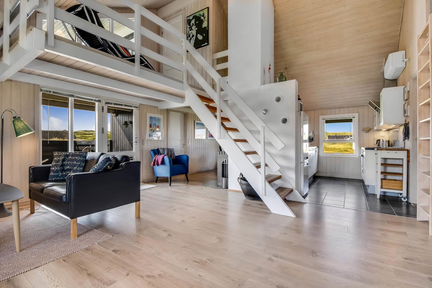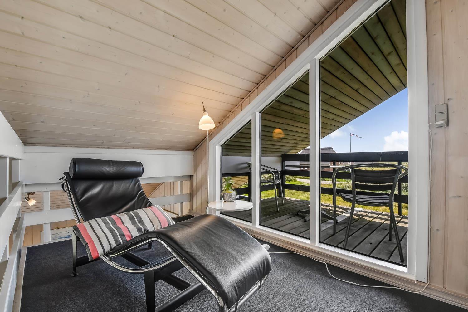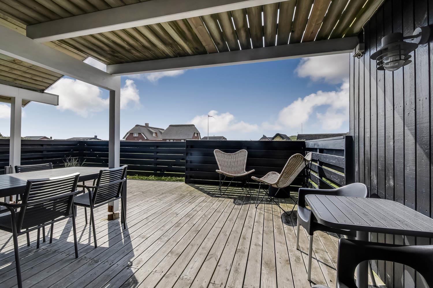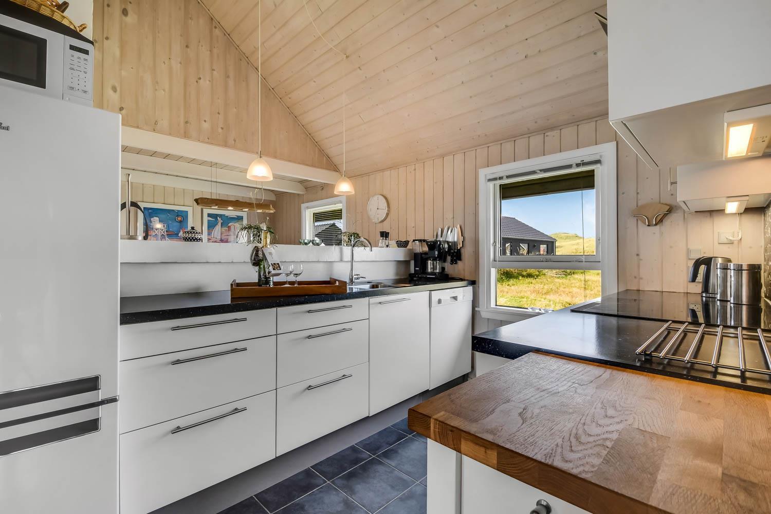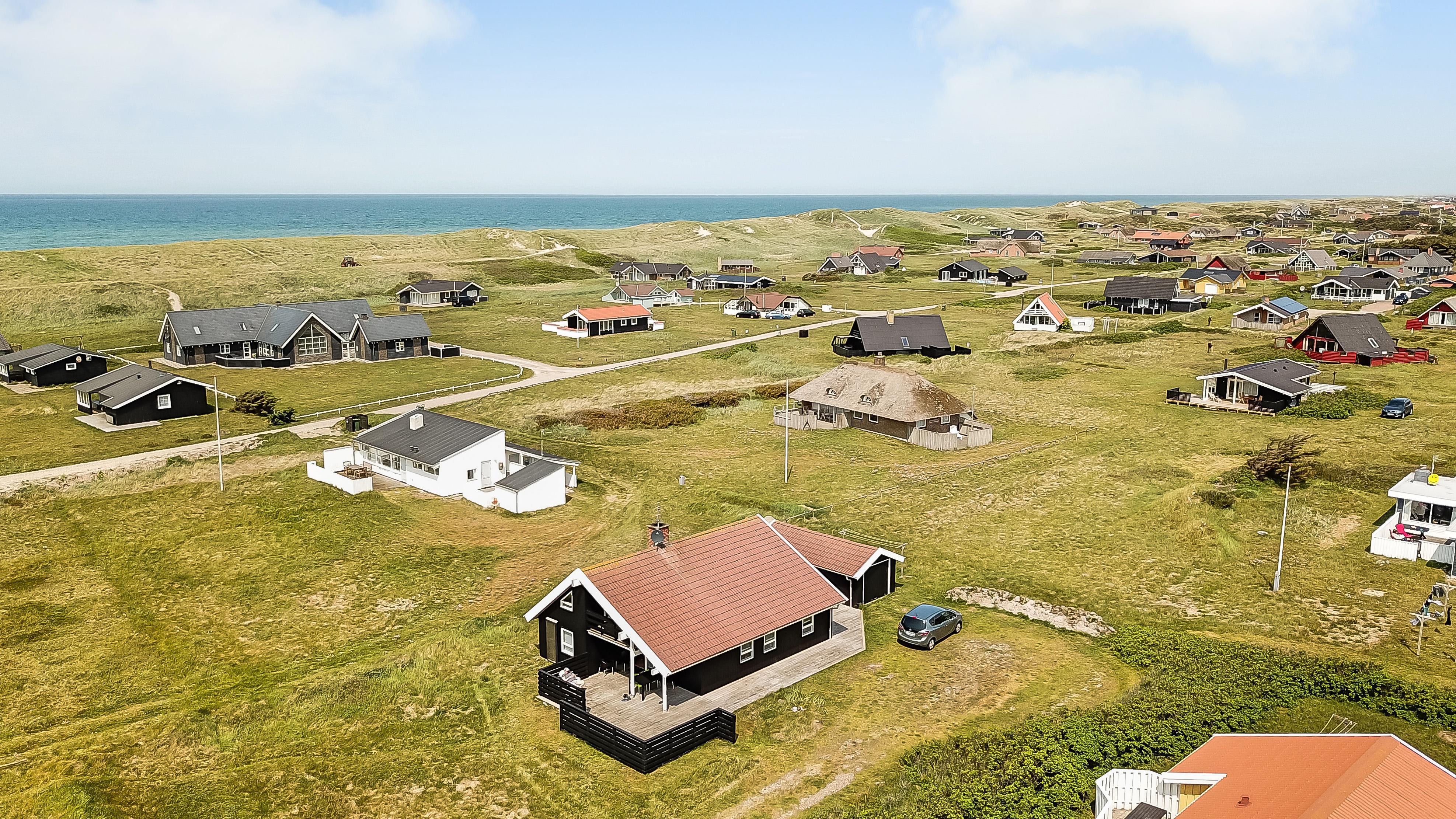 Vom Wohnzimmer aus haben Sie einen direkten Zugang zu einer schönen, nach Westen ausgerichteten, teilweise überdachten Terrasse. Vom Eingang aus haben Sie Zugang zu einer absolut fantastischen Holzterrasse mit schönem Schatten. Darüber hinaus gibt es einen fantastischen Balkon mit Blick auf die Dünen. Es gibt einen einzigartigen Außenbereich, in dem Sie sich auf Gartenmöbeln und Sonnenliegen bewegen können und in dem es immer eine schöne Ecke mit Windschutz und einen Platz in der Sonne geben kann. Das Haus befindet sich auf einem 1.200 m² großen Dünengelände. Nur wenige Gehminuten vom Haus entfernt gibt es auch einen Ballplatz und einen Spielplatz. Das Restaurant und das Lebensmittelgeschäft sind saisonal geöffnet und nur wenige Gehminuten vom Haus entfernt. Innerhalb von 5 Autominuten erreichen Sie Harboøre mit verschiedenen Aktivitäten und Einkaufsmöglichkeiten. Egal, ob Sie einen aktiven Urlaub verbringen oder sich total entspannen möchten, dieses schöne Ferienhaus bietet eine perfekte Kulisse in Bezug auf Haus, Lage und Umgebung.