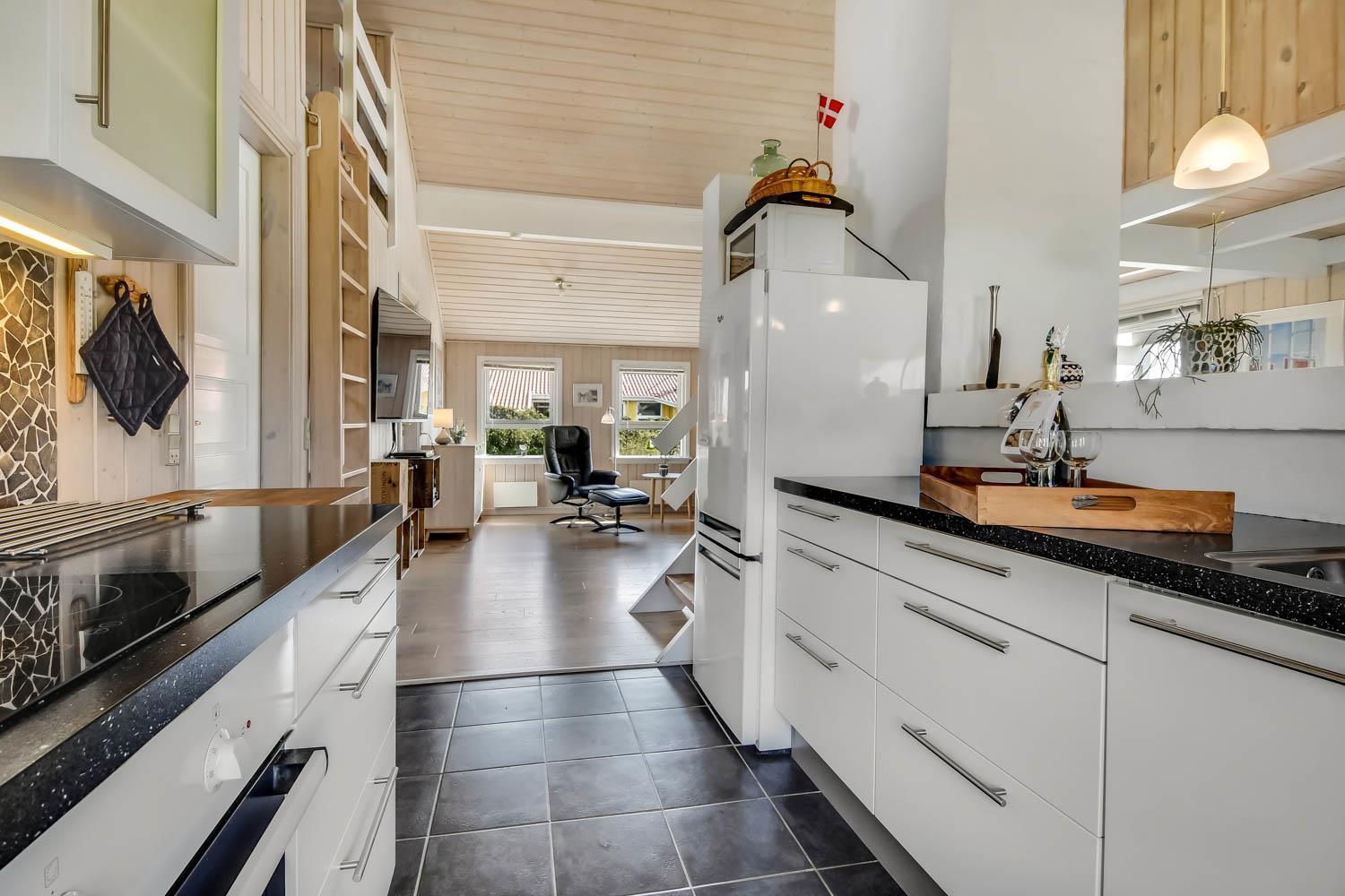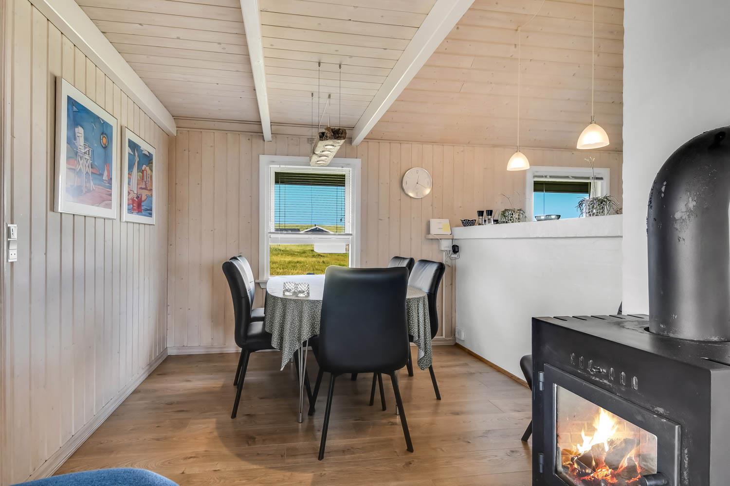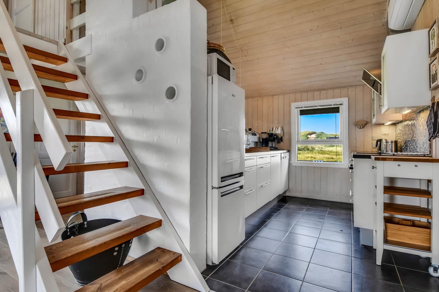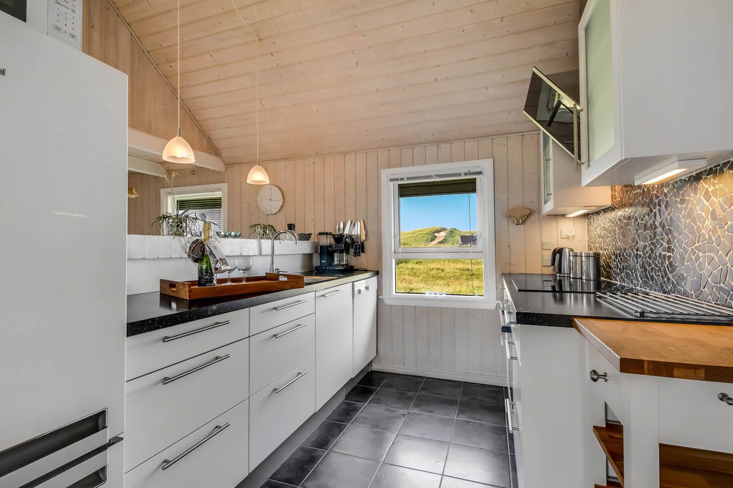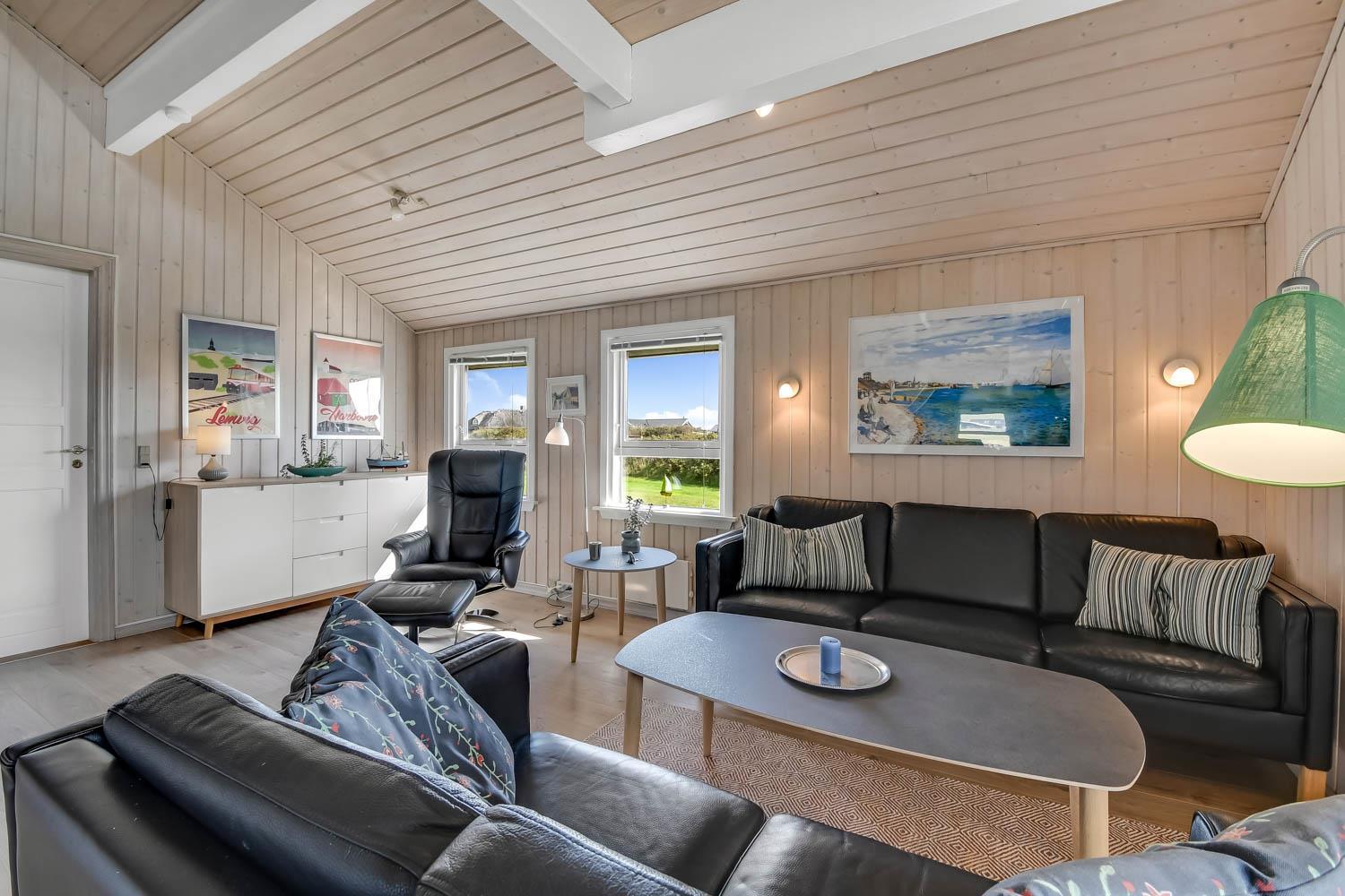 Vom Wohnzimmer aus haben Sie einen direkten Zugang zu einer schönen, nach Westen ausgerichteten, teilweise überdachten Terrasse. Vom Eingang aus haben Sie Zugang zu einer absolut fantastischen Holzterrasse mit schönem Schatten. Darüber hinaus gibt es einen fantastischen Balkon mit Blick auf die Dünen. Es gibt einen einzigartigen Außenbereich, in dem Sie sich auf Gartenmöbeln und Sonnenliegen bewegen können und in dem es immer eine schöne Ecke mit Windschutz und einen Platz in der Sonne geben kann. Das Haus befindet sich auf einem 1.200 m² großen Dünengelände. Nur wenige Gehminuten vom Haus entfernt gibt es auch einen Ballplatz und einen Spielplatz. Das Restaurant und das Lebensmittelgeschäft sind saisonal geöffnet und nur wenige Gehminuten vom Haus entfernt. Innerhalb von 5 Autominuten erreichen Sie Harboøre mit verschiedenen Aktivitäten und Einkaufsmöglichkeiten. Egal, ob Sie einen aktiven Urlaub verbringen oder sich total entspannen möchten, dieses schöne Ferienhaus bietet eine perfekte Kulisse in Bezug auf Haus, Lage und Umgebung.