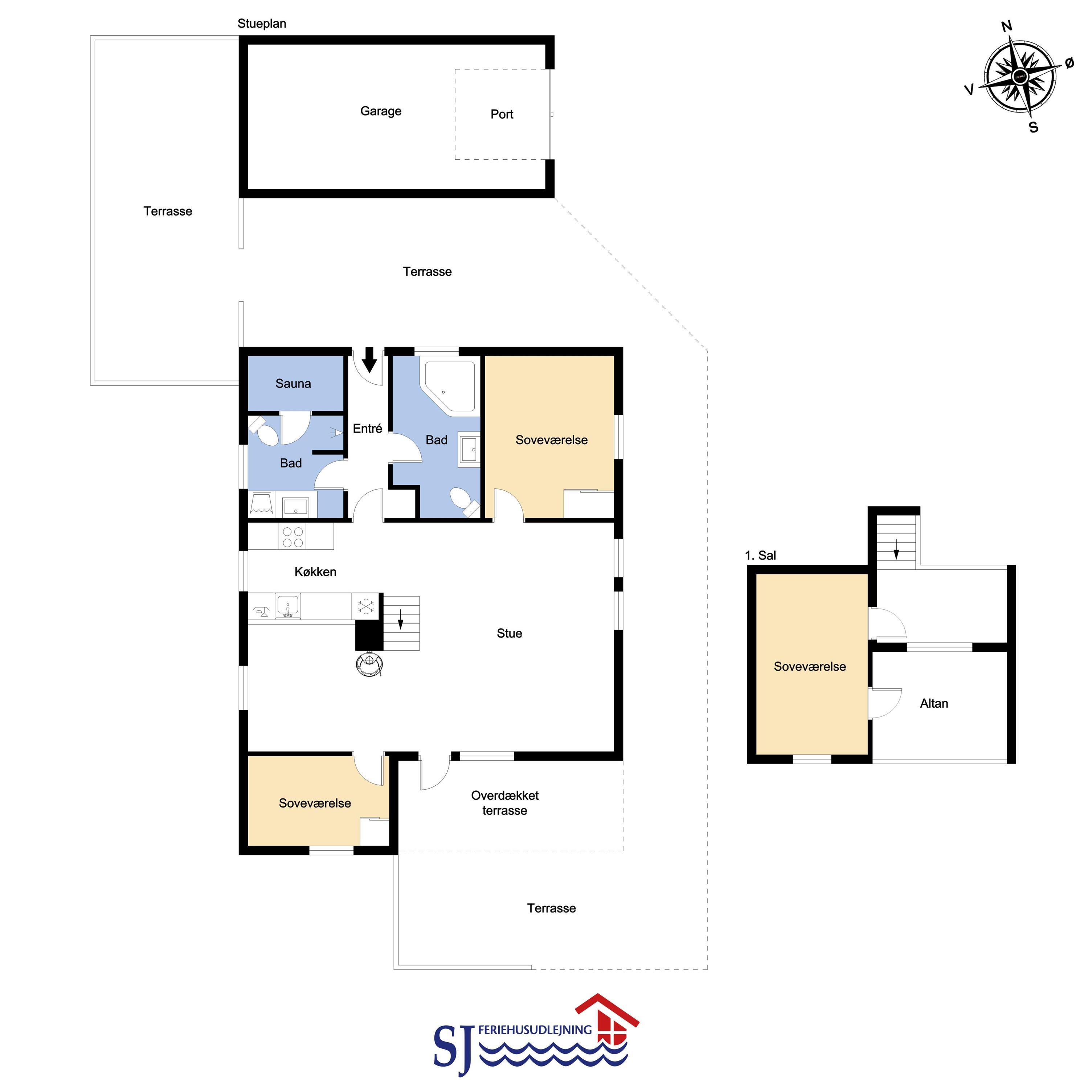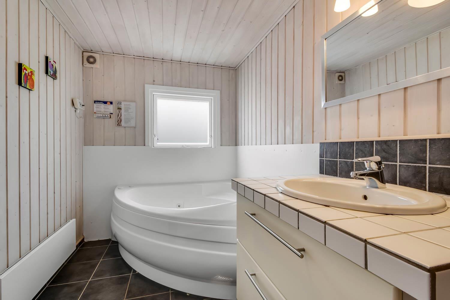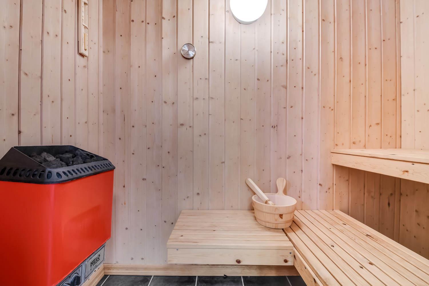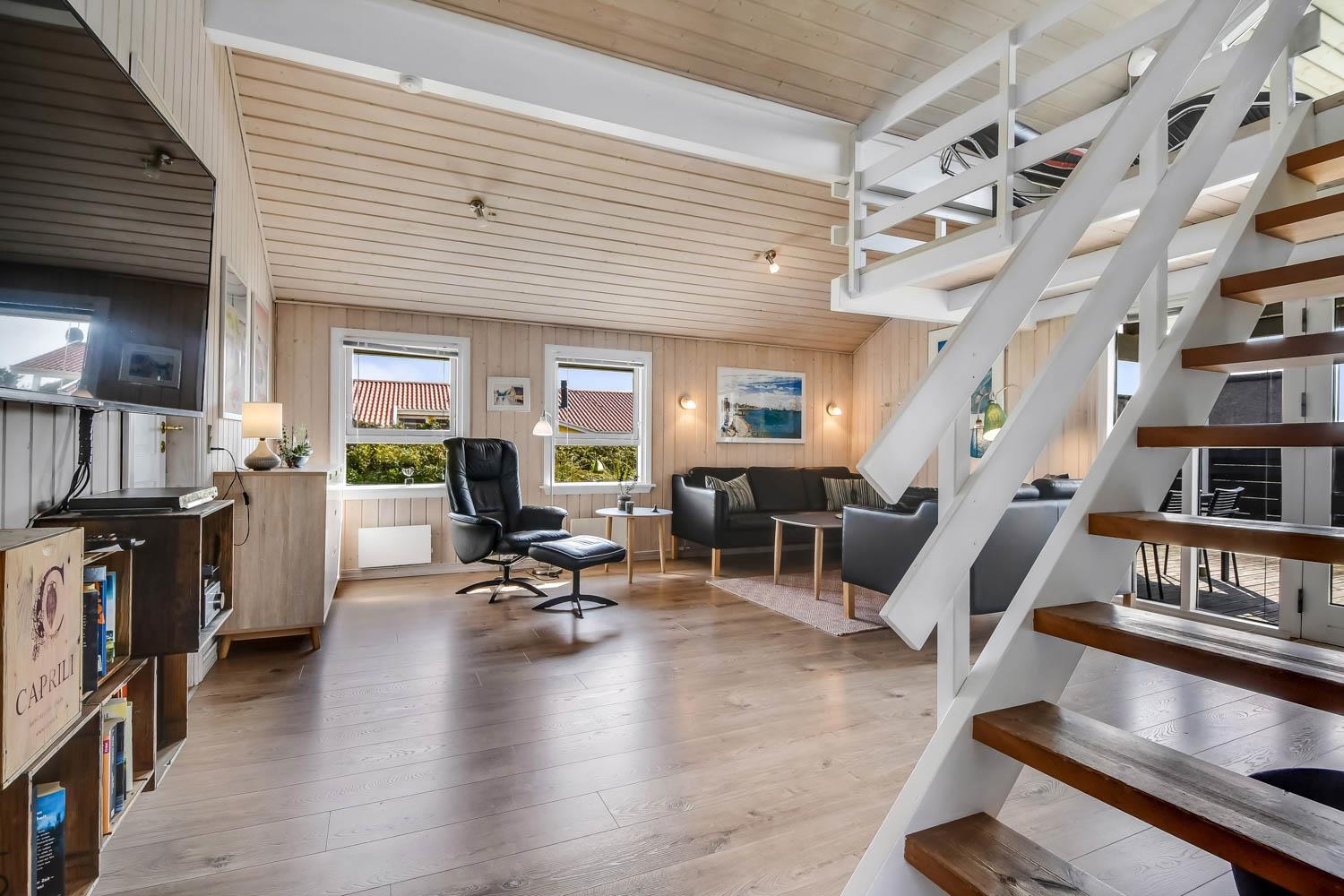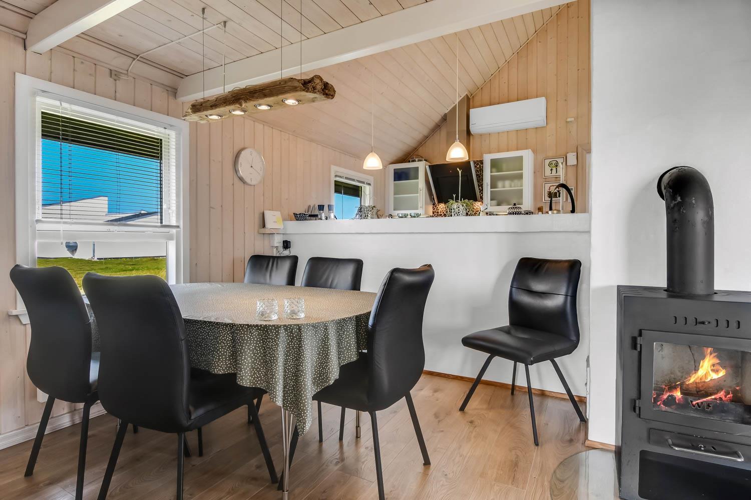 Gut zu nutzendes, renoviertes (2007) Ferienhaus mit 125 m² und freiem WLAN. Das Haus ist schön eingerichtet und man spürt sofort die ganz spezielle Atmosphäre, für die der Eigentümer gesorgt hat. Es gibt helle und freundliche Räume und der Kerne vom Haus ist der kombinierte Wohnraum/Küche. 3 gute Schlafräume. Im Erdgeschoss gibt es 2 Schlafräume: 1DB + 1DB und von der Treppe im Wohnraum gibt es einen Zugang zu einem richtigen Luxusschlafzimmer mit 1 DB und Balkon. Es gibt auch einen schönen offenen Schlafboden, den Sie über die Leiter an der Wand erreichen. Auf dem Schlafboden gibt es 2 Sofas und einen Couchtisch, was es zu einem perfekten Ort macht, um Spiele zu spielen oder vielleicht ein gutes Buch zu lessen. Schöner Flur mit Platz für Jacken zum aufhängen. Der Wohnraum ist mit guten Qualitätsmöbeln, TV mit deutschen und dänischen Programmen, CD/Radio/DVD und einem gemütlichen Kaminofen, der zusammen mit einer Wärmepumpe für einen niedrigen Stromverbrauch sorgt, eingerichtet. Schöne und gut ausgestattete Küche mit Geschirrspüler, Herd mit Cerankochfeld, eingebautem Ofen, Abzugshaube, Mikrowelle, Kühl-/Gefrierschrank und allem an Service und Kochgeschirr. Es gibt ein einladenes und modernes Badezimmer mit Whirlpool, Waschbecken und Toilette und außerdem es gibt es noch ein Badezimmer mit Toilette, Waschbecken, Sauna und Dusche. Beide Badezimmer sind mit Fussbodenheizung. Waschmaschine. Es gibt Kinderbett und Kinderstuhl. Rauchen und Haustiere sind nicht erlaubt. Ein selten schönes Ferienhaus mit hoher Qualität und vielen schönen und tollen Einzelheiten. Wenn Sie ein Elektroauto oder einen Plug-in-Hybrid haben, verfügt das Haus über eine Ladebox.